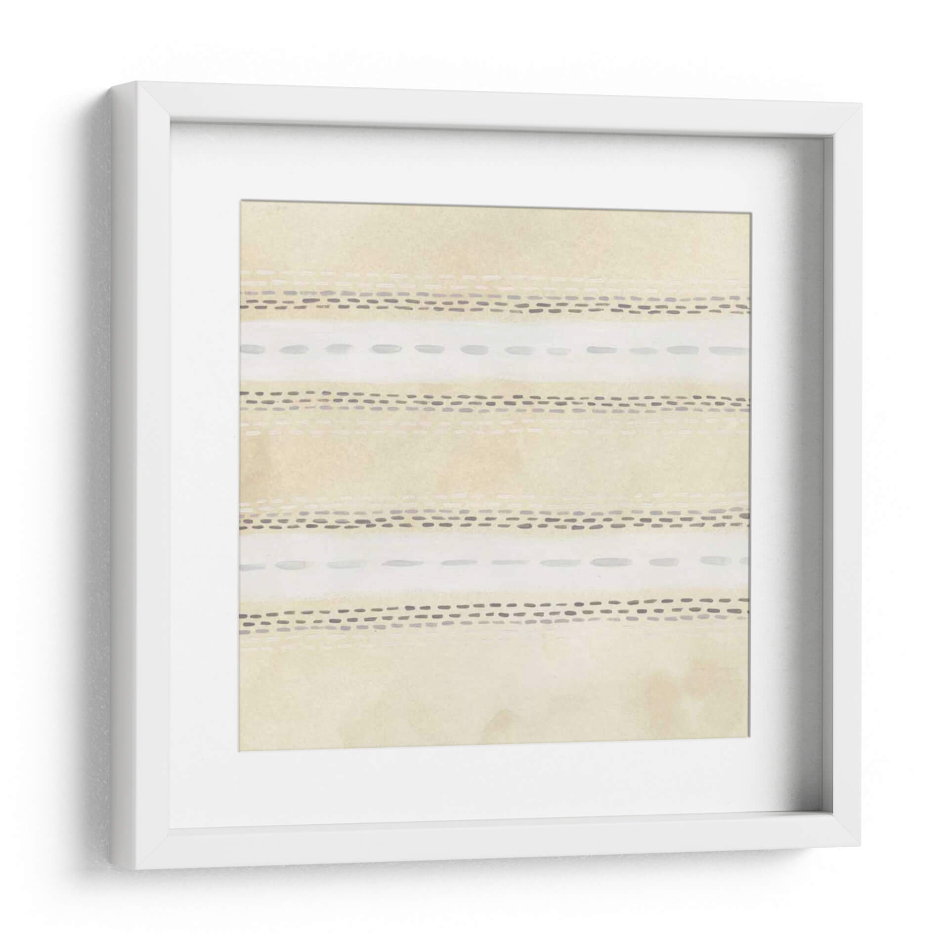 Sumérgete en la serenidad y el minimalismo contemporáneo con 'Prosa Pergamino V' de June Erica Vess. Este cuadro decorativo abstracto cautiva con su delicada paleta de colores tierra y suaves tonos neutros, evocando una sensación de calma y orden. La composición, dividida en sutiles bandas horizontales, presenta un patrón rítmico de trazos lineales y punteados que recuerdan a escritura antigua o a texturas naturales. Cada elemento visual ha sido cuidadosamente dispuesto para crear un equilibrio armonioso, haciendo de esta pieza una adición perfecta para espacios que buscan tranquilidad y elegancia discreta. El estilo abstracto y la ejecución pictórica con acuarela crean una atmósfera etérea y relajante. Ideal para salones modernos, dormitorios serenos o estudios de meditación, 'Prosa Pergamino V' infunde paz y sofisticación a cualquier ambiente. Descubre cómo este cuadro decorativo puede transformar tu hogar u oficina en un santuario de estilo y contemplación.