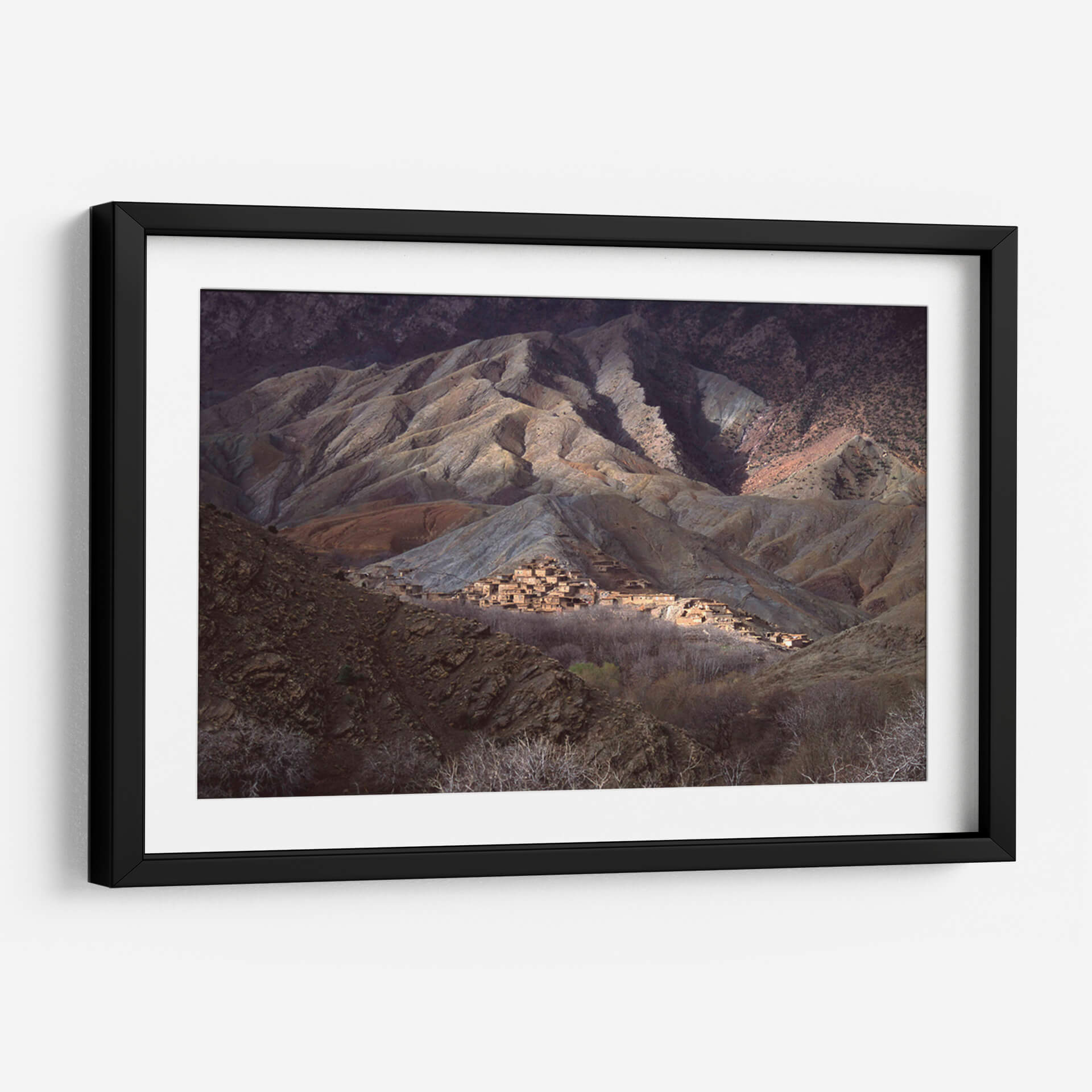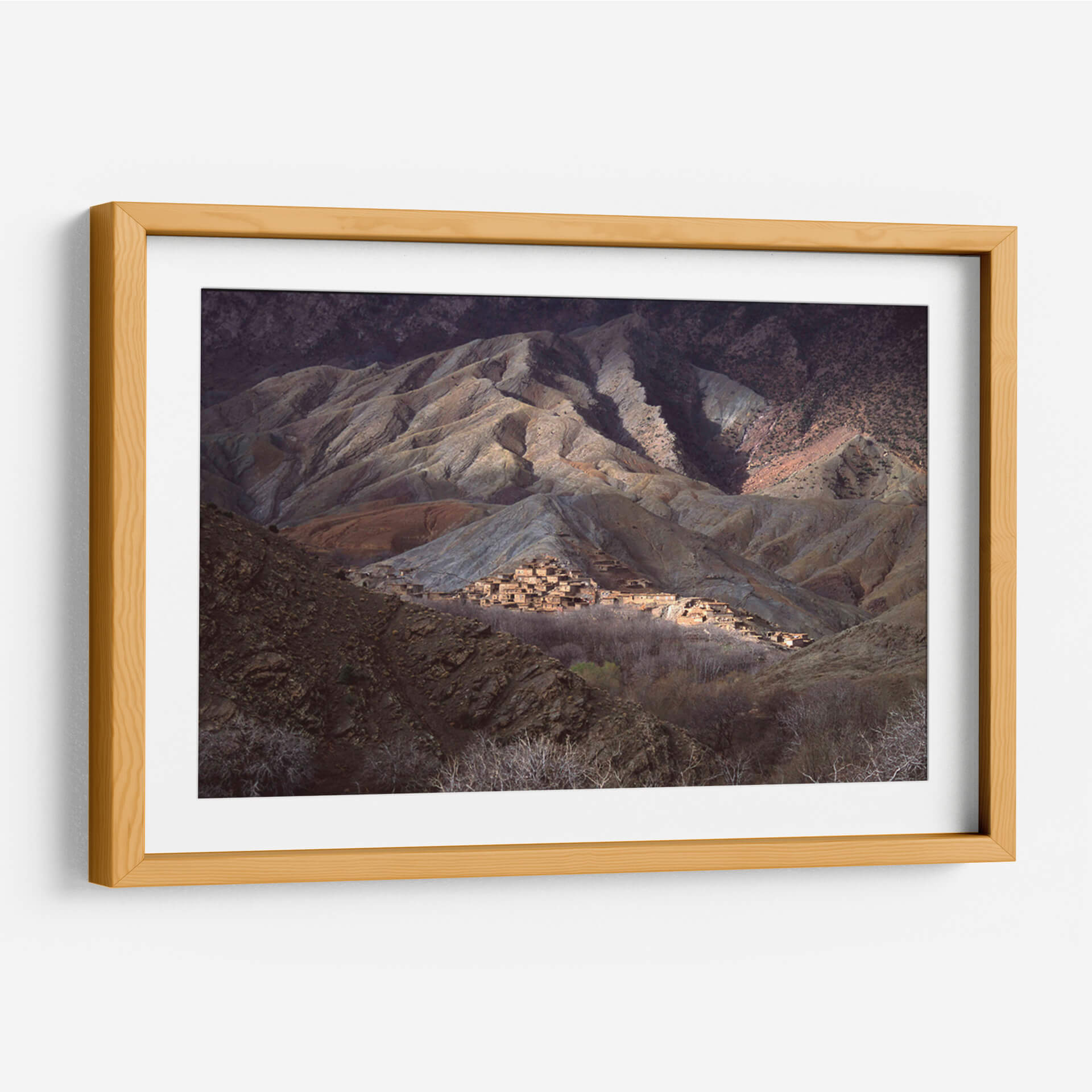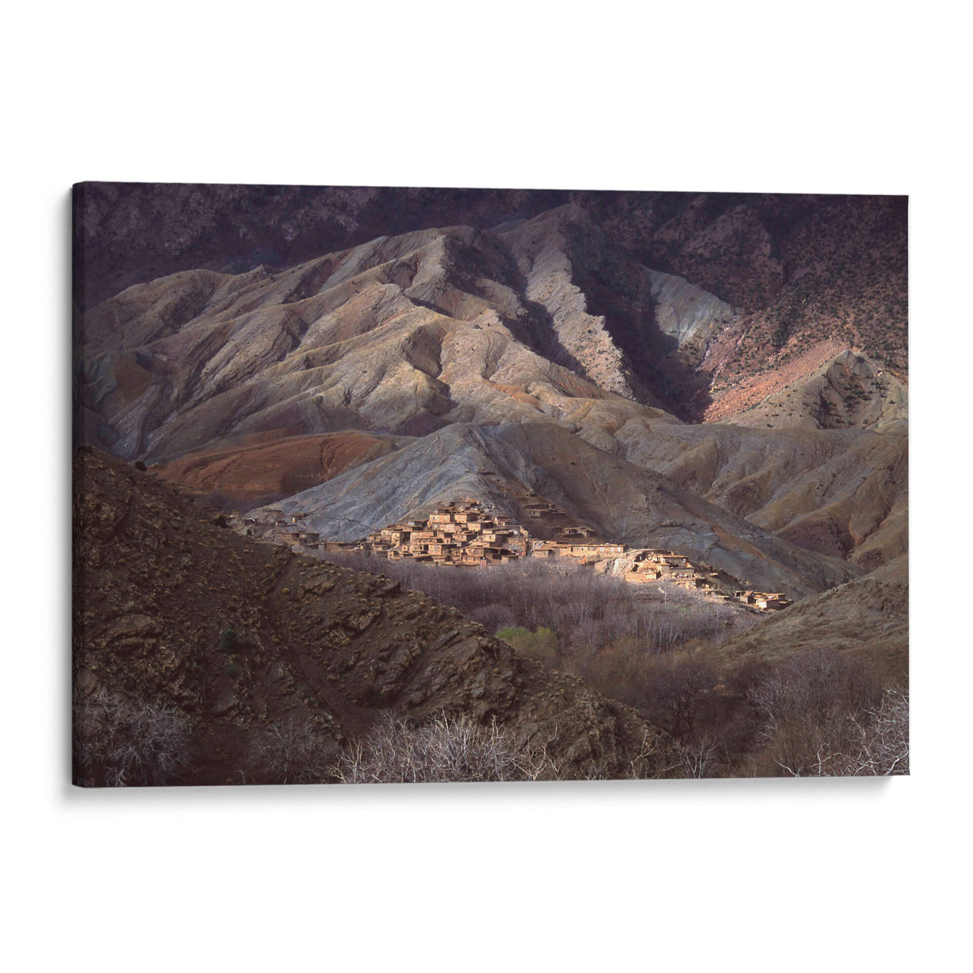 Sumérgete en la majestuosidad del paisaje marroquí con nuestro exclusivo cuadro decorativo 'Pueblo en los Atlas'. Esta obra captura la esencia de una aldea tradicional anidada entre las imponentes montañas del Atlas, bañada por una luz dorada que resalta las texturas y los tonos ocres y terrosos de la tierra. La composición, con un primer plano de rocas oscuras y vegetación escasa que da paso a las ondulantes colinas y al pueblo de adobe, crea una sensación de profundidad y serenidad. La paleta de colores cálidos, con contrastes de luz y sombra, evoca una atmósfera de paz, autenticidad y conexión con la naturaleza y la historia. Ideal para aquellos que buscan añadir un toque de exotismo, calidez y carácter a su hogar u oficina, este cuadro decorativo es una ventana a un mundo de tradiciones ancestrales y belleza natural sobrecogedora. Transforma tu espacio con la narrativa visual de PMOB, una pieza que invita a la contemplación y al viaje interior, perfecta para salas de estar, estudios o cualquier rincón que desee inspirar tranquilidad y aventura.