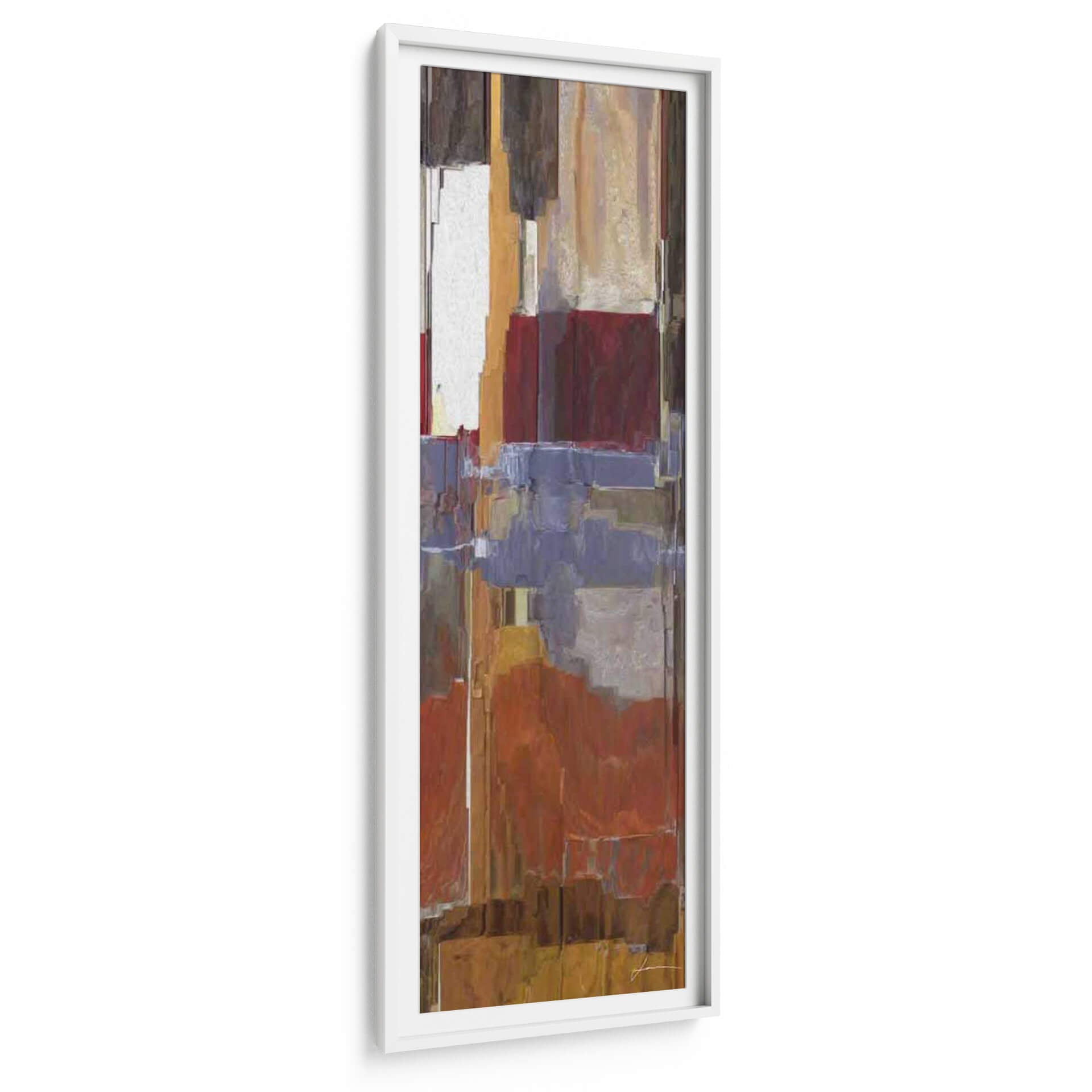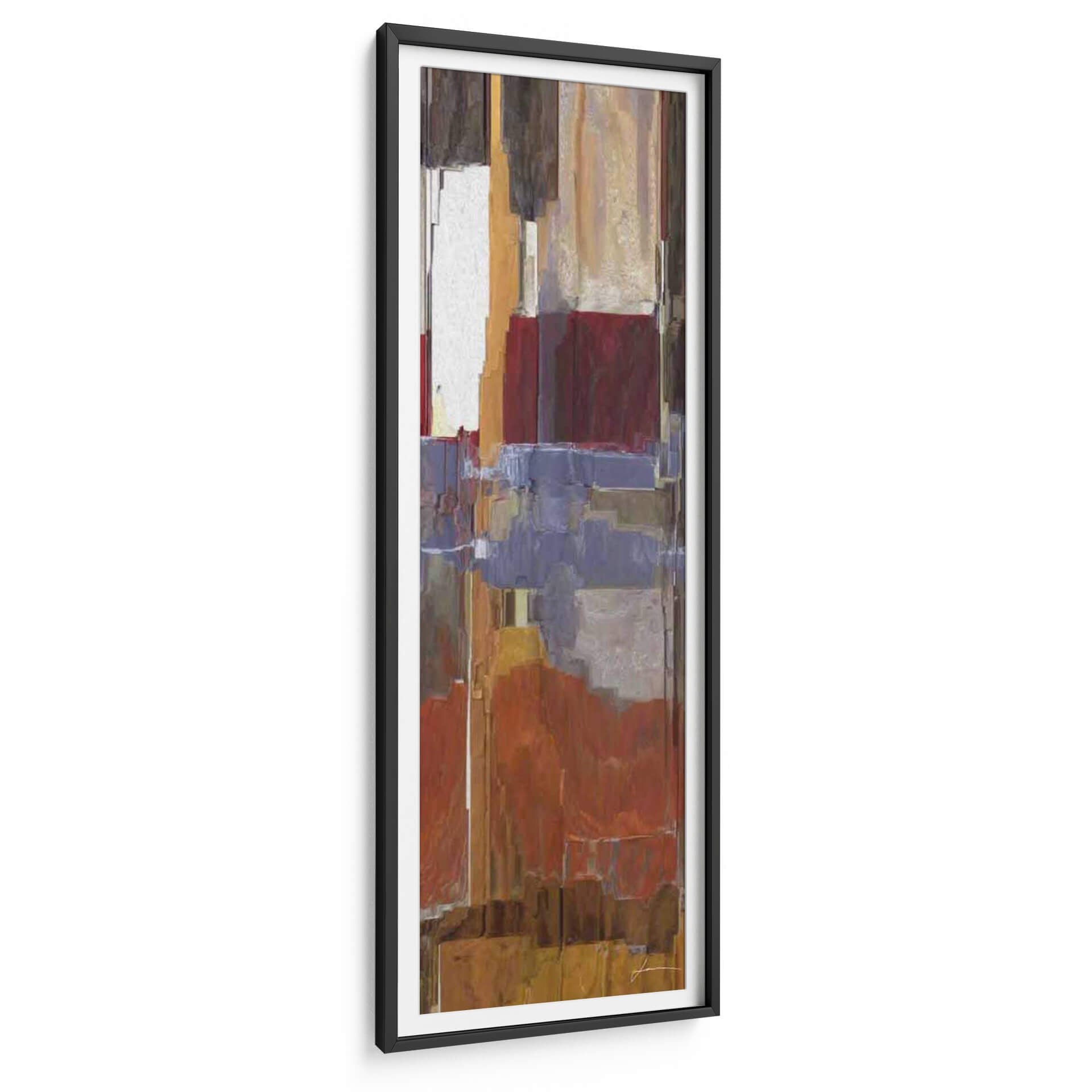 Sumérgete en la profundidad abstracta de "Roca III", una obra de James Burghardt que evoca la solidez y la textura de la naturaleza a través de una composición audaz y una paleta de colores terrosos. Este cuadro decorativo se caracteriza por sus bloques de color vibrantes y formas geométricas superpuestas, creando una sensación de movimiento y profundidad visual. Los tonos cálidos, que van desde ocres y naranjas intensos hasta marrones profundos y toques de blanco y azul grisáceo, invitan a la contemplación y añaden un carácter distintivo a cualquier espacio. Ideal para quienes buscan añadir un elemento de diseño contemporáneo y orgánico a su hogar u oficina, "Roca III" funciona como un punto focal dinámico, capaz de transformar un ambiente monótono en uno lleno de personalidad y sofisticación. Su estilo abstracto permite una interpretación personal, conectando con el espectador a un nivel emocional y estético, mientras que su formato vertical lo hace perfecto para pasillos, espacios estrechos o para complementar arreglos de pared más grandes. Este cuadro decorativo es una pieza que combina la fuerza de la tierra con la sensibilidad del arte moderno, aportando equilibrio y estilo a tu decoración.