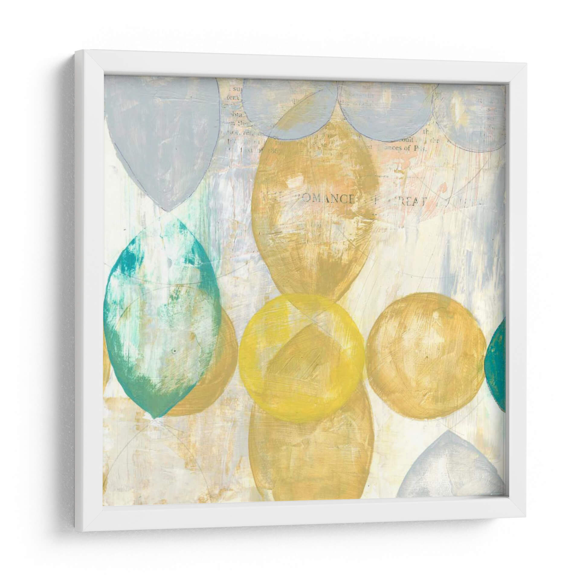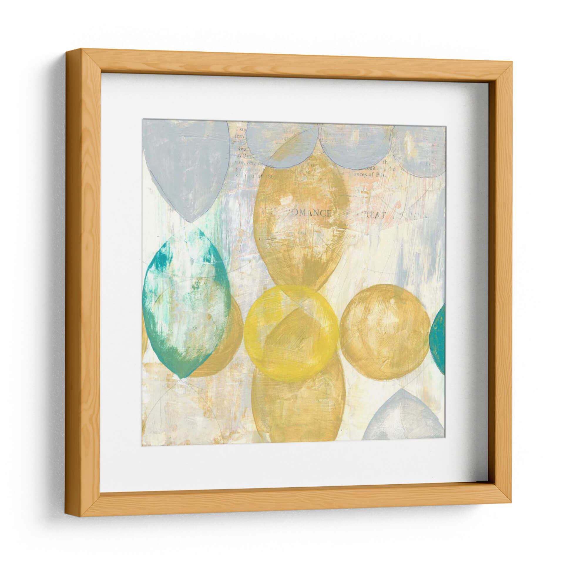 Sumérgete en la delicada serenidad de "Romance I", una cautivadora obra de arte abstracto que evoca sentimientos de ternura y conexión. Jennifer Goldberger crea una composición visualmente atractiva, entrelazando formas orgánicas suaves y texturas ricas que invitan a la contemplación. La paleta de colores, dominada por tonos cálidos de ocre y amarillo, se complementa con toques vibrantes de turquesa y gris pálido, generando un equilibrio armonioso que irradia calma y sofisticación. Los sutiles elementos texturizados, reminiscentes de páginas de libros antiguos, añaden profundidad y un aire de nostalgia, creando un diálogo visual entre lo moderno y lo atemporal. Este cuadro decorativo es perfecto para añadir un toque de dulzura y elegancia a cualquier espacio, ya sea un dormitorio acogedor, un estudio inspirador o una sala de estar moderna. Su estilo abstracto y su composición cuidada lo convierten en un punto focal que despierta la imaginación y fomenta momentos de paz. "Romance I" es más que una simple decoración; es una invitación a la reflexión y a la apreciación de la belleza sutil en la vida cotidiana, ideal para quienes buscan arte que hable al corazón.
