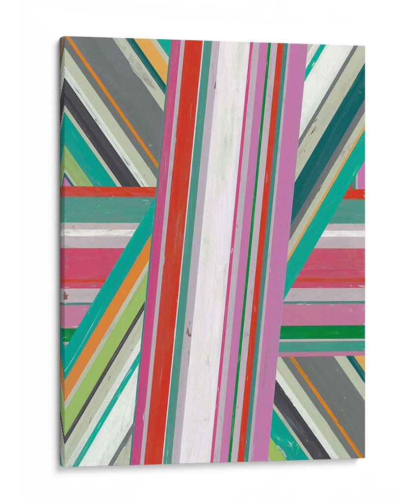 Sumérgete en la vibrante energía de "Sarape De Verano I", una obra de arte contemporáneo que redefine la decoración de paredes con su audaz abstracción geométrica. Este cuadro decorativo presenta una composición dinámica de líneas paralelas y diagonales que se cruzan, creando una sensación de movimiento y profundidad cautivadora. La paleta de colores es un festín visual, donde vibrantes tonos de coral, verde esmeralda y fucsia dialogan con grises sutiles y blancos puros, evocando la alegría y la calidez de un día de verano. El estilo abstracto de "Sarape De Verano I" lo convierte en una pieza versátil, capaz de complementar una amplia gama de estilos decorativos, desde el moderno y ecléctico hasta el bohemio chic. Imagina este lienzo como el punto focal de tu sala de estar, aportando un toque de color y personalidad que invita a la conversación, o como un acento inspirador en tu espacio de trabajo. Su diseño geométrico y su explosión de color lo hacen ideal para aquellos que buscan una pieza que refleje optimismo y un espíritu audaz en su hogar u oficina. "Sarape De Verano I" no es solo una obra de arte, es una declaración de estilo que transforma cualquier ambiente.
