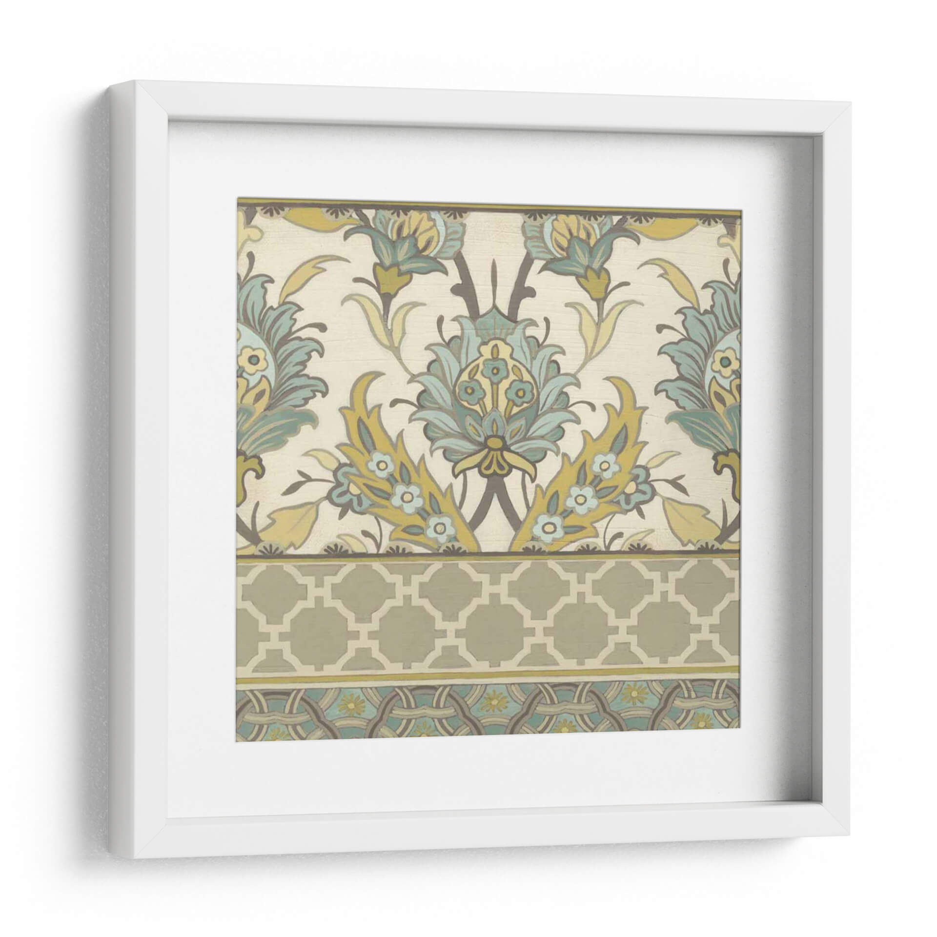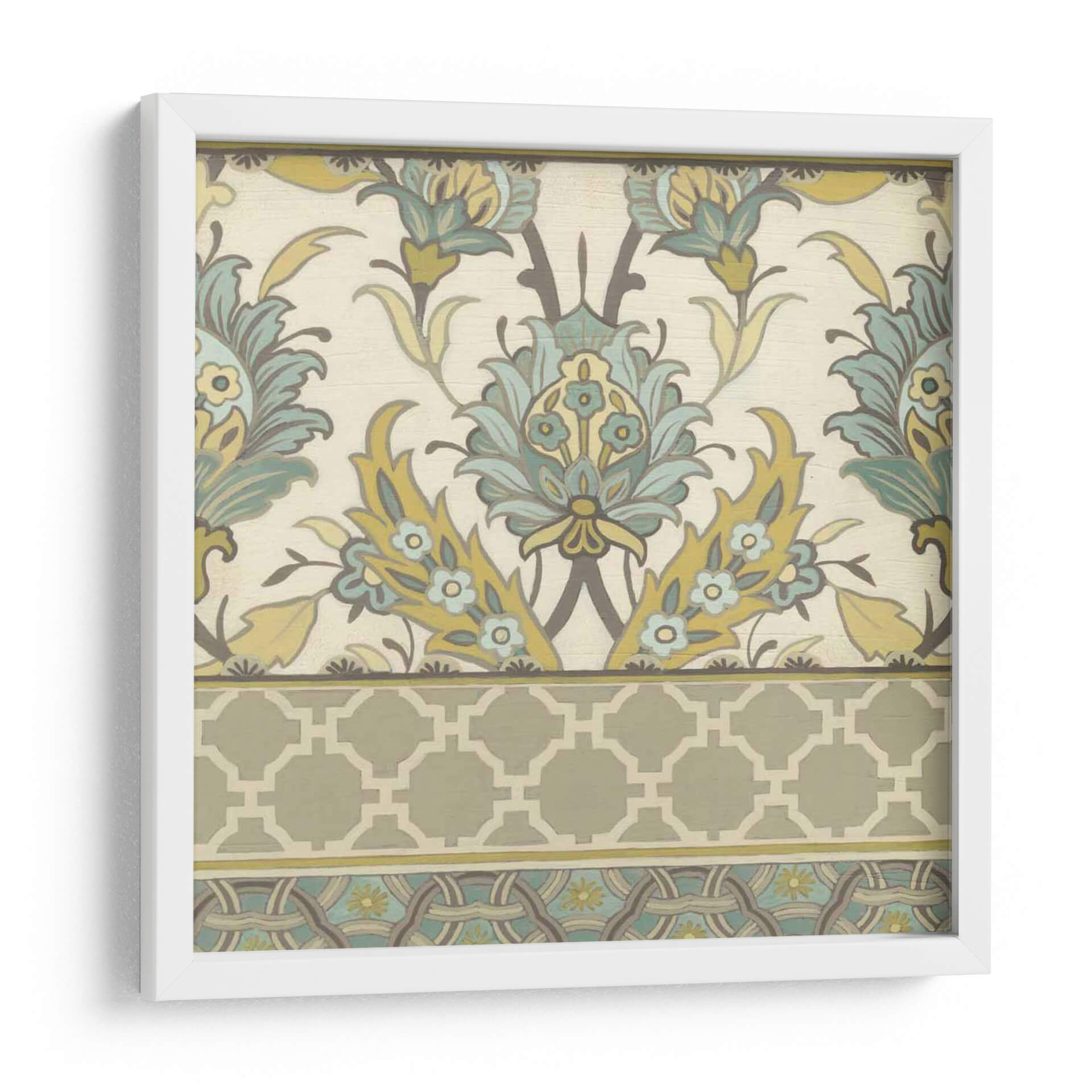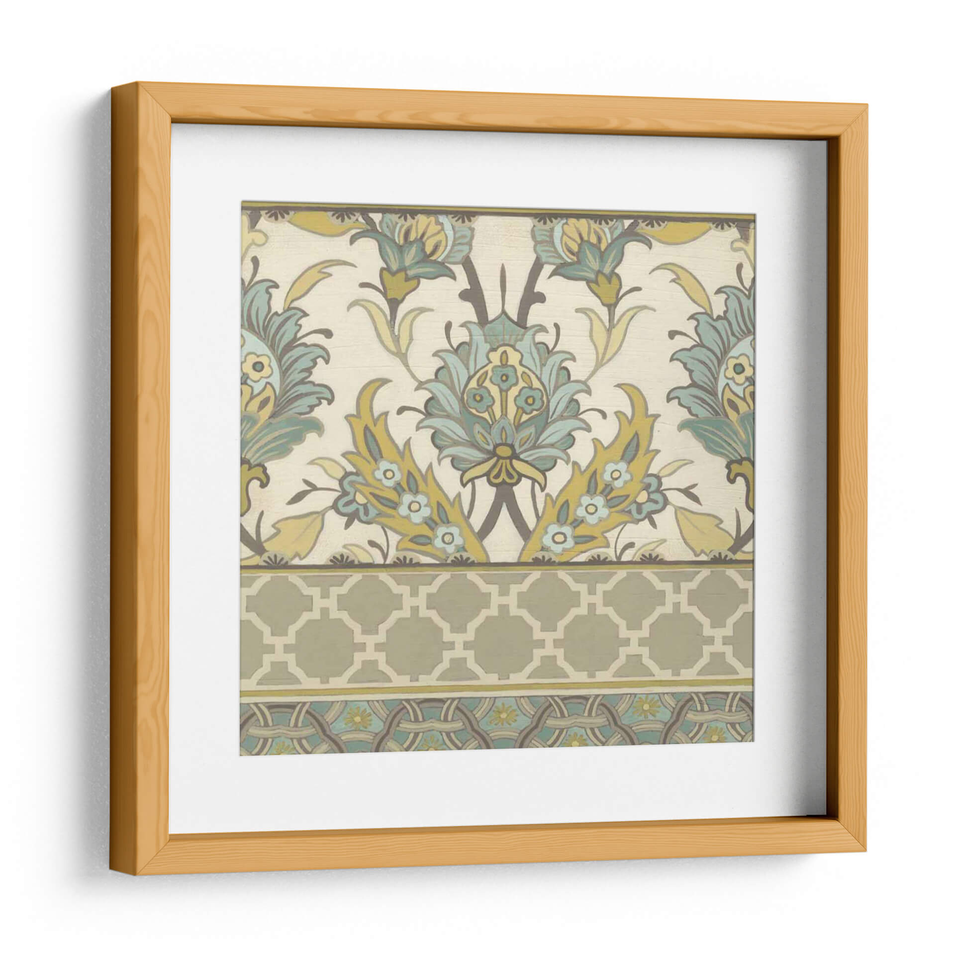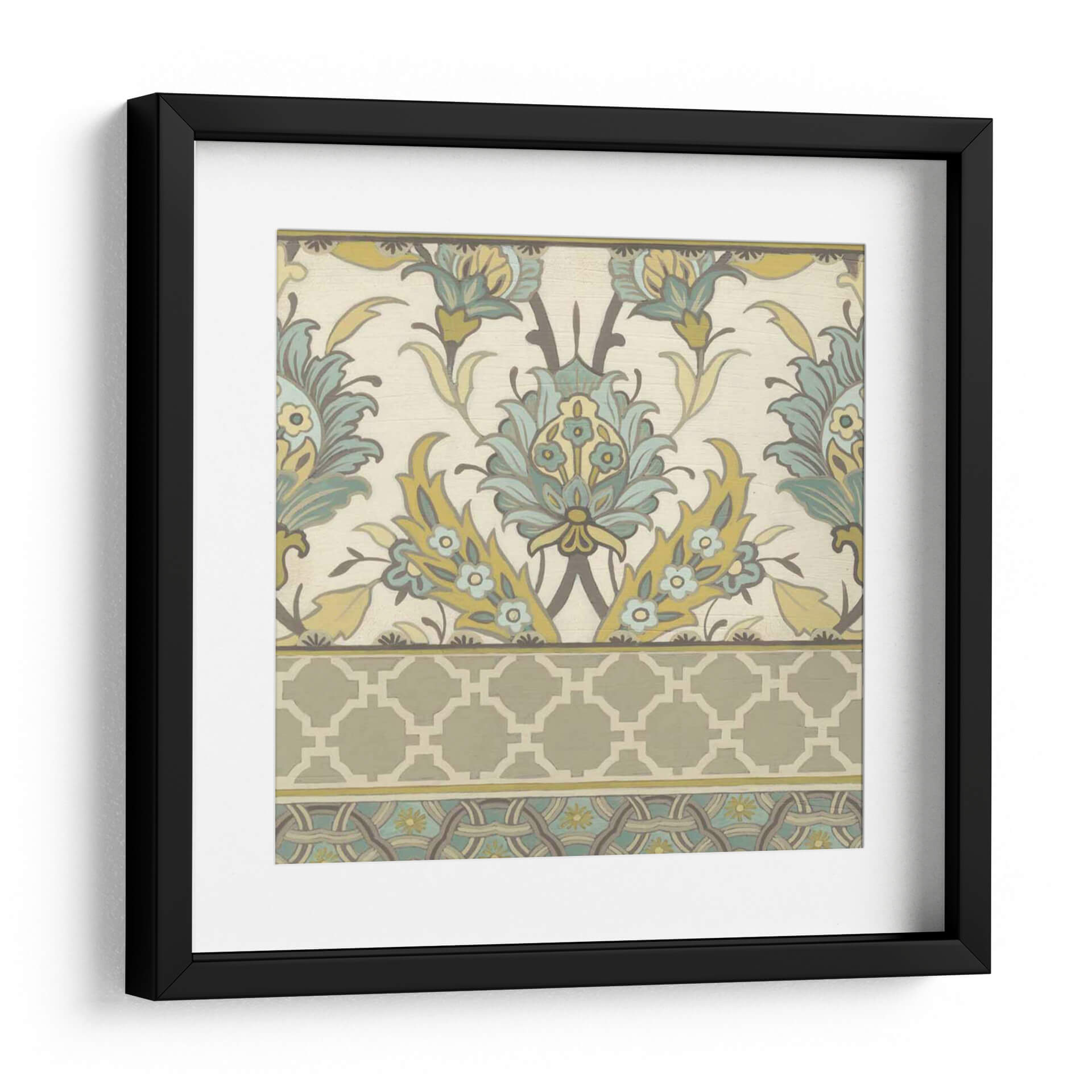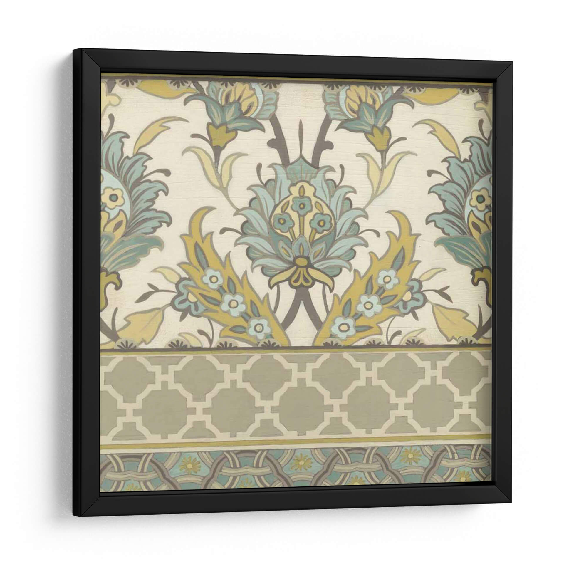 Sumérgete en la elegancia atemporal de "Serenade Marroquí II", una obra de arte que evoca la riqueza y la intrincada belleza de los patrones marroquíes. Este cuadro decorativo presenta un diseño botánico estilizado, dominado por flores y follaje en tonos azules, amarillos pálidos y verdes, sobre un fondo neutro que realza su delicadeza. La composición se divide en dos secciones: un panel superior ricamente ornamentado con motivos florales simétricos y un borde inferior con un patrón geométrico sutil pero cautivador, que añade profundidad y estructura a la pieza. La paleta de colores, suave y armoniosa, crea una atmósfera de calma y sofisticación, perfecta para infundir serenidad en cualquier espacio. Ideal para salones, dormitorios o estudios que buscan un toque de refinamiento exótico y un estilo contemporáneo con influencias tradicionales. "Serenade Marroquí II" no es solo una decoración, es una invitación a un viaje visual a través de texturas y formas que inspiran tranquilidad y belleza.