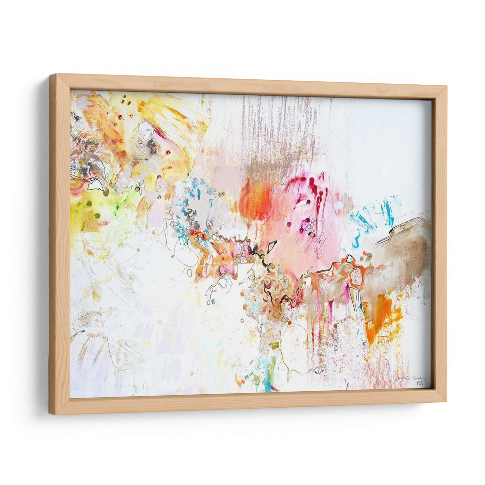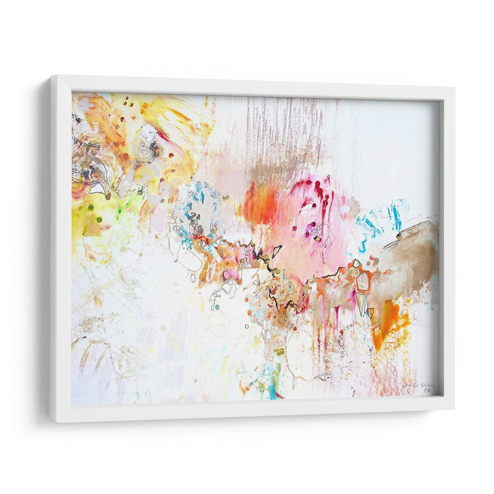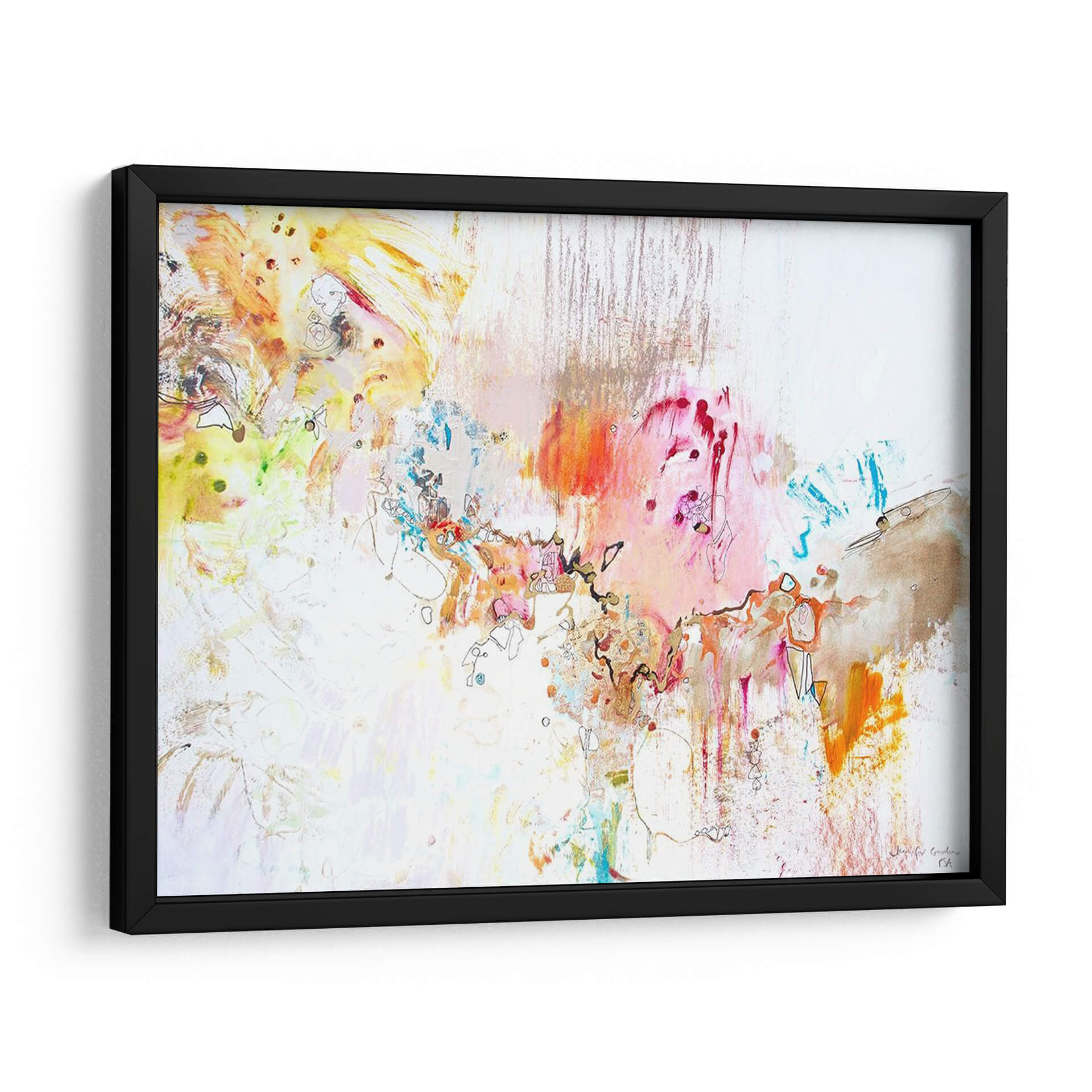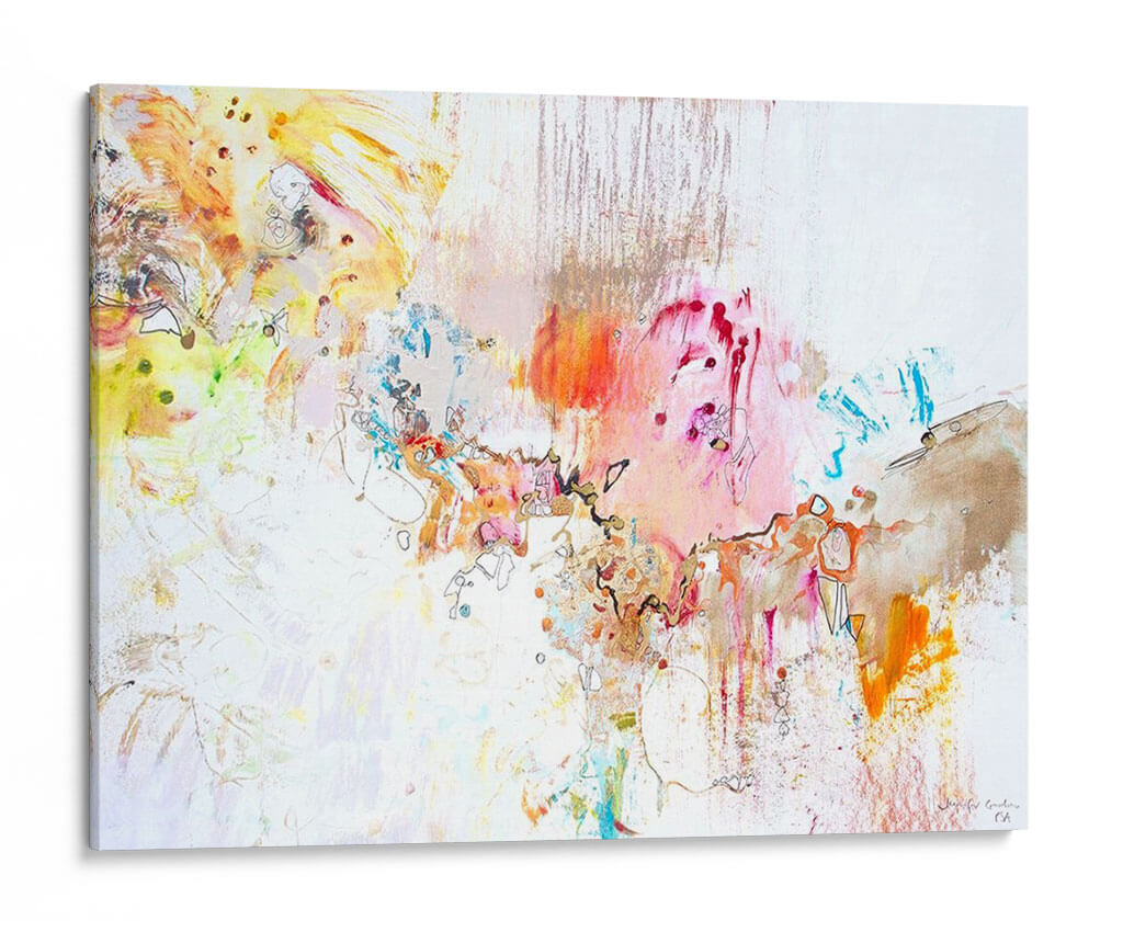 Sumérgete en la vibrante y etérea obra "Serie Blanca II" de Jennifer Gardner, una pieza que trasciende lo convencional para invitar a la contemplación. Esta obra abstracta se despliega con una audacia cromática que combina trazos enérgicos de naranja, amarillo y rosa intenso, contrastando con suaves matices de blanco y toques de azul y ocre. Las delicadas líneas a carboncillo y las texturas sutiles añaden profundidad y un carácter lúdico, creando un diálogo visual fascinante. "Serie Blanca II" evoca una sensación de movimiento y espontaneidad, como un instante congelado en el tiempo, lleno de vida y color. Es una elección perfecta para aquellos que buscan infundir alegría y dinamismo en sus espacios, ya sea en una sala de estar contemporánea, un estudio creativo o un dormitorio que necesite un toque de optimismo. Este cuadro decorativo abstracto no solo embellece, sino que también estimula la imaginación, convirtiéndose en un punto focal que invita a la conversación y a la interpretación personal. Descubre cómo esta obra puede transformar tu hogar, aportando un aire de sofisticación artística y una explosión controlada de color.