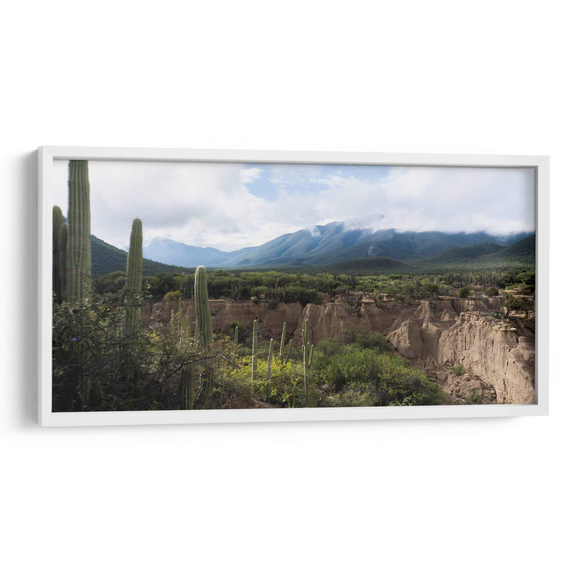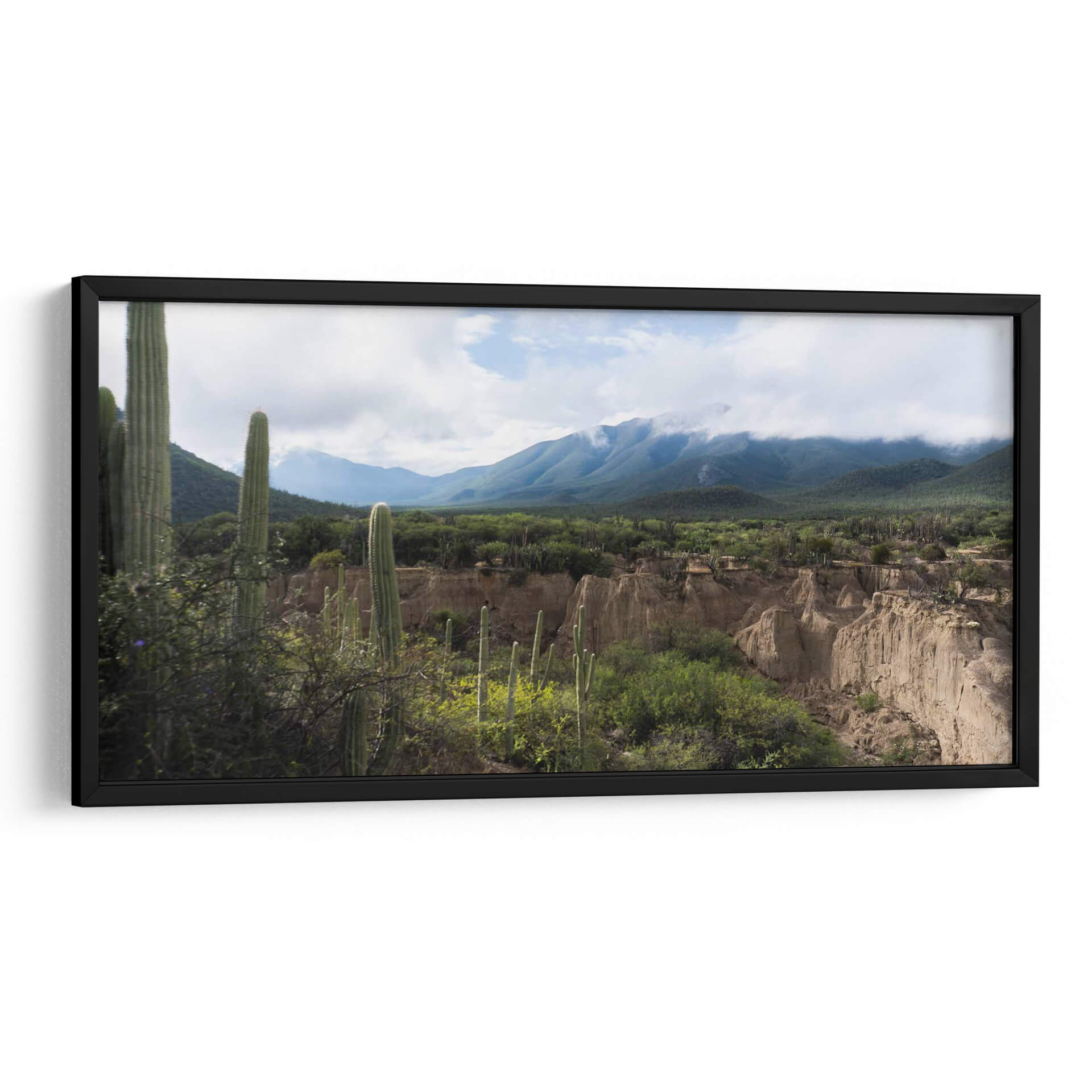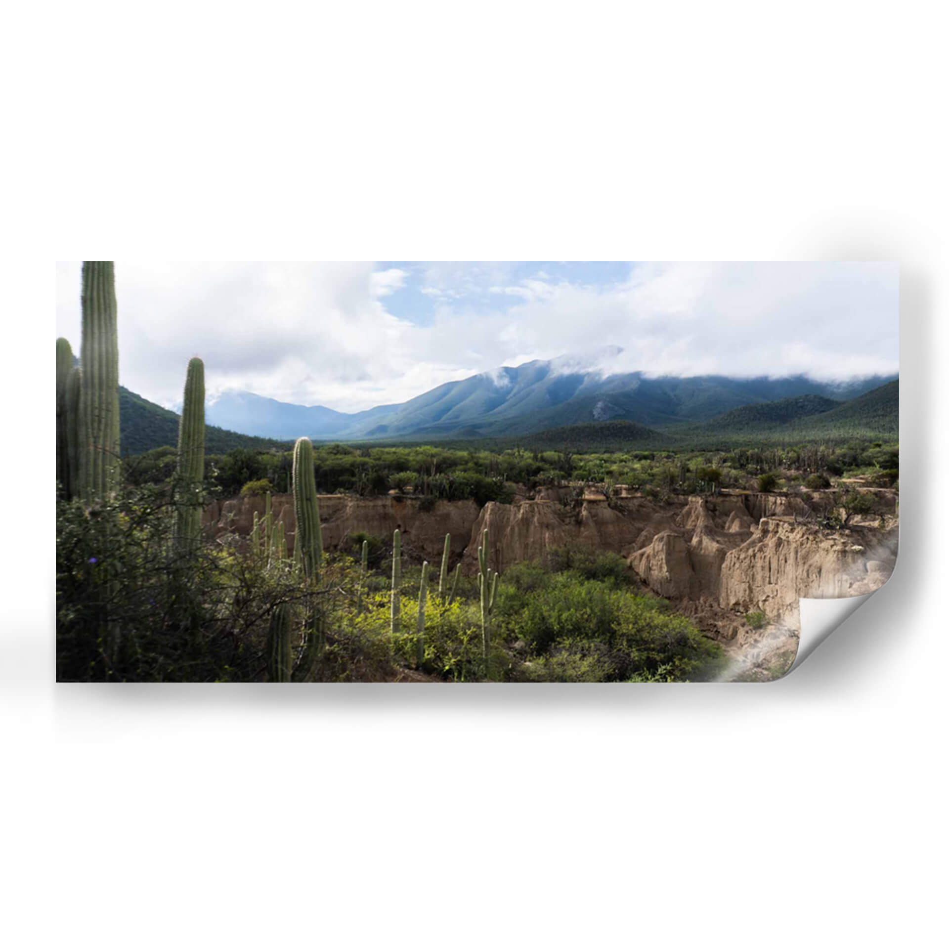 Sumérgete en la majestuosidad árida del "Tehuacán, Semidesierto Poblano" con este evocador cuadro decorativo. La obra captura la esencia de un paisaje desértico con una paleta de colores tierra y verdes vibrantes, dominada por imponentes cactus que se alzan contra un cielo nublado. Las formaciones geológicas únicas y las montañas cubiertas de vegetación crean una atmósfera de serenidad y exploración, invitando a la contemplación de la resiliencia y la belleza indómita de la naturaleza. Este lienzo es ideal para añadir un toque de naturaleza salvaje y tranquilidad a cualquier espacio, ya sea una sala de estar moderna, un estudio tranquilo o una oficina que busque inspiración. Su composición detallada y la profundidad del paisaje transportan al espectador a este rincón especial de México, ofreciendo una ventana a un mundo de texturas y tonos sutiles que enriquecerán tu decoración. Descubre la calma y la fuerza de este semidesierto capturadas en una pieza de arte única, perfecta para quienes aprecian la fotografía de paisajes y la belleza del entorno natural.