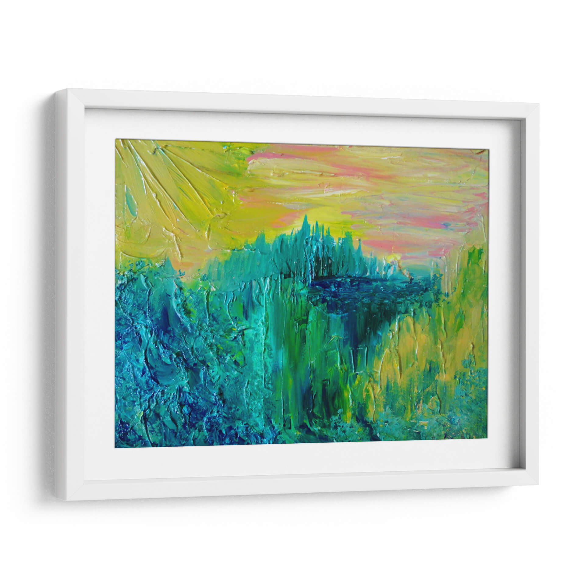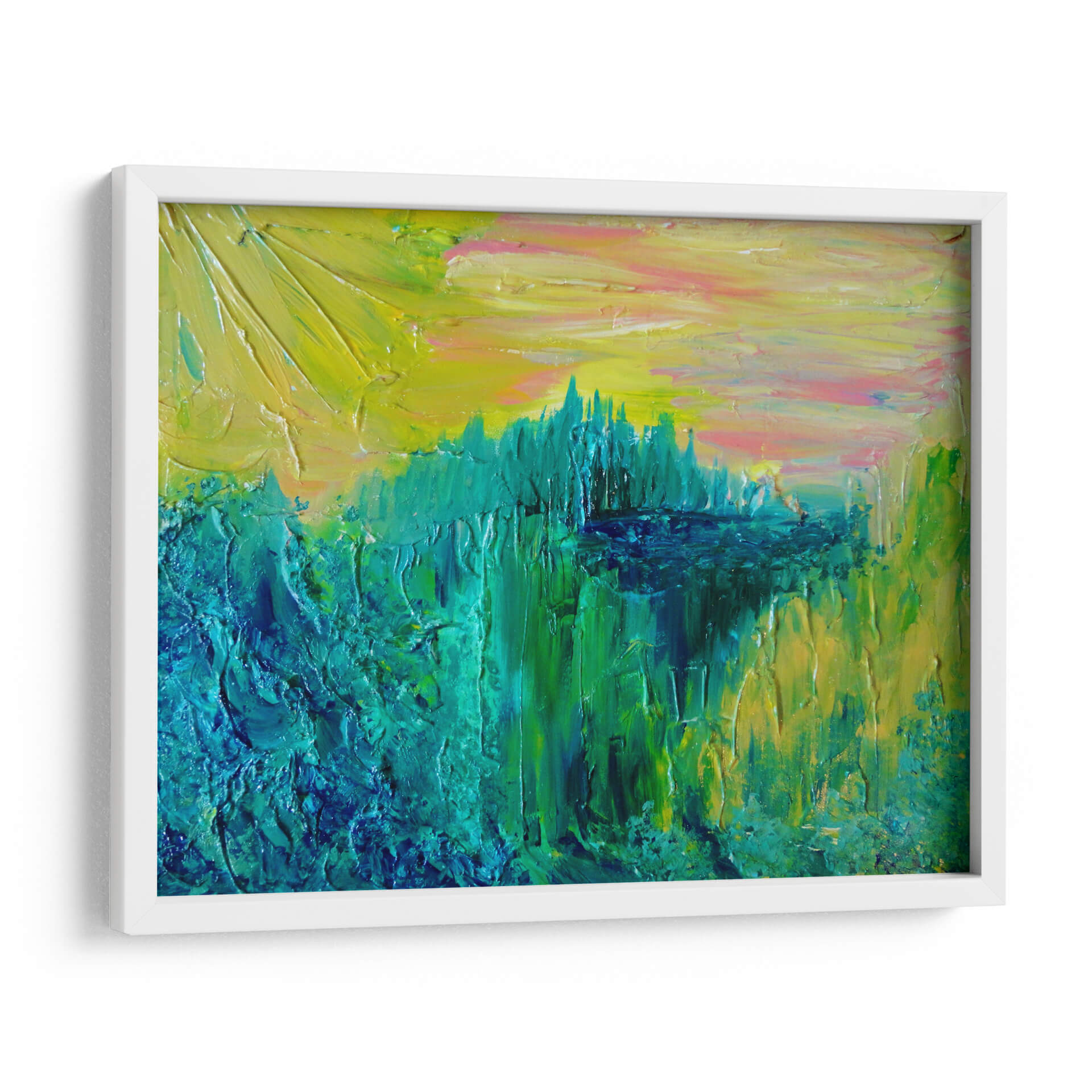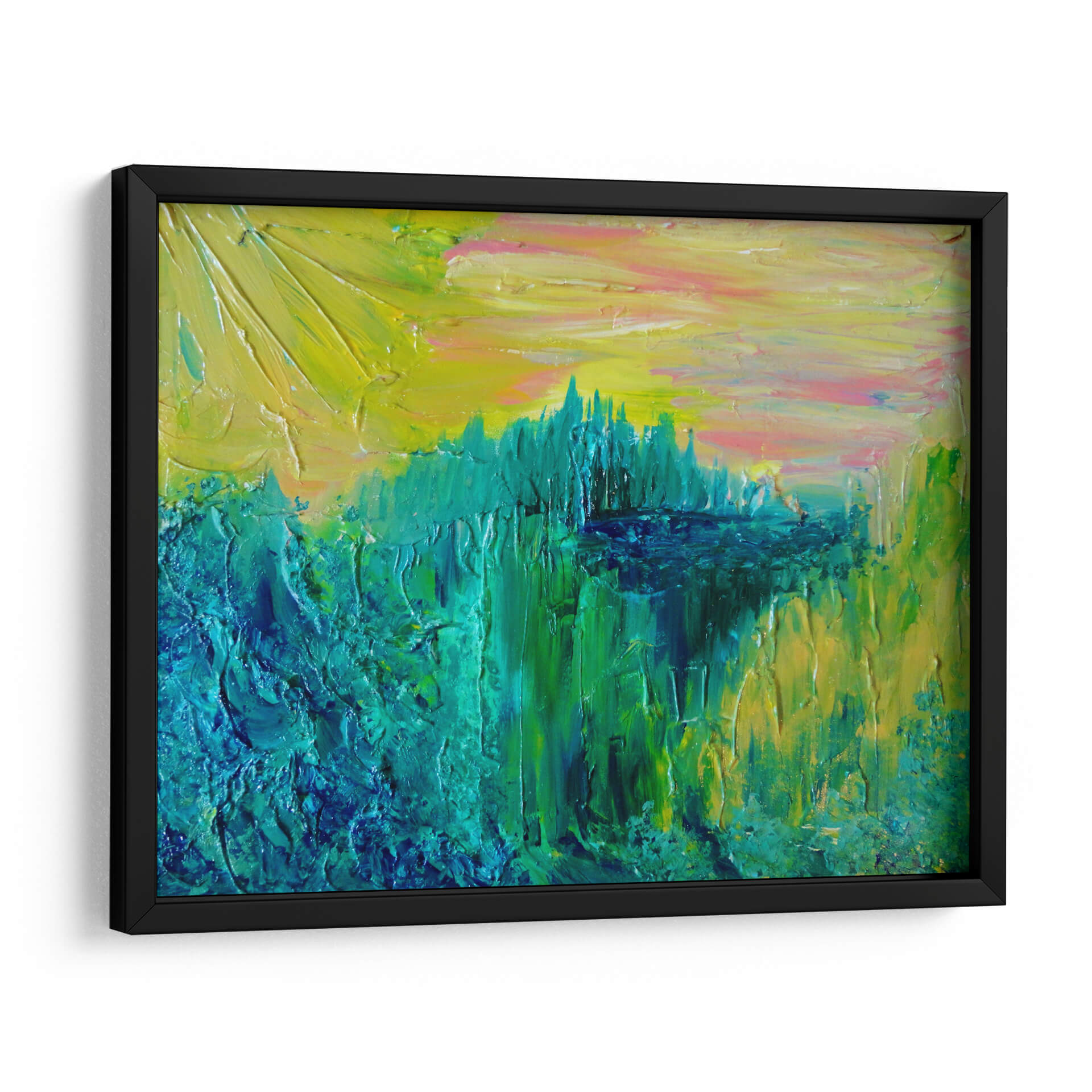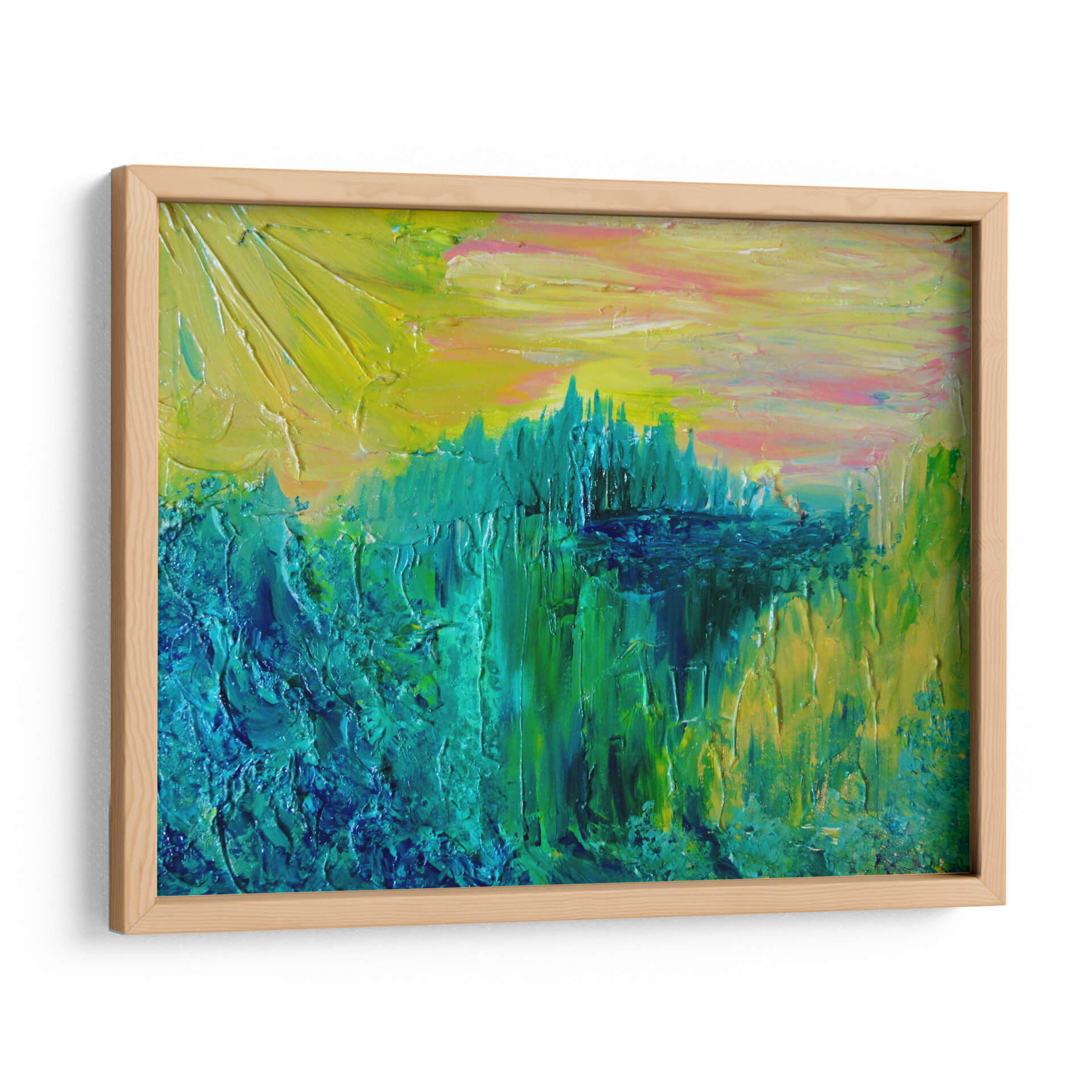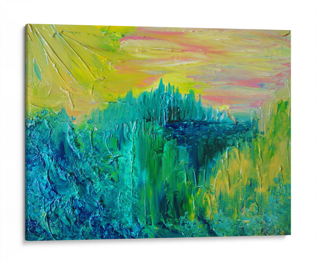 Sumérgete en la vibrante 'Vegetación de óleo', una obra de arte abstracto que evoca la exuberancia de la naturaleza con una paleta de colores intensos y texturas audaces. Este cuadro decorativo captura la esencia de un paisaje exuberante a través de pinceladas gruesas y empastadas, creando un efecto tridimensional que invita a la contemplación. Los tonos profundos de verde y azul se entrelazan con destellos de amarillo y rosa en el cielo, simulando un atardecer o amanecer lleno de energía y vida. La composición abstracta sugiere formas orgánicas y el dinamismo de la vegetación en su máximo esplendor, perfecta para añadir un toque de color y vitalidad a cualquier espacio. Ideal para salones modernos, oficinas o dormitorios que buscan un punto focal artístico y una conexión con la naturaleza. Transforma tu hogar en una galería personal con esta pieza única que inspira calma y admiración. Este cuadro decorativo no solo embellece, sino que también cuenta una historia de color y textura que resonará con tus invitados.