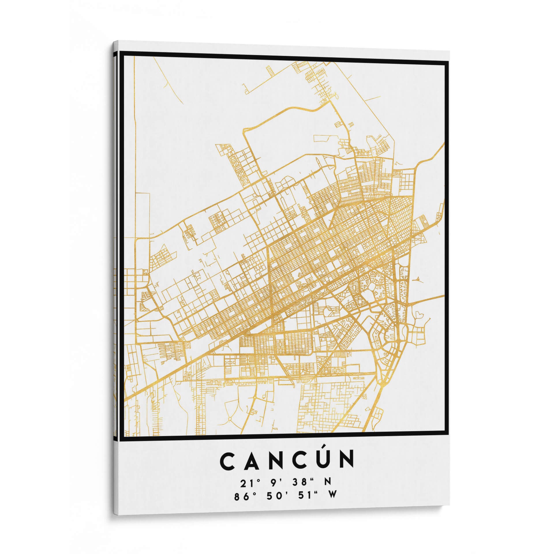 Embárcate en un viaje visual a través de las vibrantes calles de Cancún con este cautivador cuadro decorativo. La obra de arte presenta un intrincado mapa estilizado de la ciudad, delineado con finas líneas doradas sobre un fondo blanco nítido. La paleta de colores, dominada por el contraste del oro y el blanco, irradia sofisticación y modernidad, aportando un toque de elegancia a cualquier espacio. La composición detallada del mapa revela la topografía urbana, invitando a la contemplación y a la evocación de recuerdos de viajes o sueños de futuras aventuras. Este diseño minimalista pero impactante es perfecto para quienes buscan añadir un elemento de geografía chic o un recordatorio de un destino amado a su hogar u oficina. Ideal para salas de estar, estudios o recibidores, este mapa de Cancún en oro se convierte en un punto focal que combina arte contemporáneo con un toque de exploración personal, ofreciendo una atmósfera de descubrimiento y estilo refinado. Transforma tu pared con este tributo moderno a una de las ciudades más emblemáticas.