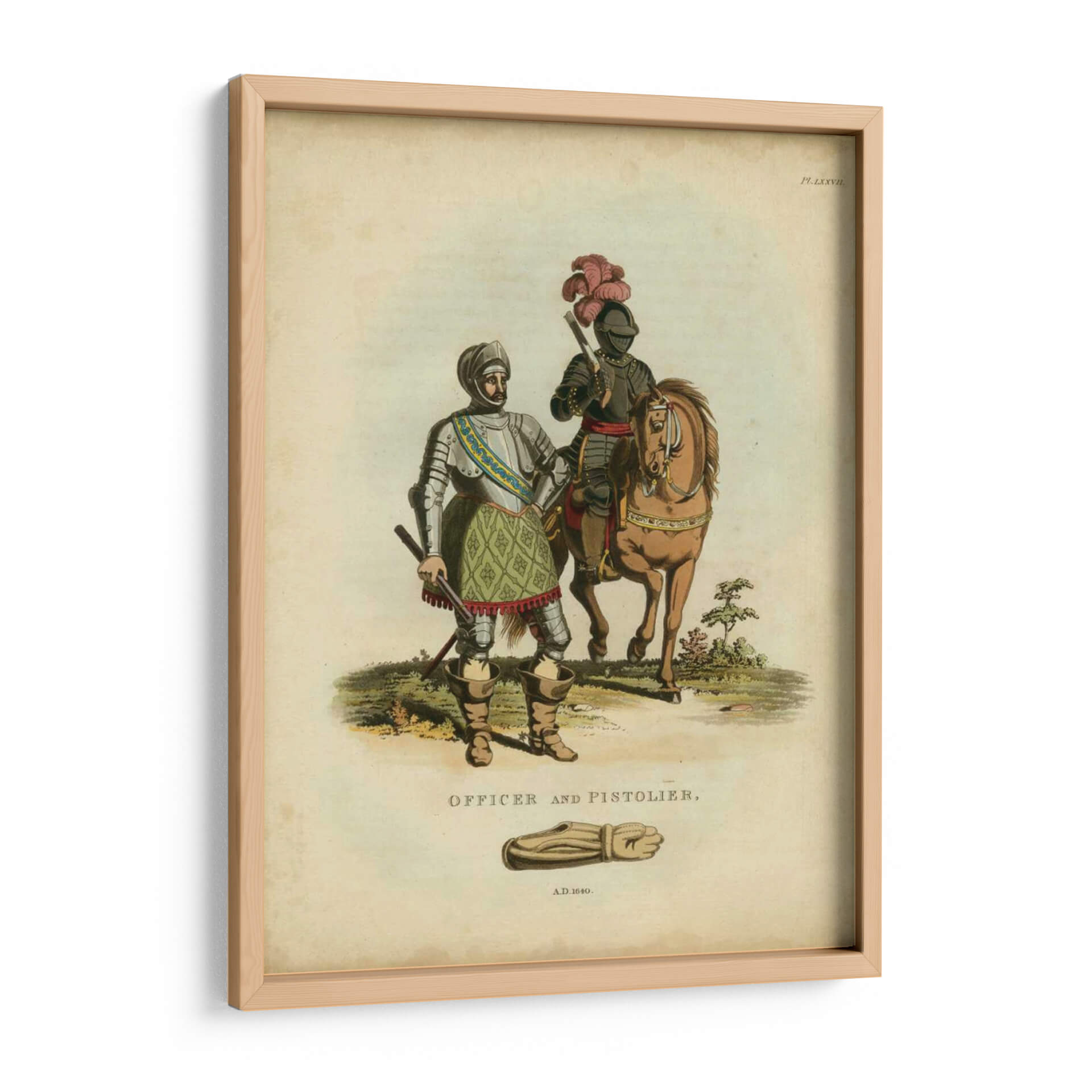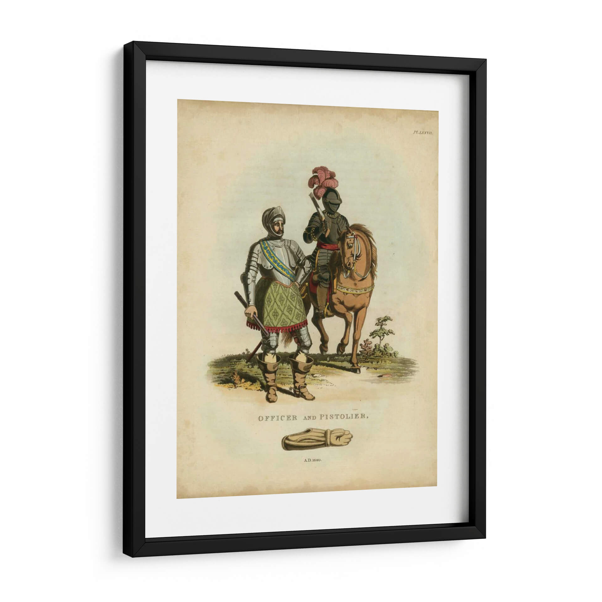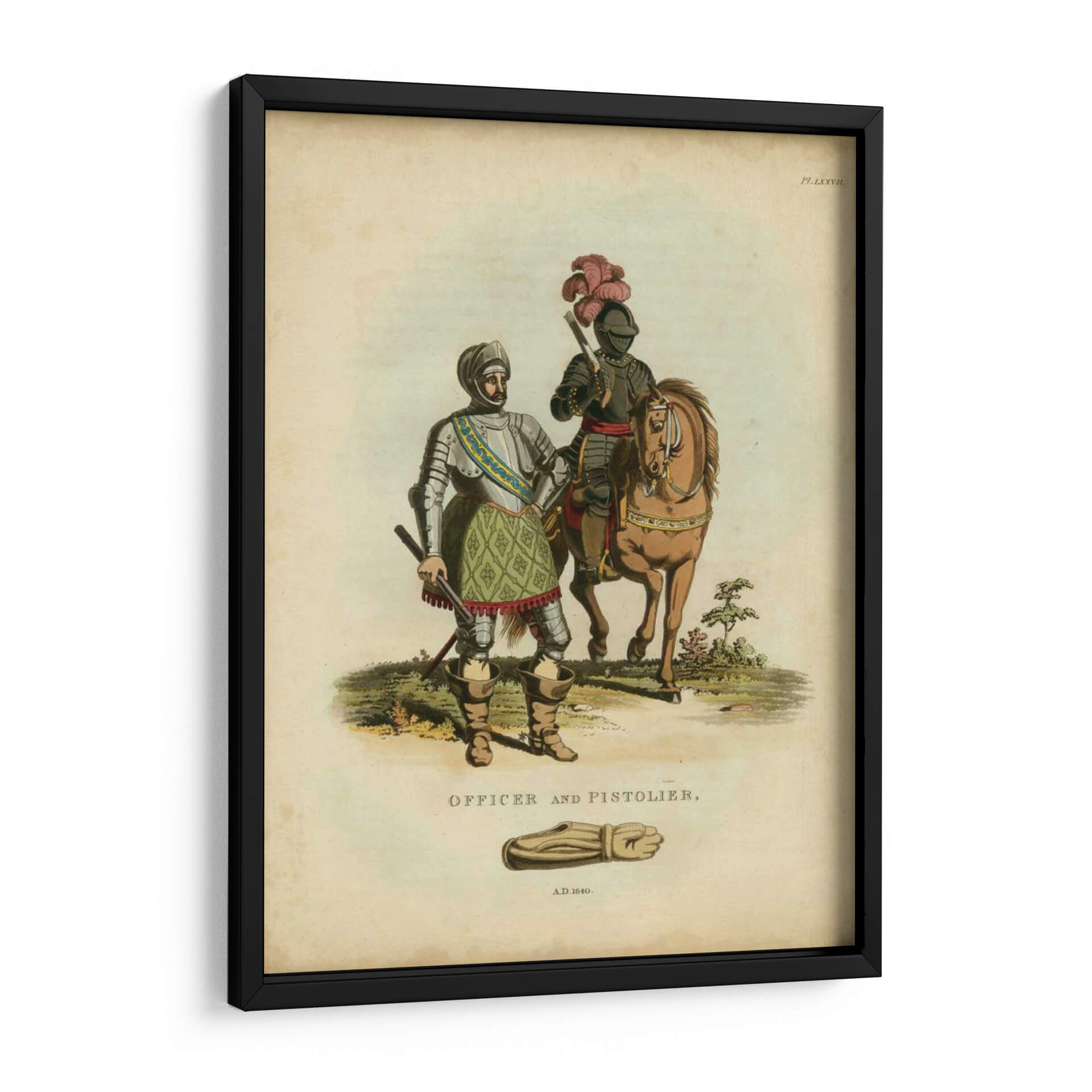 Sumérgete en la historia y la elegancia con este cuadro decorativo "Hombres en Armadura V" del artista Meyrick. Esta obra de arte transporta al espectador a una época de caballeros y valientes guerreros, presentando a un oficial a pie y otro a caballo, ambos ataviados con armaduras detalladas que evocan fuerza y honor. La paleta de colores, predominantemente terrosa y apagada con sutiles toques de color en las vestimentas y el plumaje del casco, crea una atmósfera de autenticidad histórica y seriedad. La composición, con las figuras humanas como centro de atención y un entorno paisajístico simplificado, realza el protagonismo de los personajes y su indumentaria. Este cuadro decorativo es ideal para aquellos que buscan añadir un toque de distinción, carácter y una narrativa visual cautivadora a sus espacios. Perfecto para salones, estudios u oficinas que deseen evocar un sentido de tradición, valentía o simplemente apreciar el arte con una profunda conexión histórica. Añade una pieza con historia y estilo a tu decoración.