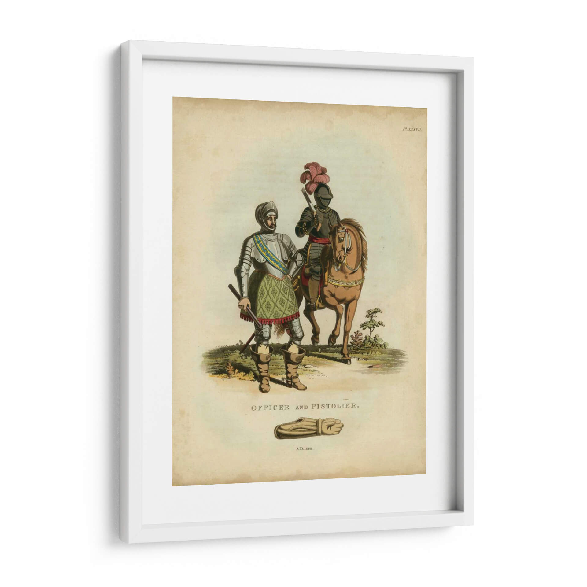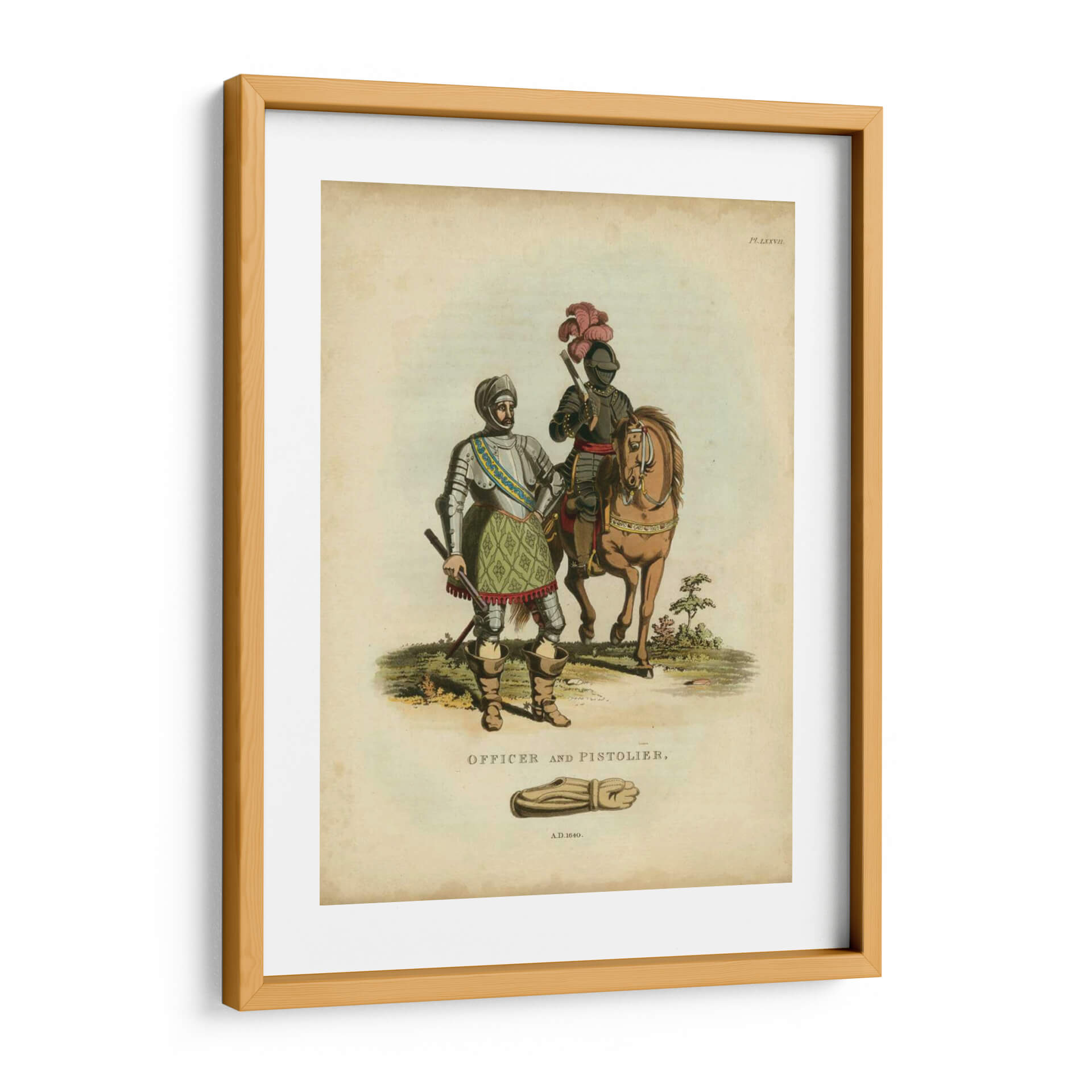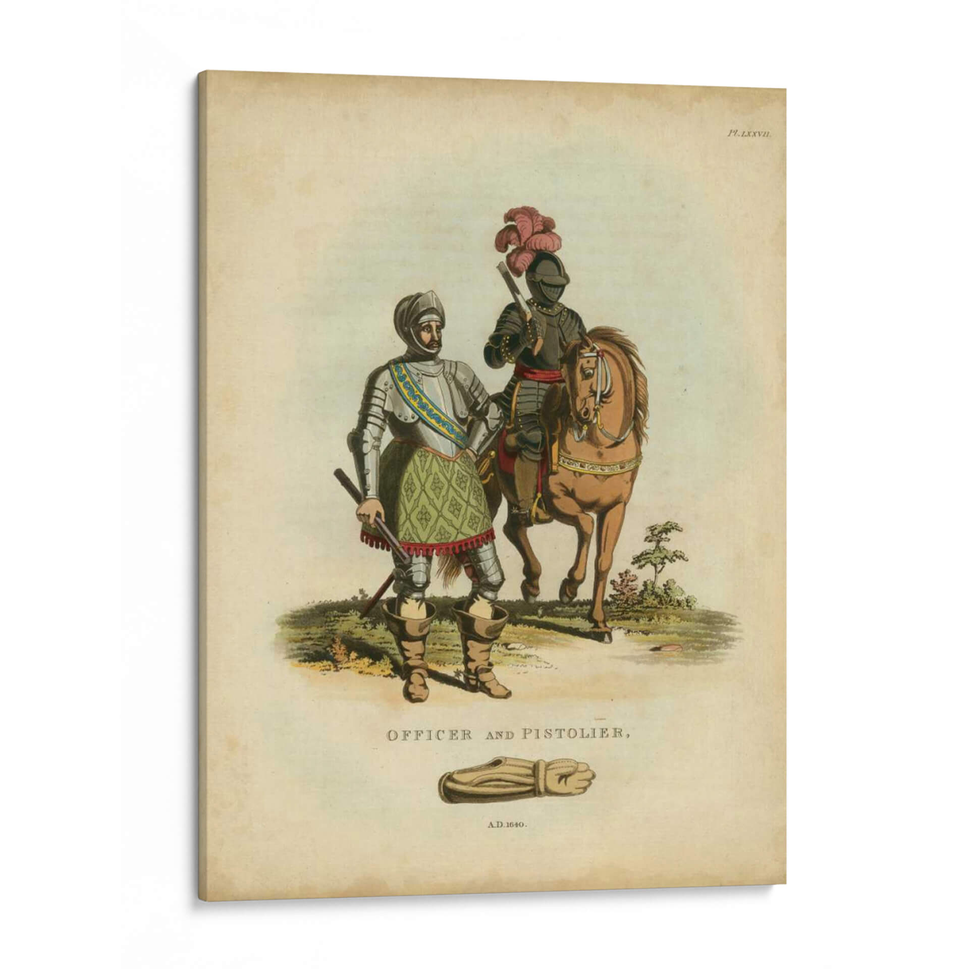 Sumérgete en la historia y la elegancia con este cuadro decorativo "Hombres en Armadura V" del artista Meyrick. Esta obra de arte transporta al espectador a una época de caballeros y valientes guerreros, presentando a un oficial a pie y otro a caballo, ambos ataviados con armaduras detalladas que evocan fuerza y honor. La paleta de colores, predominantemente terrosa y apagada con sutiles toques de color en las vestimentas y el plumaje del casco, crea una atmósfera de autenticidad histórica y seriedad. La composición, con las figuras humanas como centro de atención y un entorno paisajístico simplificado, realza el protagonismo de los personajes y su indumentaria. Este cuadro decorativo es ideal para aquellos que buscan añadir un toque de distinción, carácter y una narrativa visual cautivadora a sus espacios. Perfecto para salones, estudios u oficinas que deseen evocar un sentido de tradición, valentía o simplemente apreciar el arte con una profunda conexión histórica. Añade una pieza con historia y estilo a tu decoración.