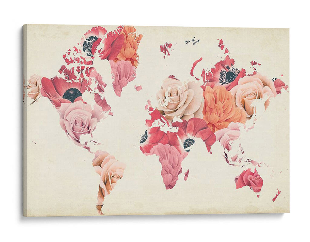 Embellece tu hogar con el cautivador cuadro decorativo "La Tierra Ríe En Flores" de Grace Popp. Esta obra de arte única fusiona la geografía de nuestro planeta con la delicadeza y vitalidad de un jardín florecido. Cada continente y masa de tierra está meticulosamente diseñado con una vibrante colección de rosas, anémonas y otras flores en tonos rosados, corales y melocotón, creando una composición visualmente impactante. El fondo de estilo vintage, con su textura suave y color marfil envejecido, realza la riqueza de las flores y aporta una sensación de nostalgia y calidez. El estilo de la obra, que combina elementos cartográficos con un enfoque floral y realista, resulta en una pieza artística contemporánea que evoca sentimientos de alegría, crecimiento y conexión global. "La Tierra Ríe En Flores" es ideal para añadir un toque de color y vida a cualquier espacio, desde salas de estar modernas hasta oficinas inspiradoras o dormitorios serenos. Su diseño versátil lo convierte en un punto focal que invita a la contemplación y la conversación, celebrando la belleza del mundo natural y la creatividad artística. Descubre la perfecta fusión de arte y geografía para transformar tu decoración.