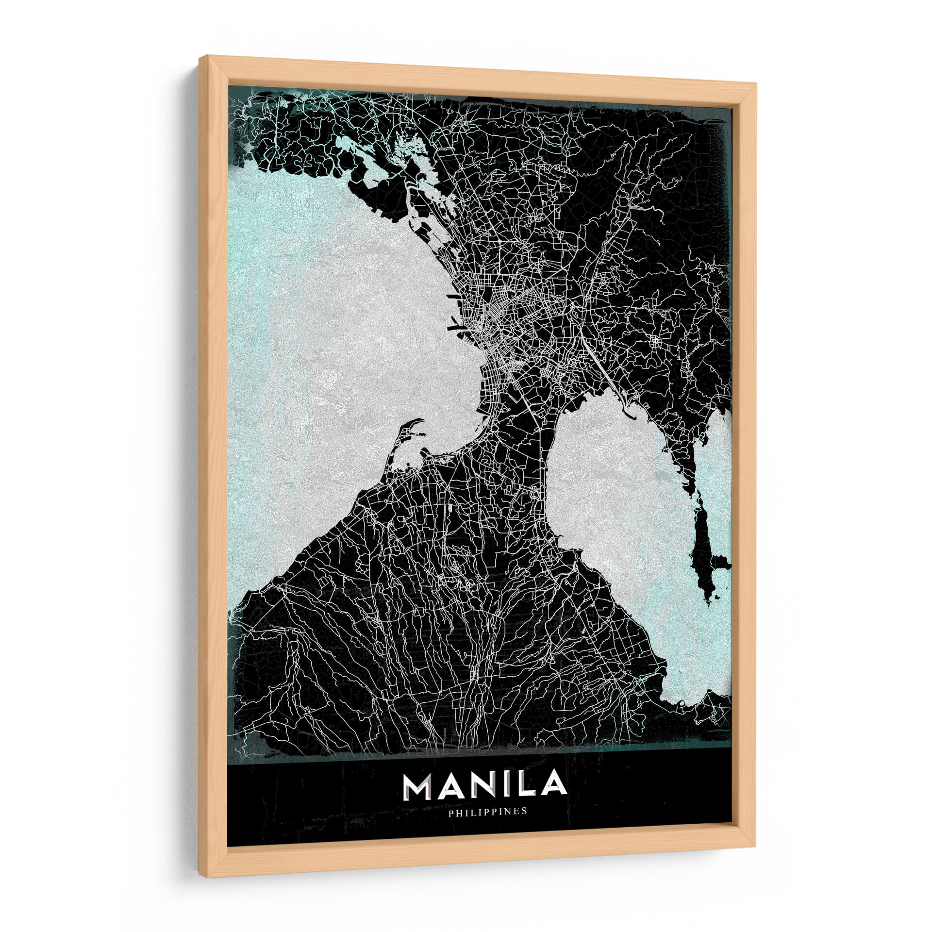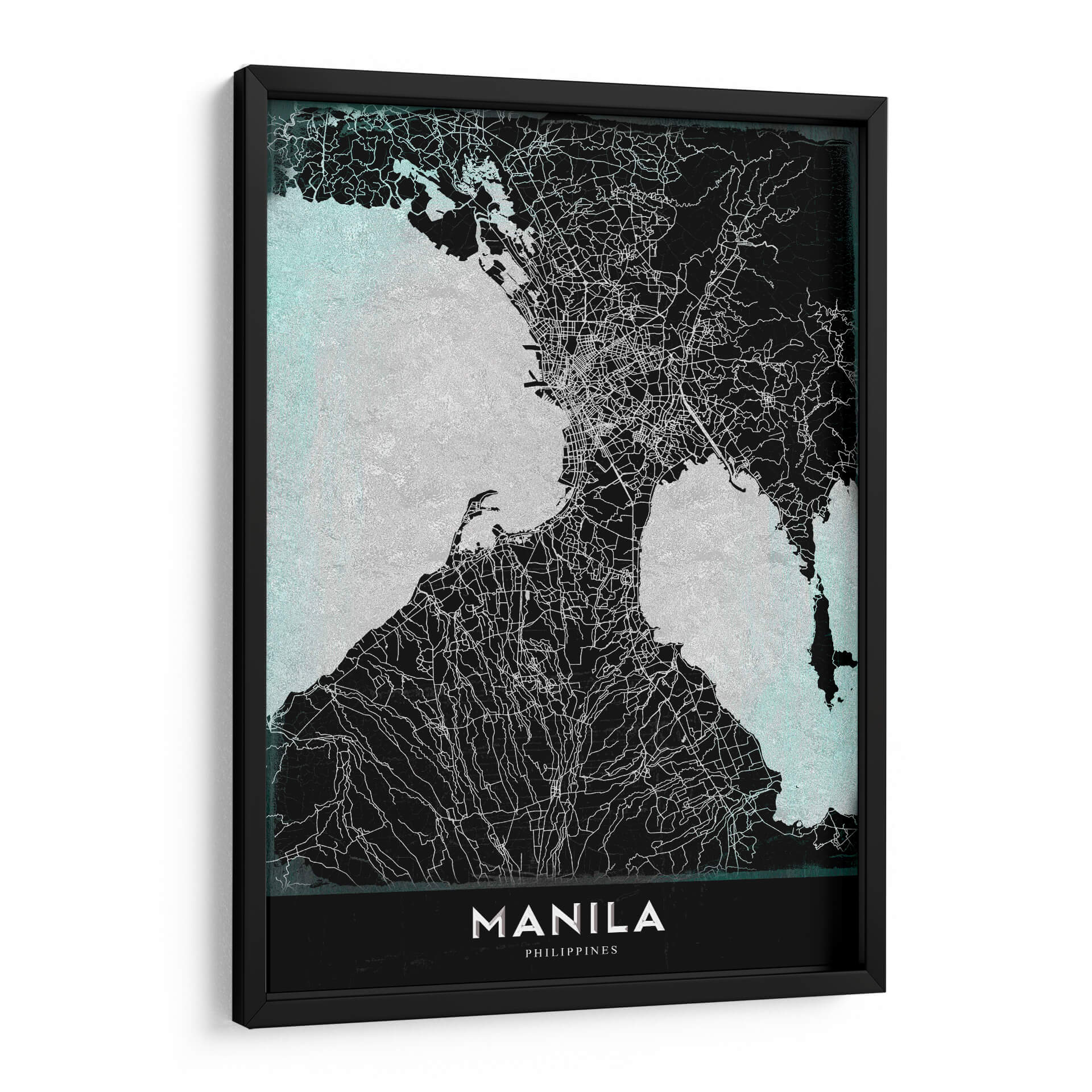 Descubre la esencia urbana de "MANILA" con este cautivador cuadro decorativo, una obra de arte inspirada en el diseño de mapas cartográficos. La pieza presenta una intrincada red de calles y vías urbanas sobre un fondo predominantemente negro, salpicado por sutiles texturas que evocan un mapa geográfico con un toque moderno y abstracto. Las zonas de agua y tierra se representan con áreas de color gris pálido y un etéreo tono azul verdoso, creando un contraste dinámico con el detalle fino de la cartografía en blanco. Esta representación estilizada de la ciudad de Manila no solo es una pieza de conversación, sino que también evoca una sensación de exploración, conexión y la belleza inherente a la estructura urbana. Su paleta de colores sofisticada, que combina el negro profundo con toques de gris y verde azulado, la hace versátil para integrarse en una variedad de estilos decorativos, desde el moderno y minimalista hasta el contemporáneo o industrial. Ideal para amantes de los viajes, la geografía o para quienes buscan añadir un toque de carácter distintivo a su hogar u oficina. Este cuadro decorativo es perfecto para dar vida a salones, estudios o espacios de trabajo, aportando una perspectiva única y elegante.