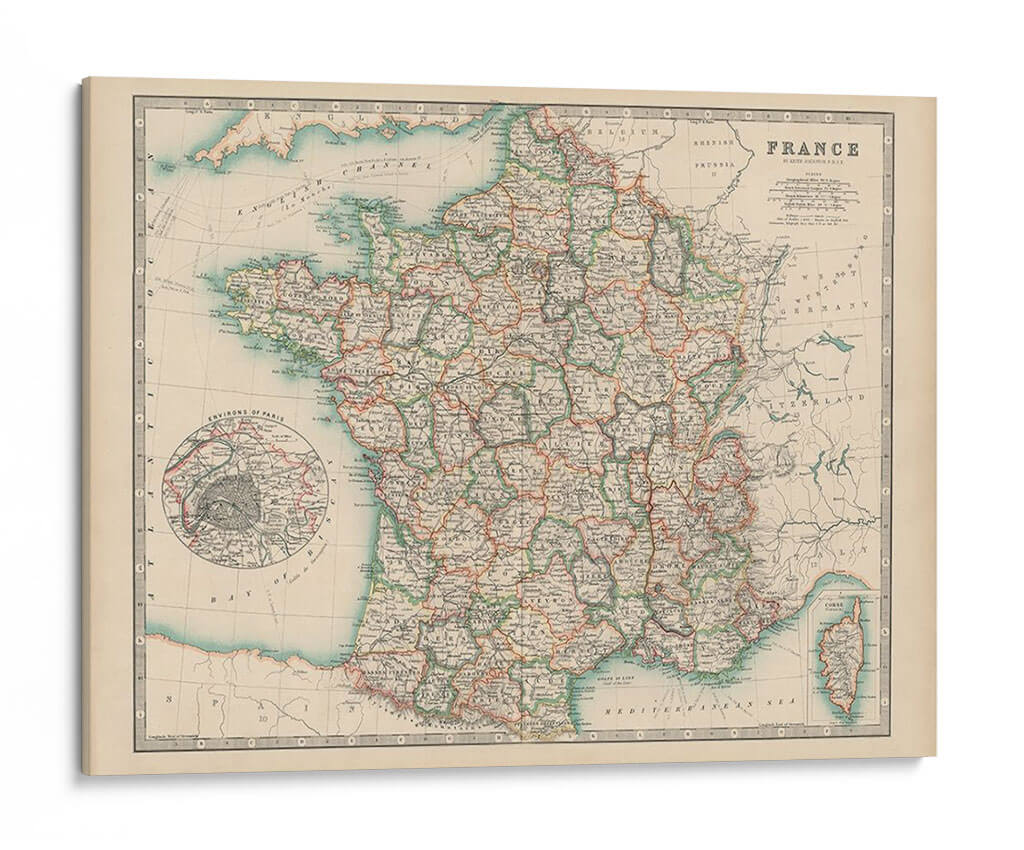 Embárcate en un viaje visual a través del tiempo y la geografía con nuestro exquisito cuadro decorativo del Mapa de Francia de Johnston. Esta obra de arte, inspirada en la cartografía histórica, presenta una detallada representación de Francia, con sus regiones, ciudades y accidentes geográficos meticulosamente delineados. Los colores tenues y la estética clásica evocan una sensación de nostalgia y erudición, perfecta para añadir un toque de sofisticación a tu hogar u oficina. La composición intrincada, con la inclusión de detalles como los alrededores de París y la isla de Córcega, ofrece una profundidad y un interés visual que cautivará a cualquier espectador. Ideal para amantes de la historia, la geografía o simplemente para aquellos que aprecian el arte con un propósito educativo y estético. Este mapa histórico no es solo una pieza decorativa, sino una ventana a la rica herencia de Francia, invitando a la exploración y la contemplación. Añade un toque de elegancia atemporal a cualquier estancia con este impresionante cuadro decorativo.