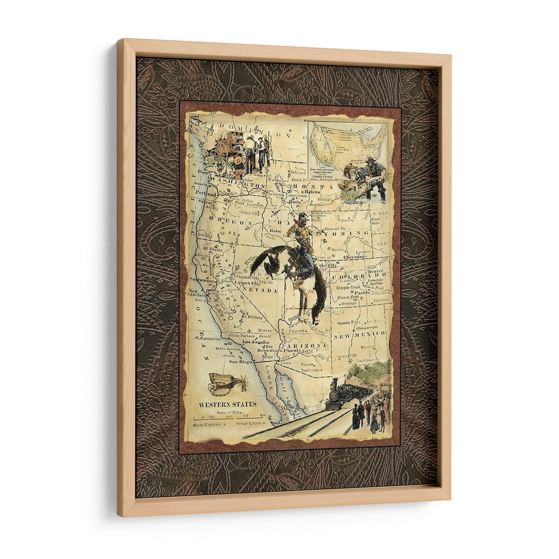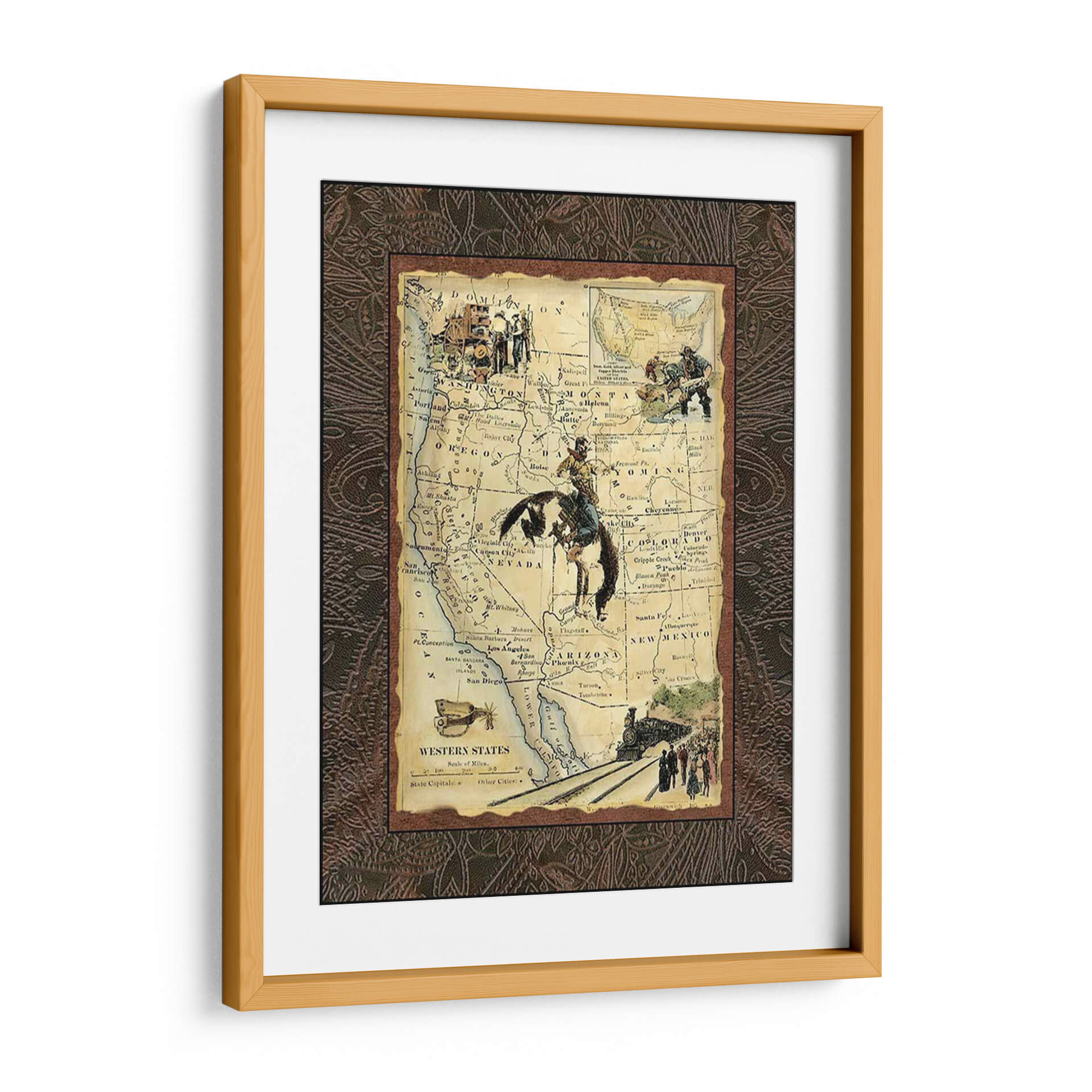 Sumérgete en la historia y la aventura del Viejo Oeste con este cautivador cuadro decorativo, "Mapa De Los Estados Occidentales". Esta obra de Vision Studio es una evocadora representación visual que combina un mapa detallado de los estados del oeste de Estados Unidos con escenas icónicas de la época. Observa la figura de un vaquero a caballo en el centro, junto a representaciones de pioneros, trenes de vapor y carretas, transportándote a una era de exploración y expansión. La paleta de colores tierra, ocres y marrones, junto con el estilo que recuerda a grabados antiguos, confiere a la pieza una atmósfera nostálgica y auténtica. Este cuadro decorativo no solo es una pieza de arte, sino una ventana al pasado, perfecta para añadir un toque de carácter y conversación a tu sala de estar, estudio u oficina. Su diseño intrincado y su temática histórica lo convierten en un punto focal ideal para aquellos que aprecian la historia estadounidense y el arte con narrativa. Ideal para espacios que buscan una decoración con personalidad y un aire rústico o vintage.