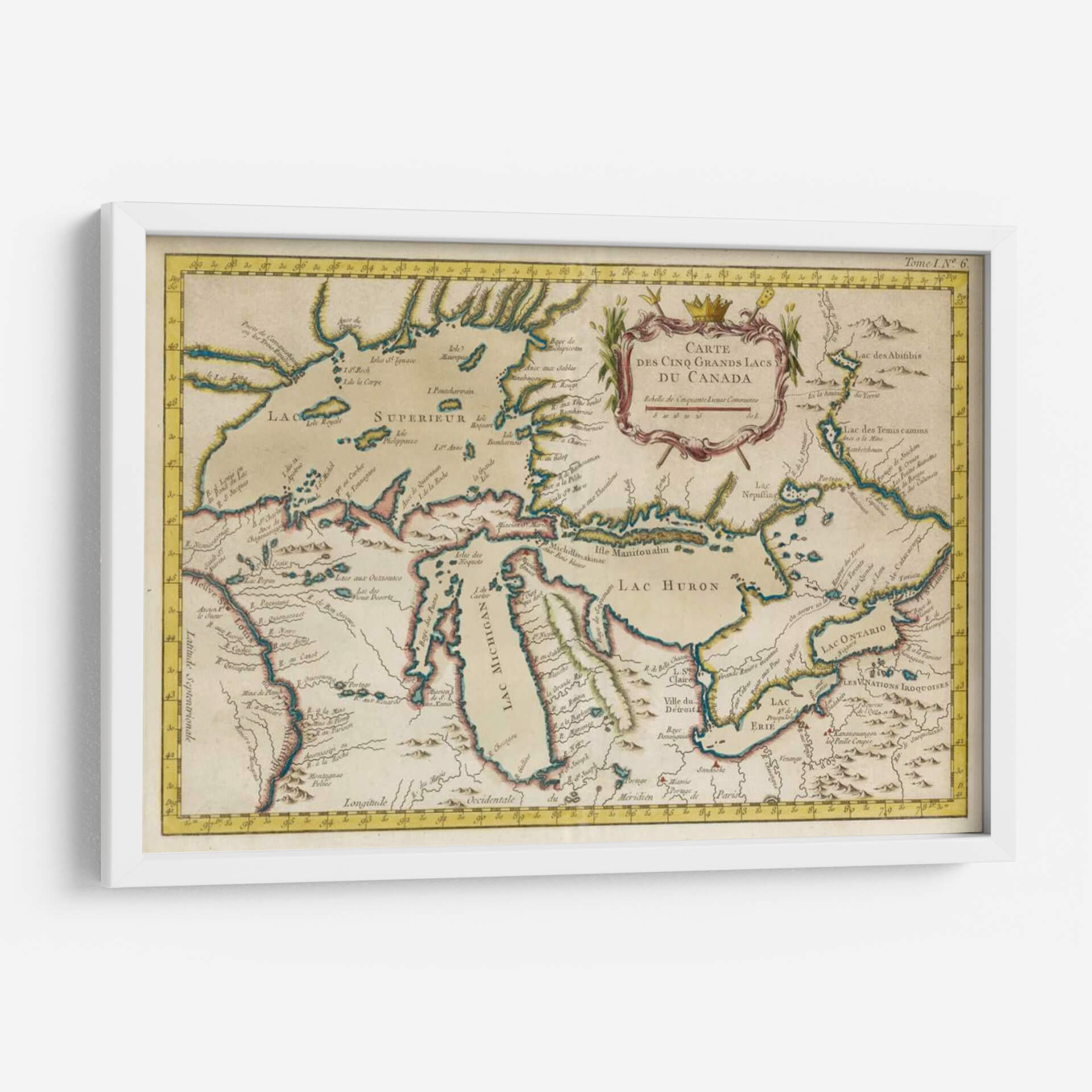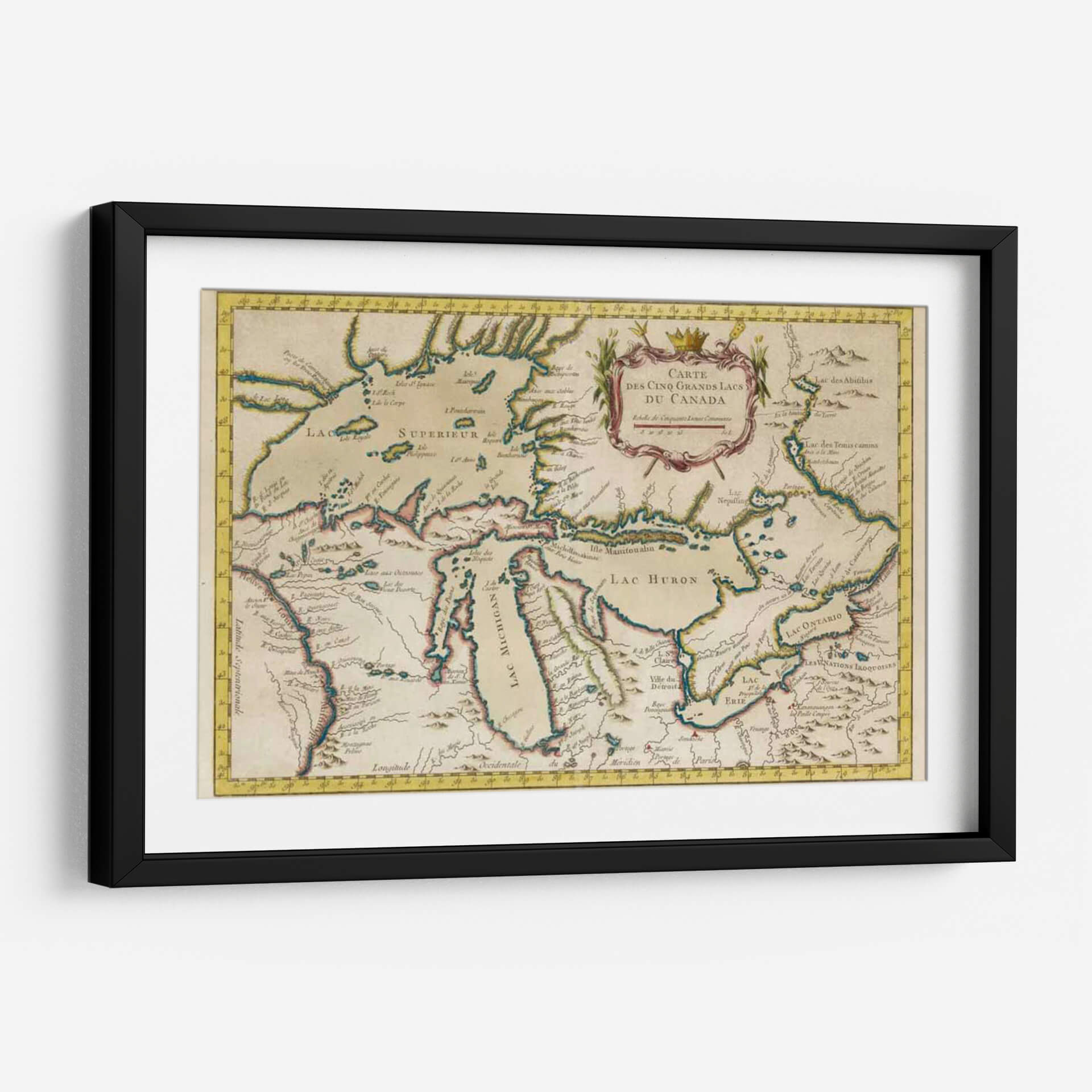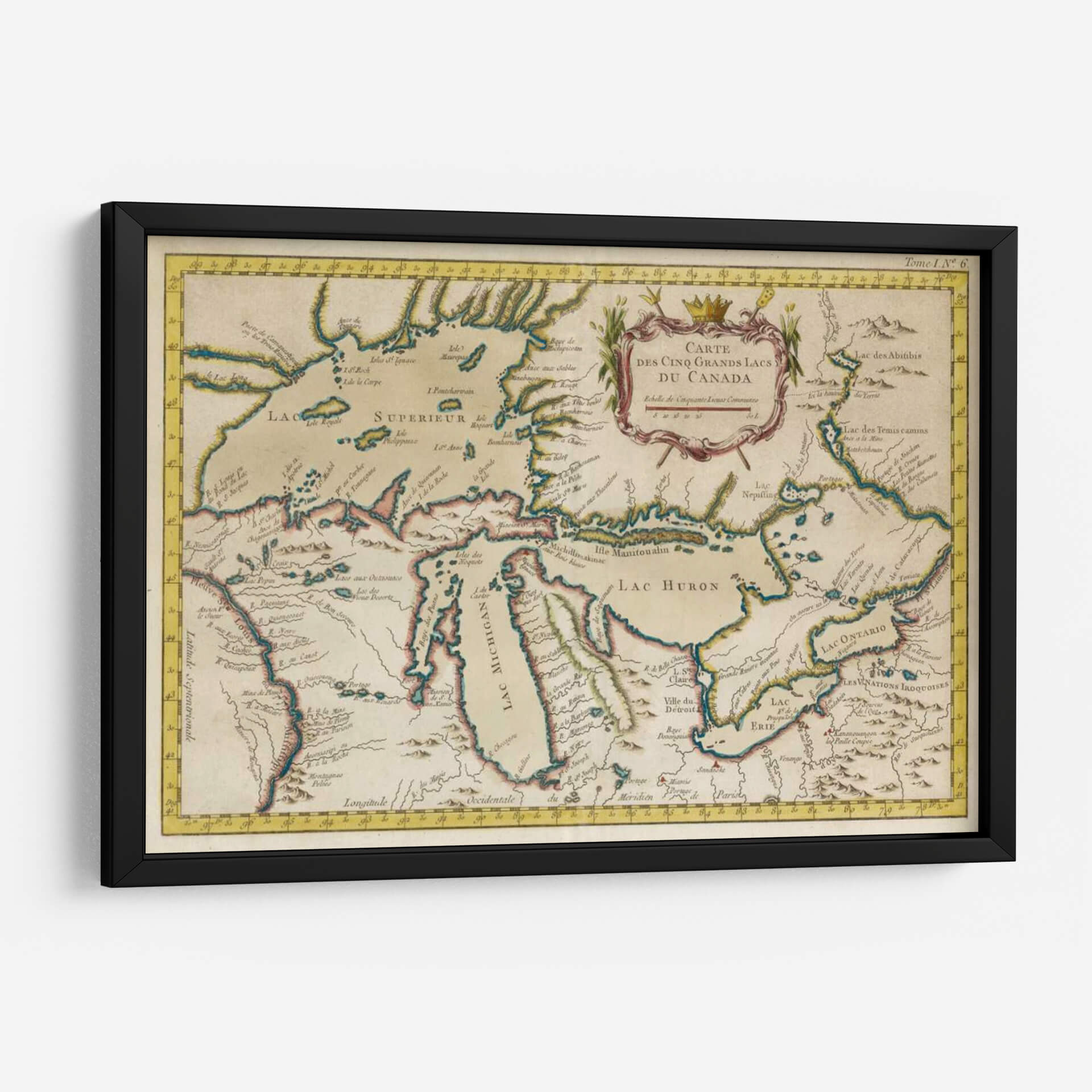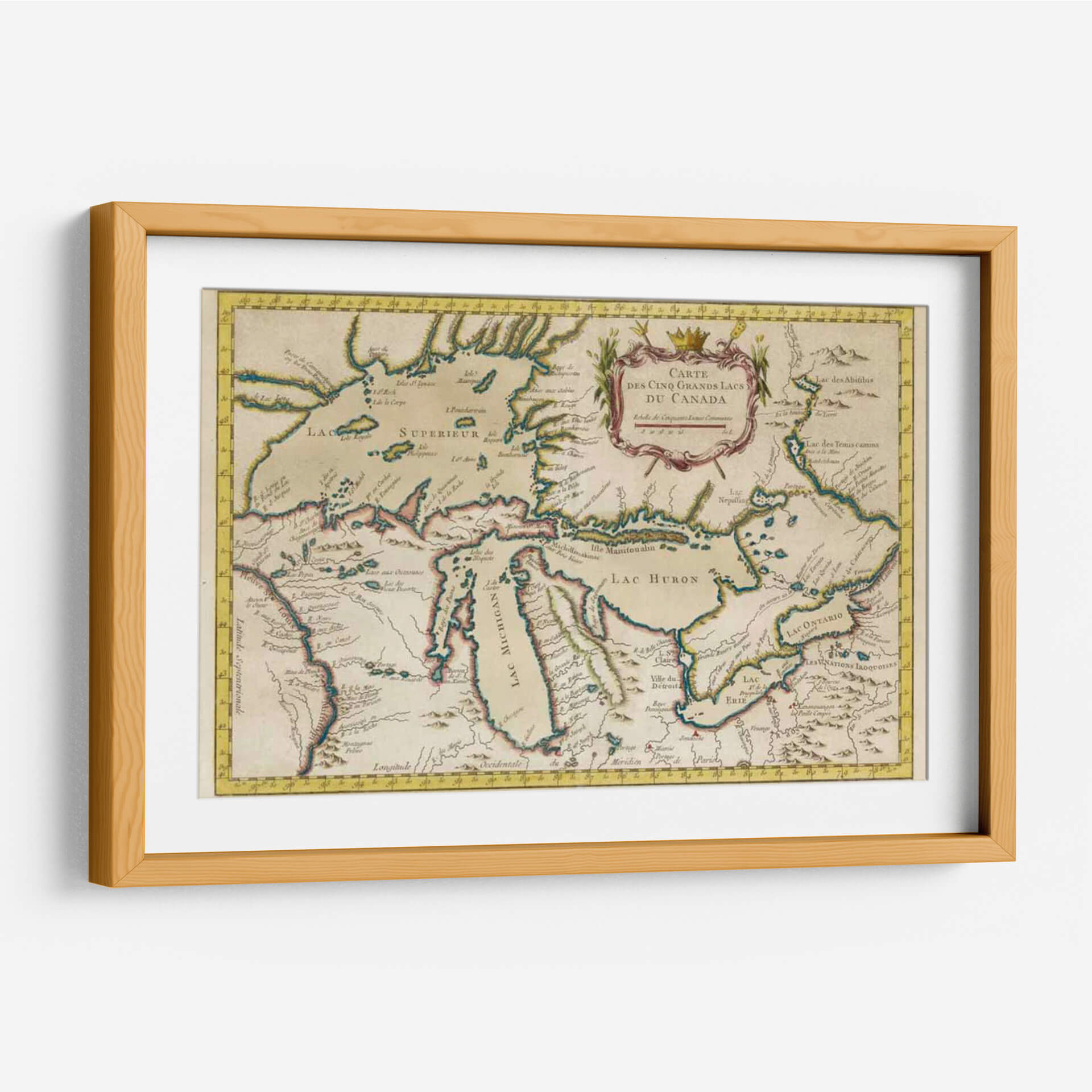 Sumérgete en la historia y la geografía con este exquisito cuadro decorativo del "Mapa De Los Grandes Lagos". Esta obra captura la majestuosidad de la región de los Grandes Lagos de Canadá con un nivel de detalle cartográfico fascinante. Los colores tenues y la estética de mapa antiguo confieren una sensación de nostalgia y exploración, evocando la época de los grandes descubrimientos. La composición, centrada en la detallada representación de los lagos Superior, Michigan, Hurón, Erie y Ontario, junto con las costas circundantes y las indicaciones de asentamientos y nombres geográficos, lo convierte en una pieza educativa y visualmente atractiva. Ideal para cualquier espacio que busque un toque de erudición y un punto de partida para conversaciones. Perfecto para estudios, oficinas, bibliotecas o salas de estar donde se aprecia la historia, la geografía o el arte con un aire clásico. Este mapa antiguo no es solo una decoración, sino una ventana a un pasado fascinante, añadiendo profundidad y carácter a tu ambiente.