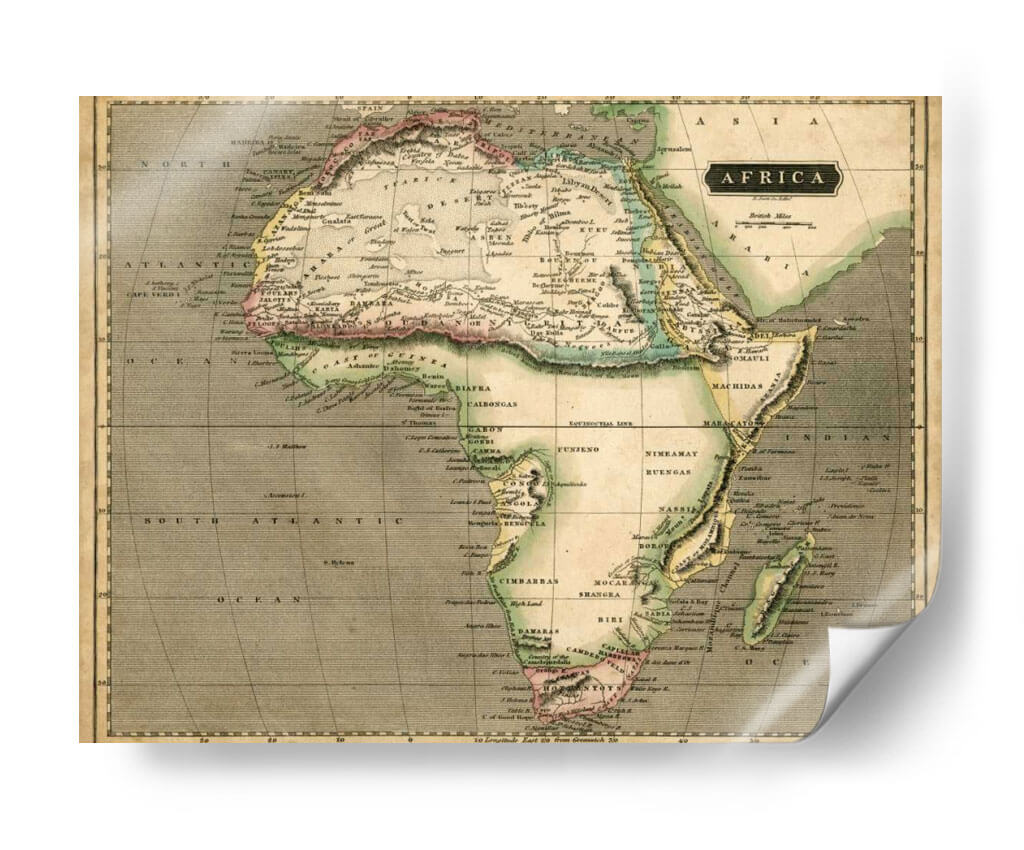 Embárquese en un viaje visual al corazón de África con este exquisito mapa de Thomson, una obra de arte que trasciende el tiempo y la decoración. Este detallado cuadro decorativo captura la esencia de un continente en una era de exploración, presentando una rica tapicería de nombres geográficos, fronteras históricas y detalles cartográficos. La paleta de colores, con sus suaves tonos tierra, ocres y toques de azul y verde, evoca una sensación de antigüedad y sabiduría, perfecta para añadir un toque de sofisticación intelectual a su hogar u oficina. La intrincada composición, típica de la cartografía clásica, invita a la contemplación y al descubrimiento, haciendo de esta pieza un punto focal educativo y estético. Ideal para amantes de la historia, la geografía o aquellos que buscan una decoración de pared única y con carácter, este mapa decorativo no solo embellece su espacio, sino que también estimula la conversación y la curiosidad. Añada un toque de aventura y conocimiento a sus paredes con esta impresionante representación cartográfica.