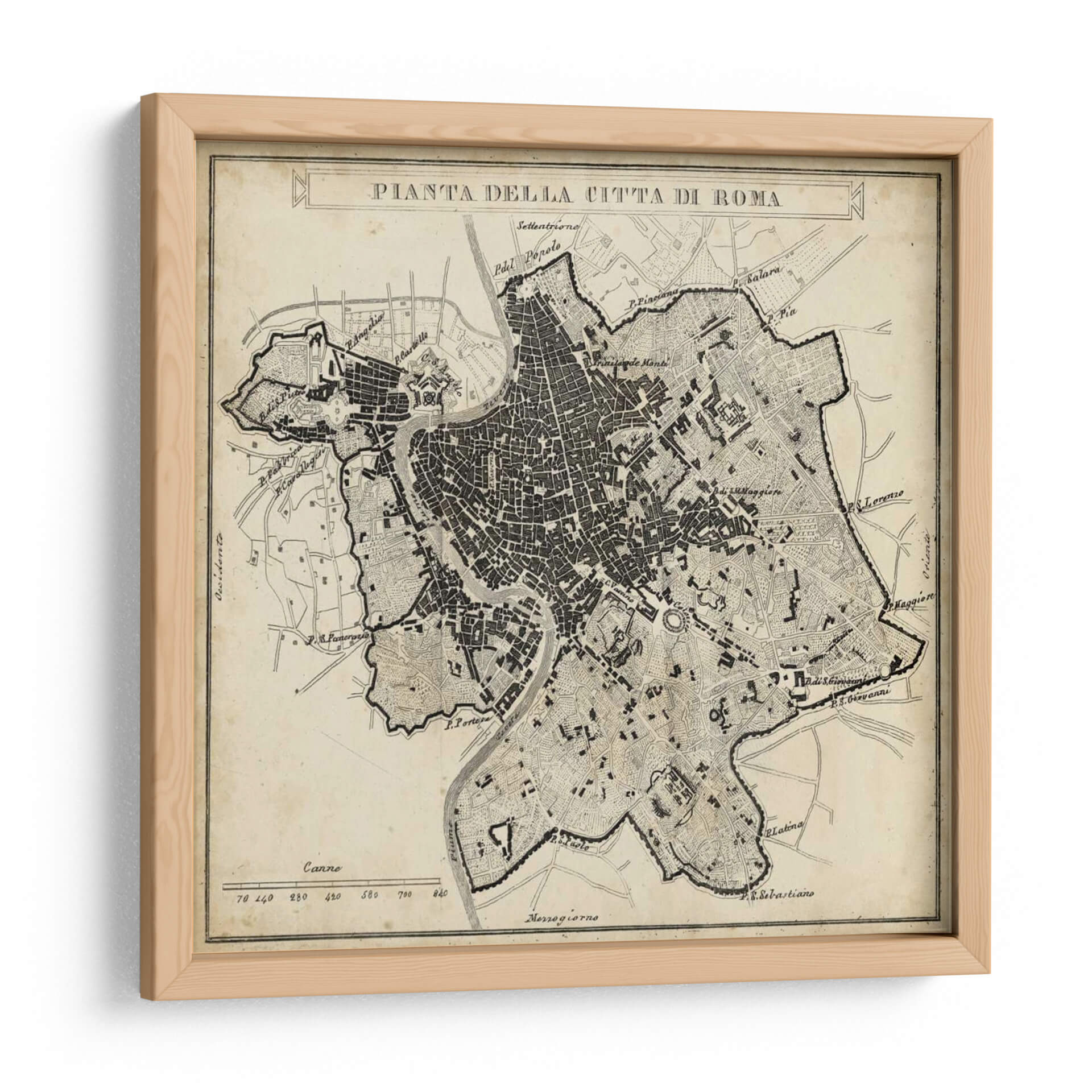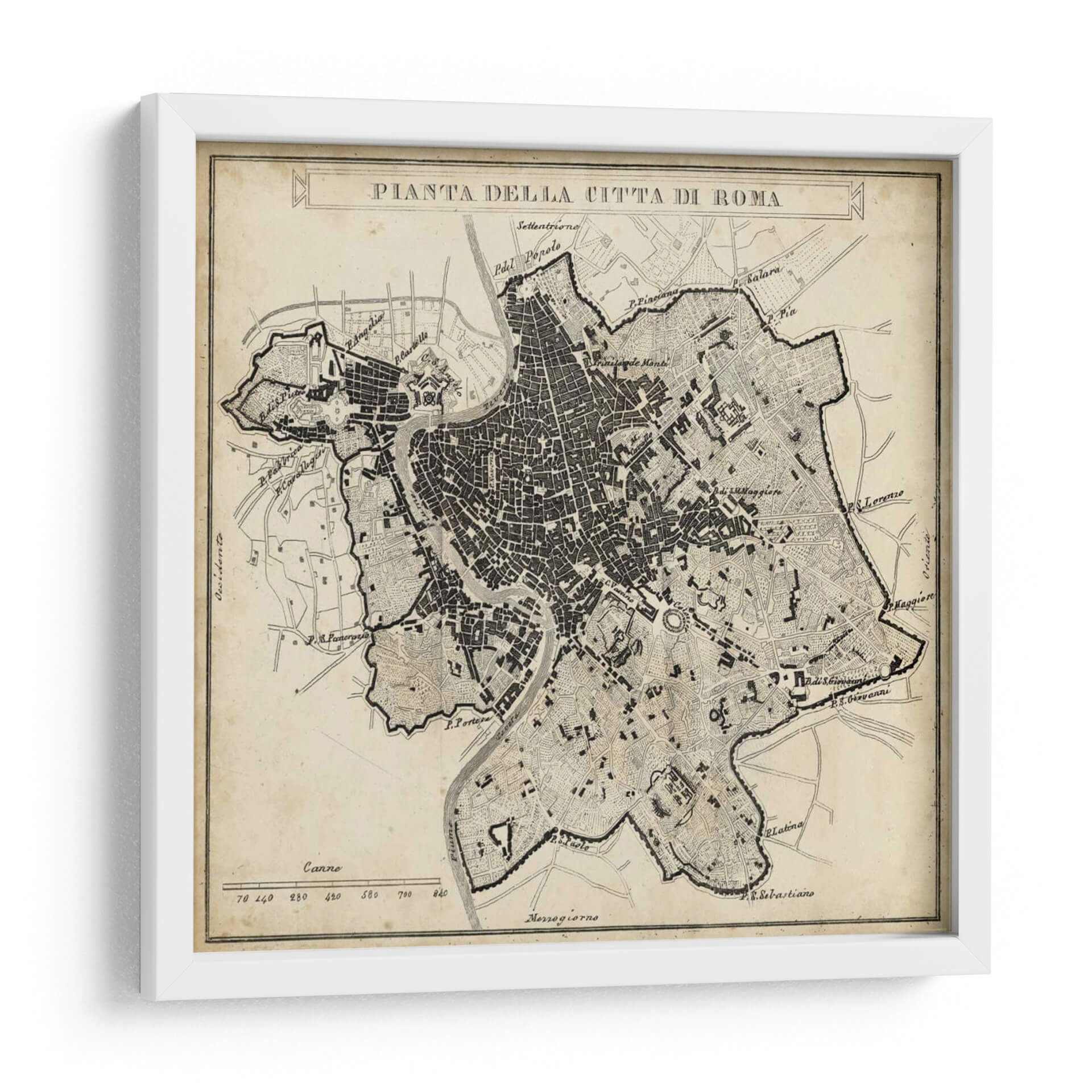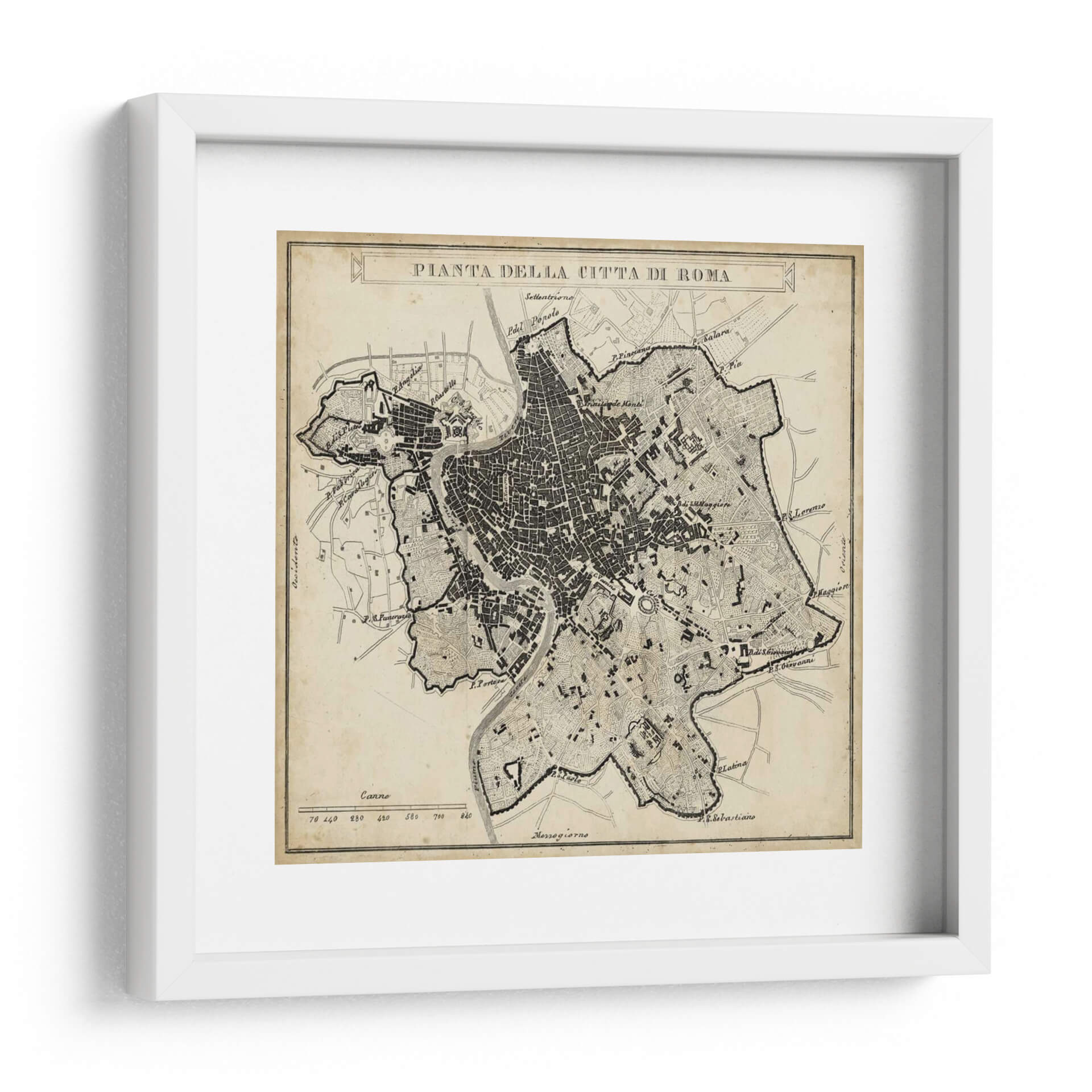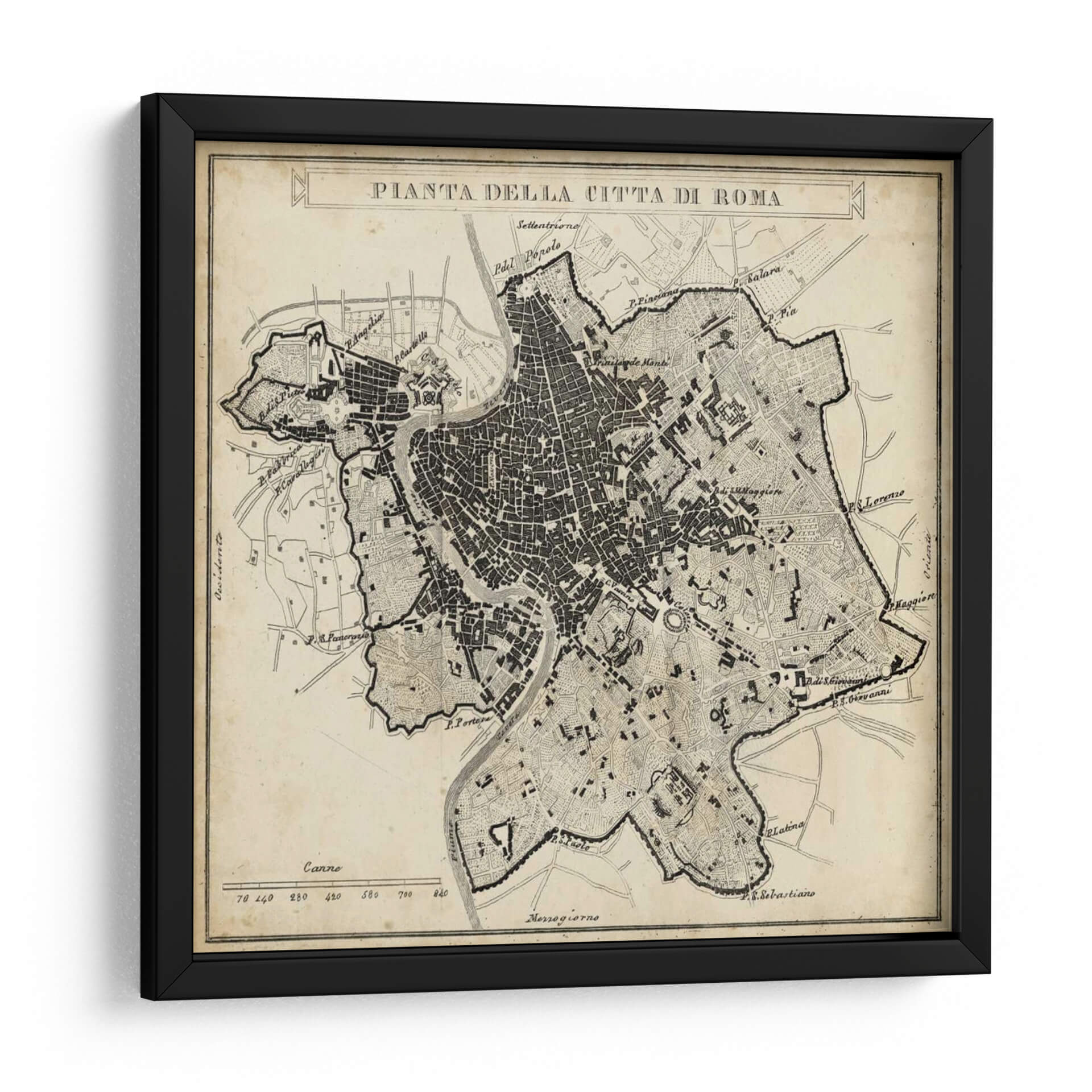 Adéntrate en la historia y la arquitectura de la Ciudad Eterna con este detallado cuadro decorativo de la "Pianta della Città di Roma". Esta pieza evoca la nostalgia y el encanto de un mapa antiguo, recreando la intrincada red de calles, plazas y monumentos que definen Roma. Su diseño, con una paleta de colores sepia y negro sobre un fondo que simula pergamino envejecido, aporta una sensación de autenticidad y calidez a cualquier espacio. La obra es ideal para amantes de la historia, la geografía, los viajes o para aquellos que buscan una decoración sofisticada y con carácter. Su estilo clásico y la riqueza de los detalles la convierten en un punto focal perfecto para salas de estar, estudios, bibliotecas u oficinas, añadiendo un toque de elegancia atemporal y despertando conversaciones sobre el legado cultural de Roma. Este mapa histórico no es solo una decoración, sino una ventana a uno de los legados urbanos más fascinantes del mundo, invitando a la contemplación y al descubrimiento en cada mirada. Su composición detallada y la calidad de su impresión aseguran que cada rincón de la ciudad cobre vida en tus paredes, ofreciendo una experiencia visual enriquecedora y única.