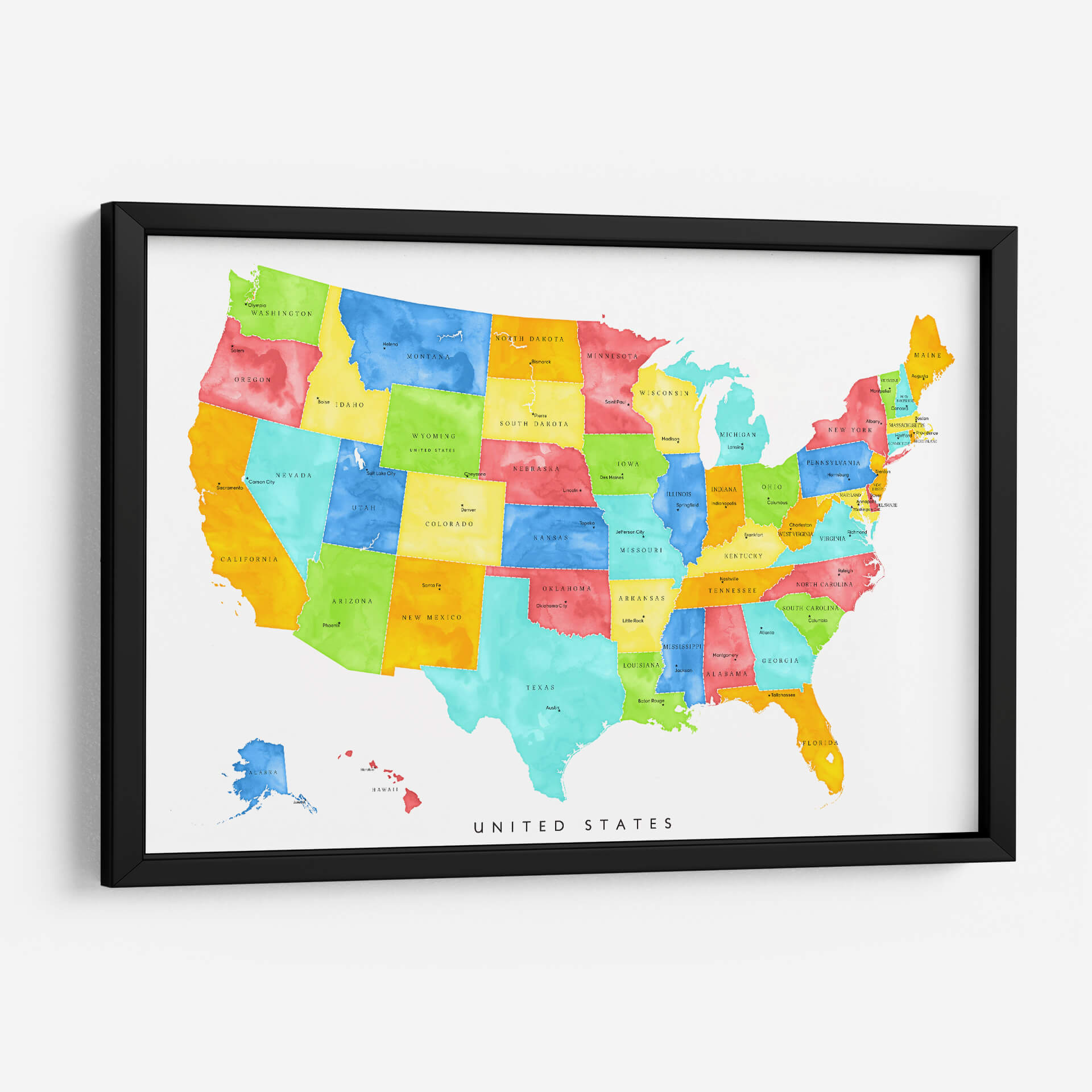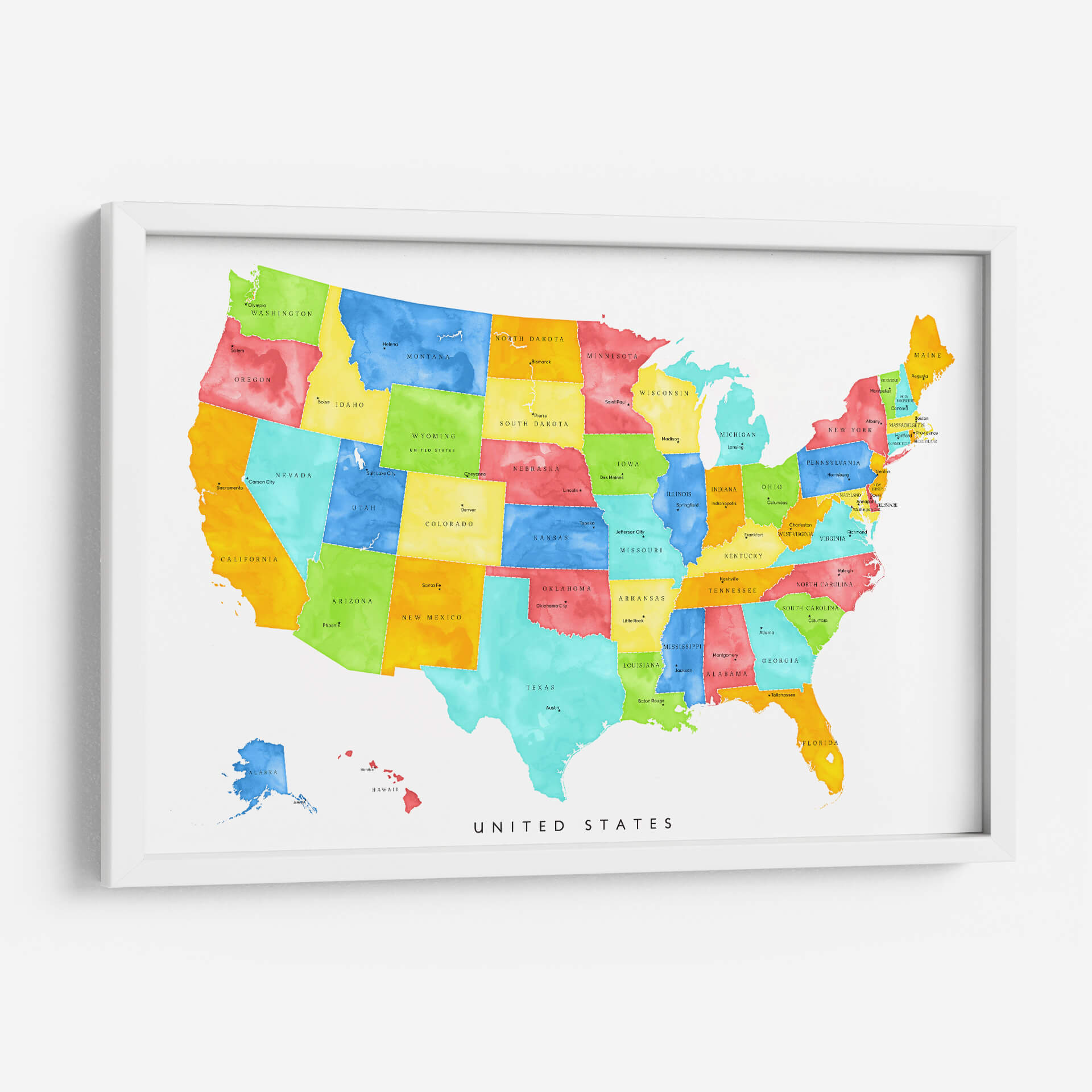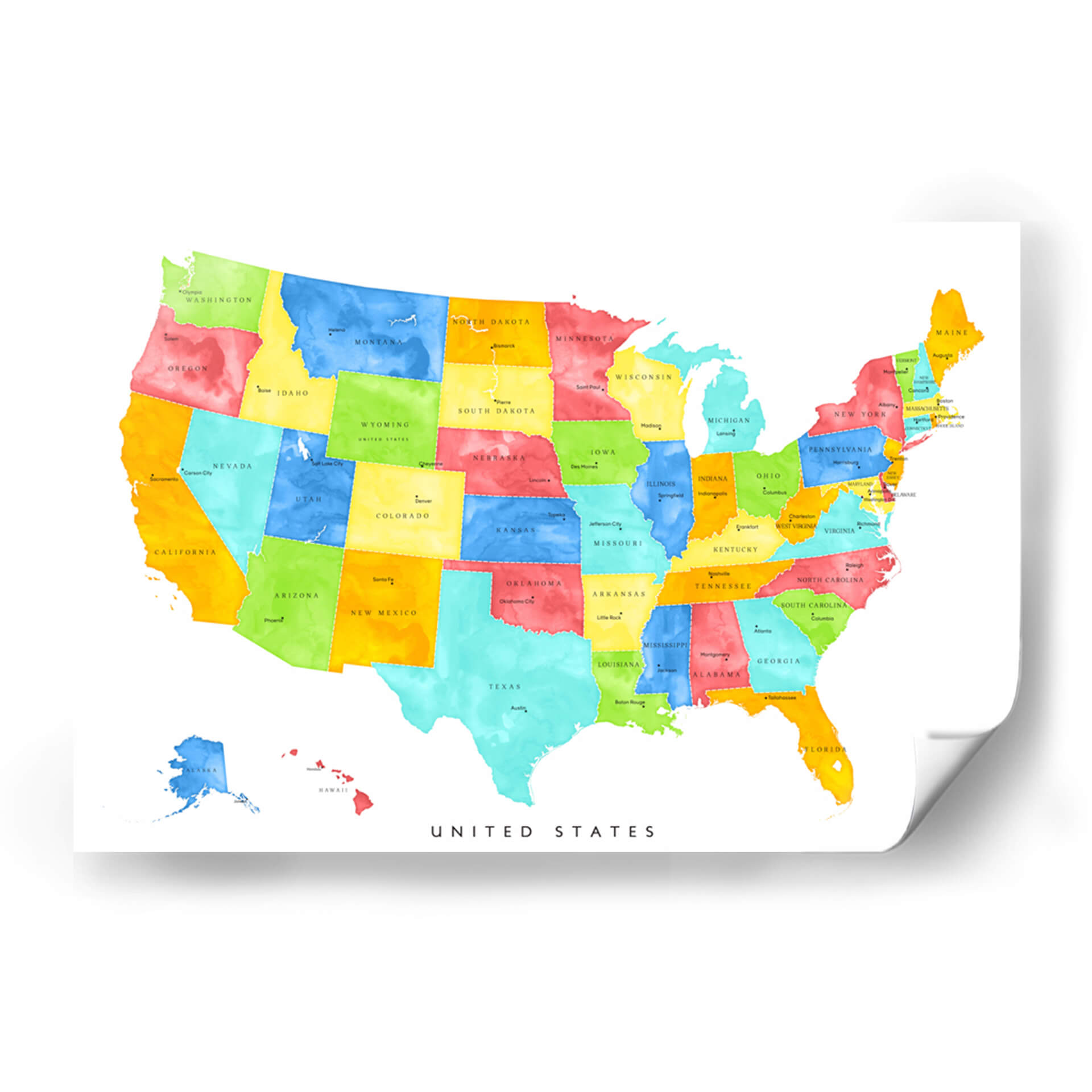 United States - Mapa colorido con estados y capitales estatales - Rosana Laiz Blursbyai