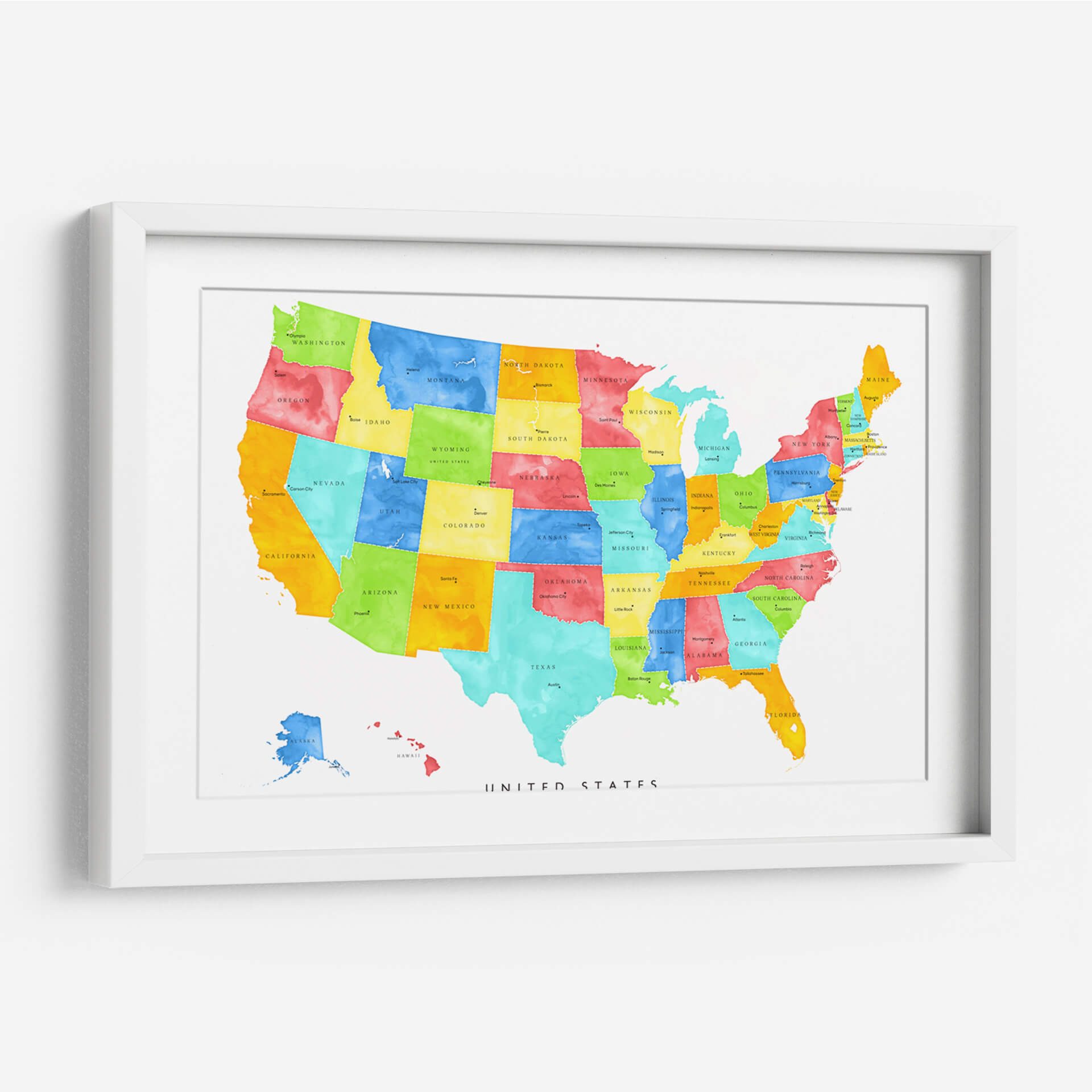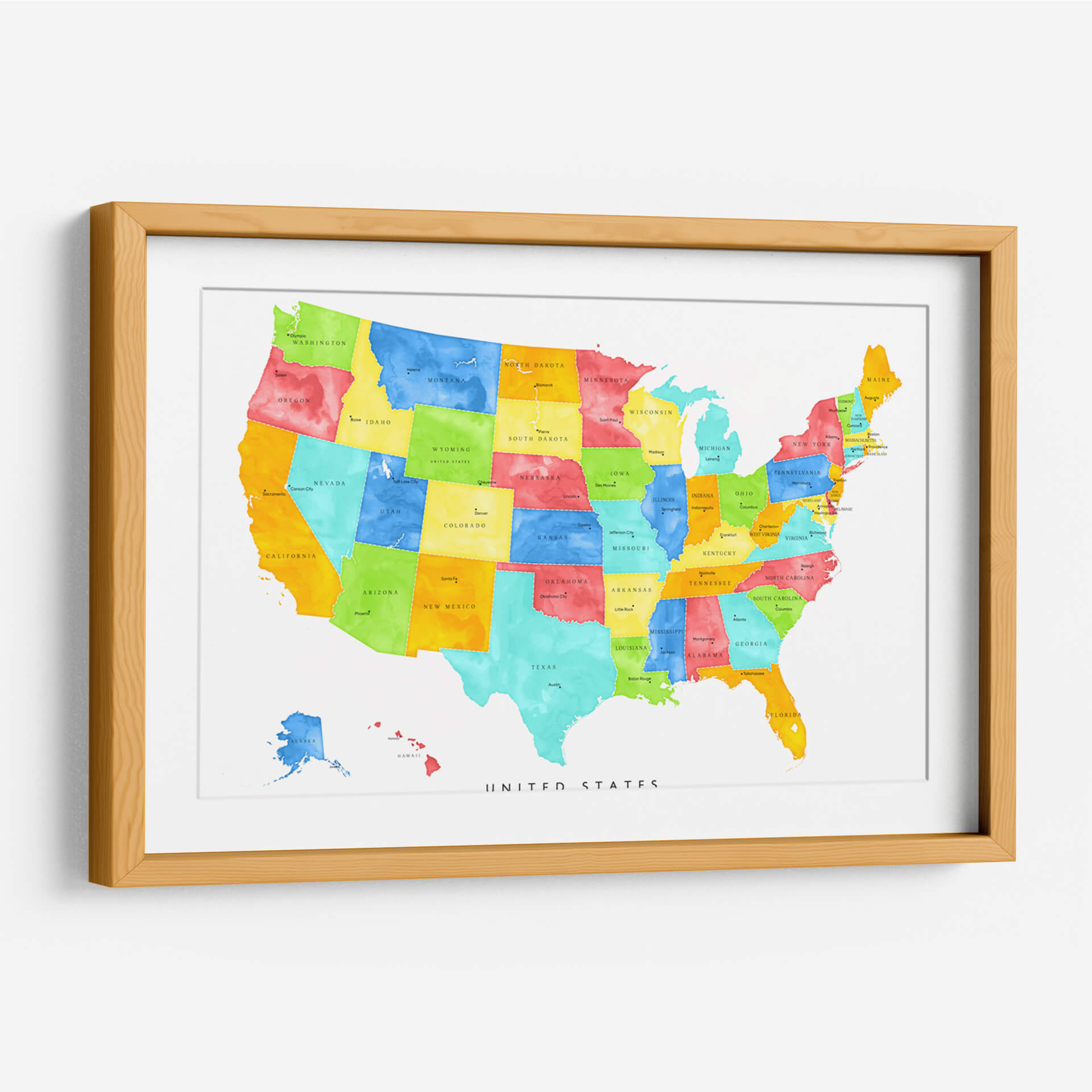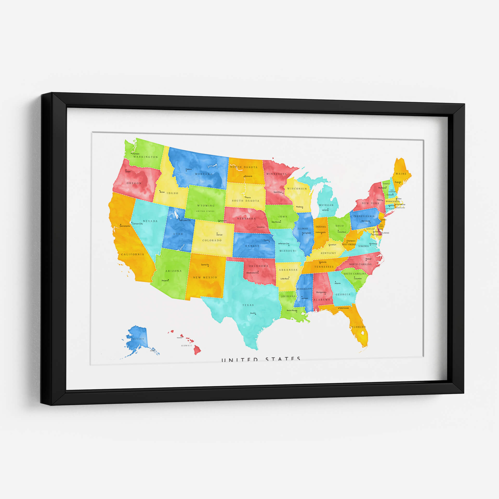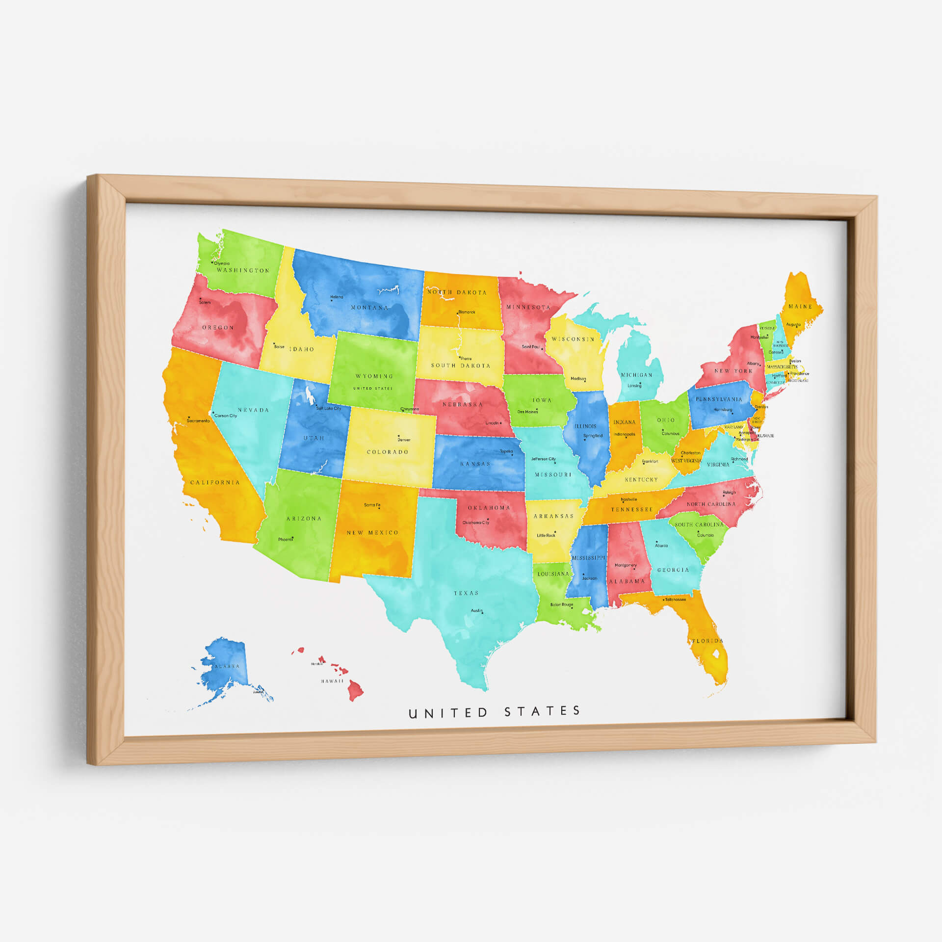 United States - Mapa colorido con estados y capitales estatales - Rosana Laiz Blursbyai