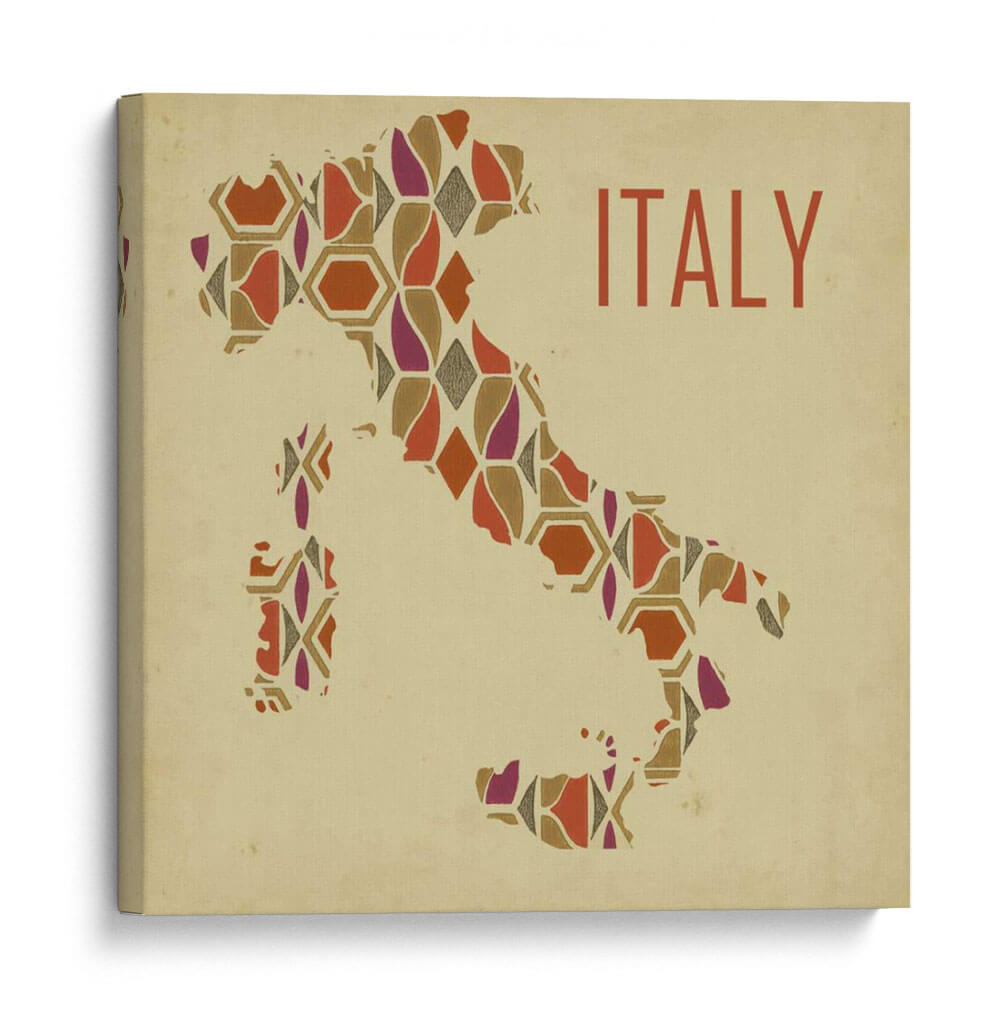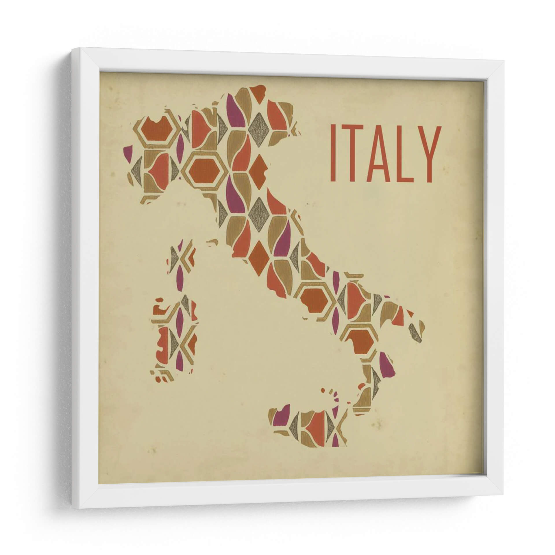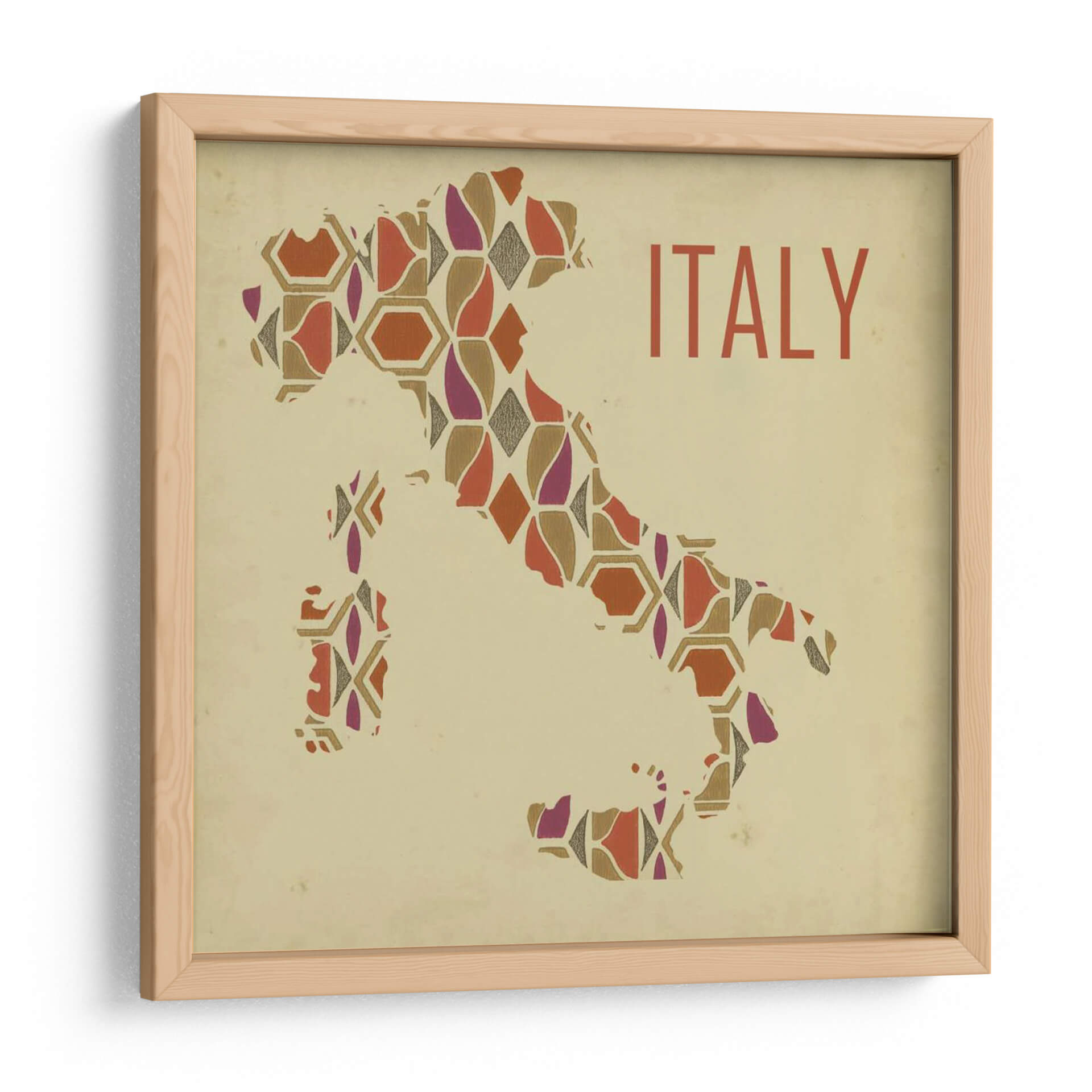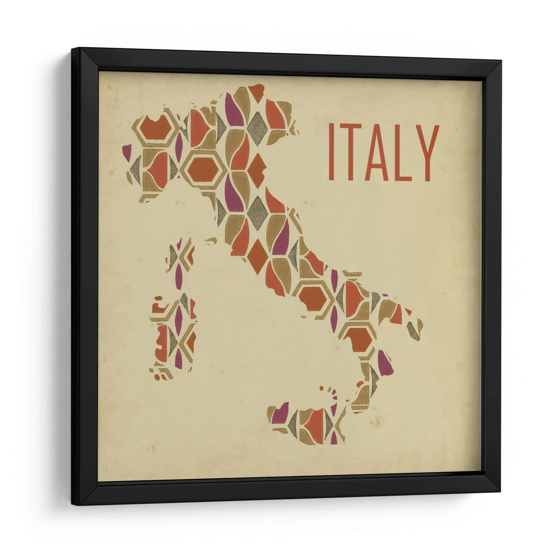 Sumérgete en la esencia de Italia con este cautivador cuadro decorativo, "Viajar En El Extranjero I", creado por Jarman Fagalde. La obra presenta una estilizada silueta del mapa de Italia, intrincadamente decorada con un patrón geométrico de hexágonos y rombos en tonos tierra, terracota, burdeos y ocre. La paleta de colores cálidos y terrosos evoca la rica historia y la vibrante cultura de Italia, creando una atmósfera acogedora y sofisticada. El fondo neutro, con un sutil toque vintage, permite que la forma detallada de Italia y su patrón cautivador resalten, convirtiéndose en un punto focal inmediato en cualquier espacio. Este diseño abstracto y geométrico, que fusiona la geografía con el arte contemporáneo, es ideal para aquellos que sueñan con explorar la "bota" o que guardan recuerdos entrañables de sus viajes. Un cuadro decorativo perfecto para añadir un toque de encanto italiano a tu sala de estar, comedor, oficina o incluso a un dormitorio con temática de viajes. Su diseño único y artístico lo convierte en una pieza de conversación, evocando la belleza, la historia y el espíritu aventurero de Italia, un tributo visual a uno de los destinos más amados del mundo.