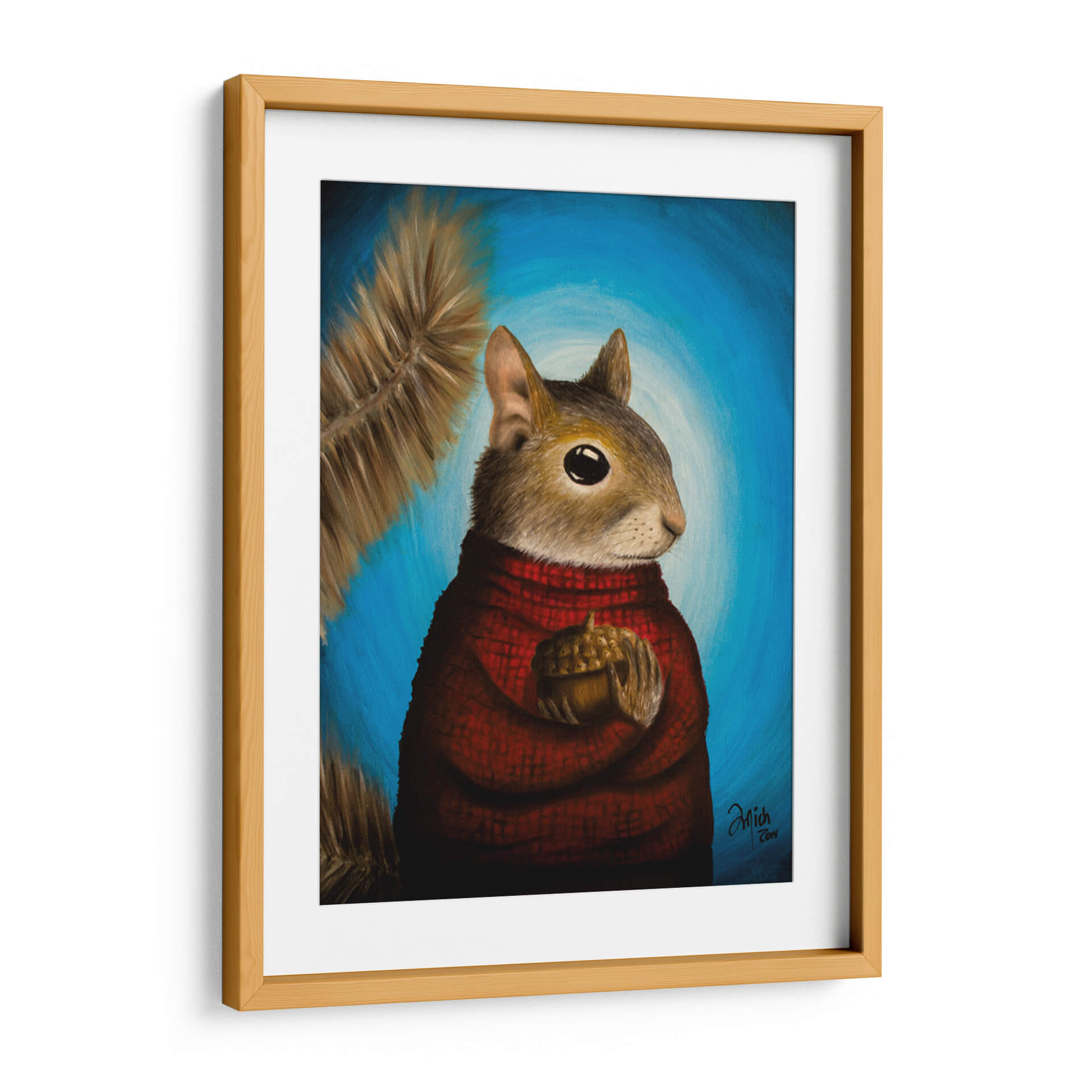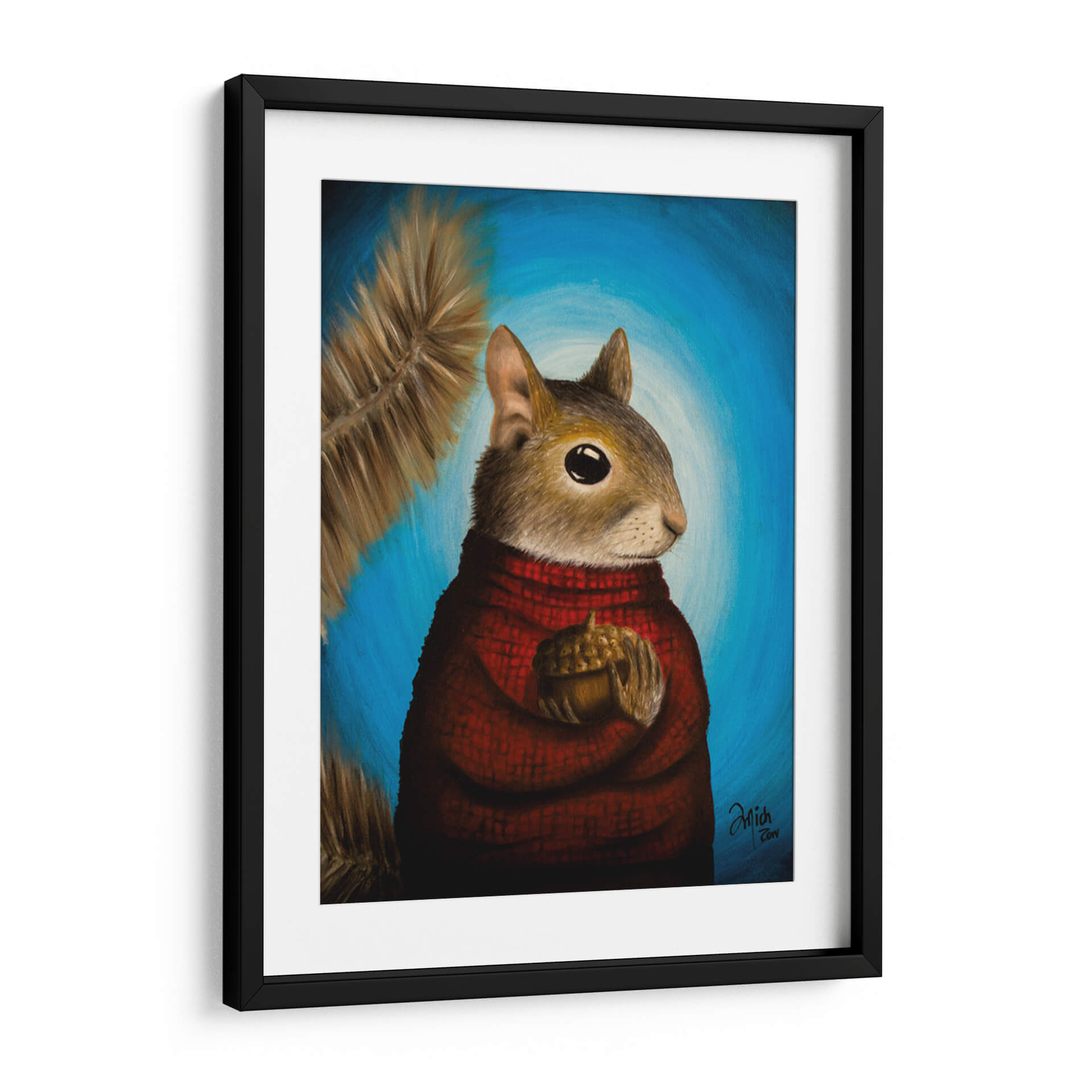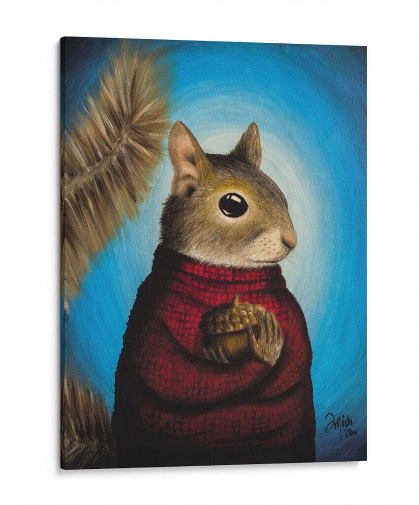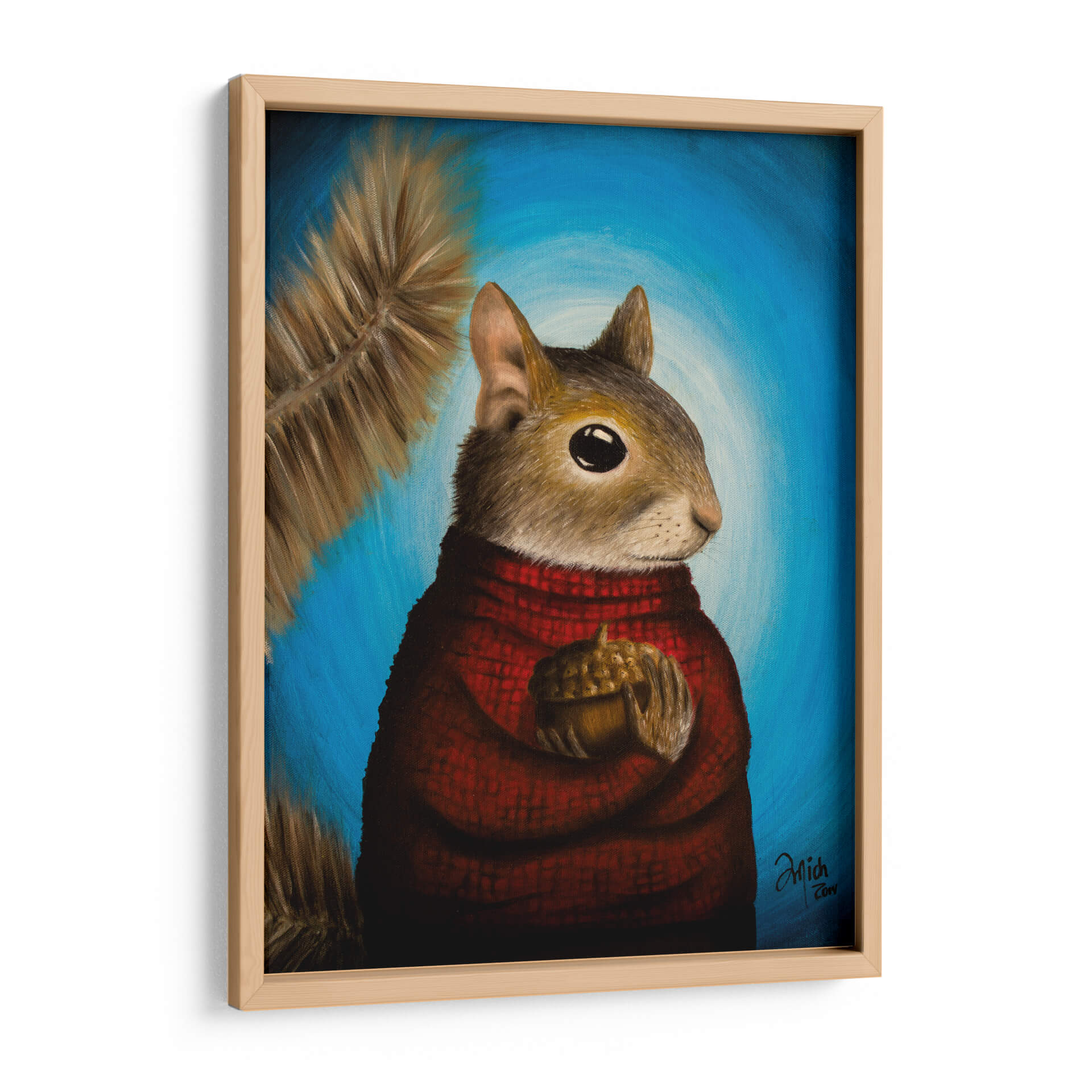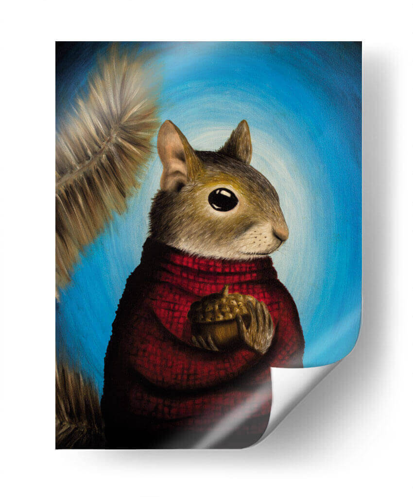 Sumérgete en la ternura y el encanto rústico con este cautivador cuadro decorativo de una ardilla. La obra, titulada "ARDILLA" por la artista Marce Islas, presenta a esta adorable criatura en un primer plano, vestida con un suéter de punto en un vibrante tono rojo que contrasta maravillosamente con el fondo azul intenso y texturizado. La ardilla sostiene con delicadeza una bellota, evocando sensaciones de hogar, preparación y la belleza de los pequeños momentos. El estilo realista pero con un toque artístico distintivo, junto con la paleta de colores cálidos y fríos, crea una atmósfera acogedora y llena de vida. Este cuadro es ideal para añadir un toque de naturaleza y dulzura a cualquier espacio, desde una sala de estar moderna hasta una acogedora habitación infantil o un estudio. Su composición detallada y la expresividad de la ardilla la convierten en una pieza que invita a la contemplación y al disfrute. Añade esta obra maestra a tu colección de arte de pared y transforma tu hogar en un refugio de estilo y calidez.