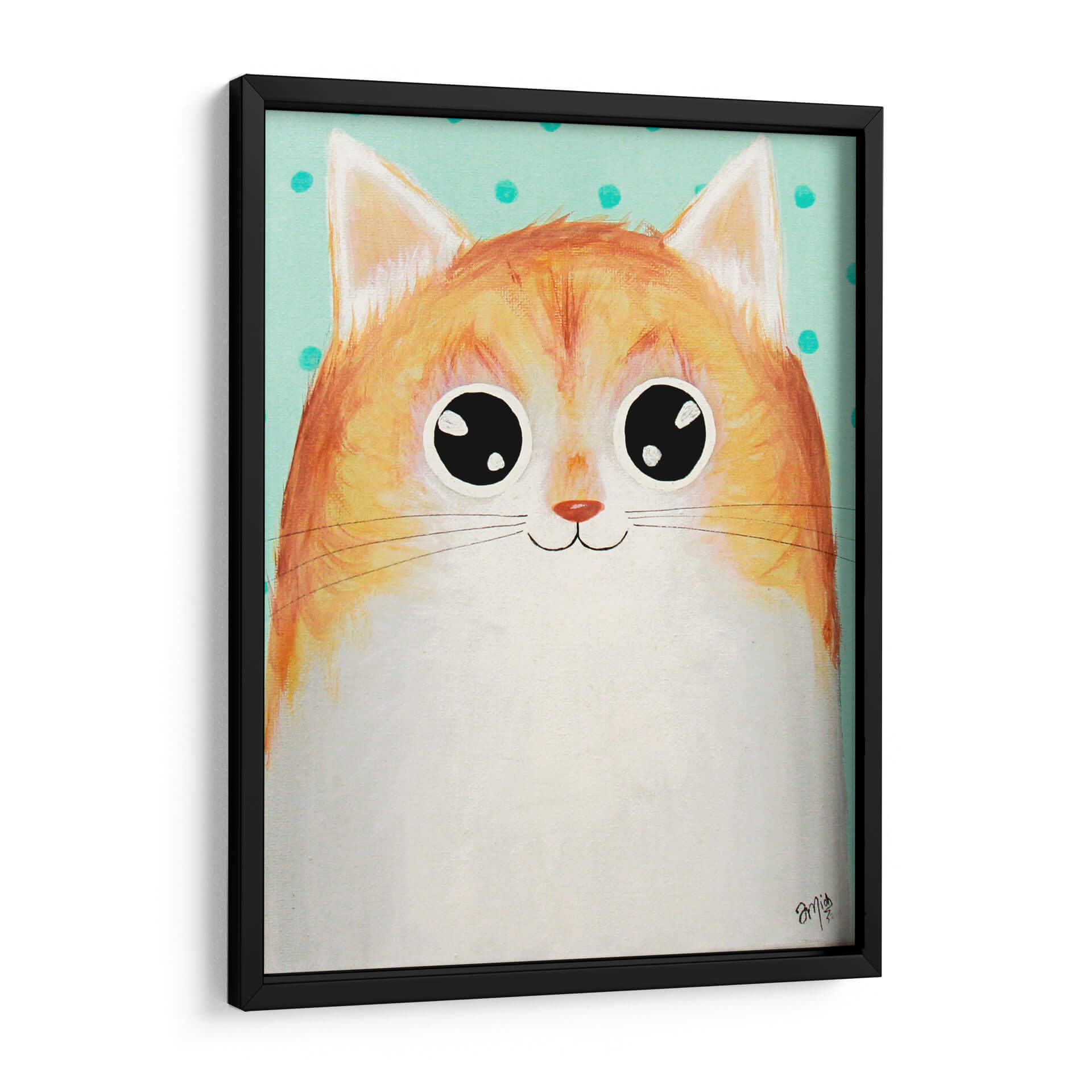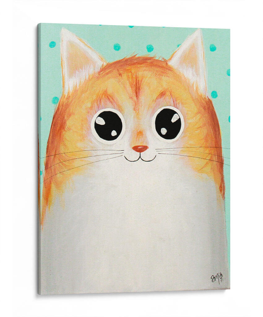Déjate cautivar por "MEOW", una encantadora obra de arte de Marce Islas que captura la dulzura y la inocencia de un felino. Esta pieza presenta un gato con unos expresivos ojos grandes y redondos, un hocico delicado y un pelaje anaranjado y blanco que irradia calidez. El fondo, de un suave tono turquesa salpicado de pequeños puntos del mismo color, añade un toque juguetón y moderno al conjunto. El estilo de la ilustración es tierno y contemporáneo, con pinceladas que sugieren movimiento y textura en el pelaje del gato, creando una sensación de cercanía y afecto. "MEOW" evoca sentimientos de alegría, ternura y compañía, convirtiéndose en el acento perfecto para cualquier espacio que busque un toque de dulzura y personalidad. Ideal para decorar habitaciones infantiles, salas de estar acogedoras u oficinas que necesiten un toque de vitalidad y encanto. Esta obra es un recordatorio visual de la simple felicidad que aportan nuestras mascotas, aportando una atmósfera de serenidad y cariño a tu hogar.