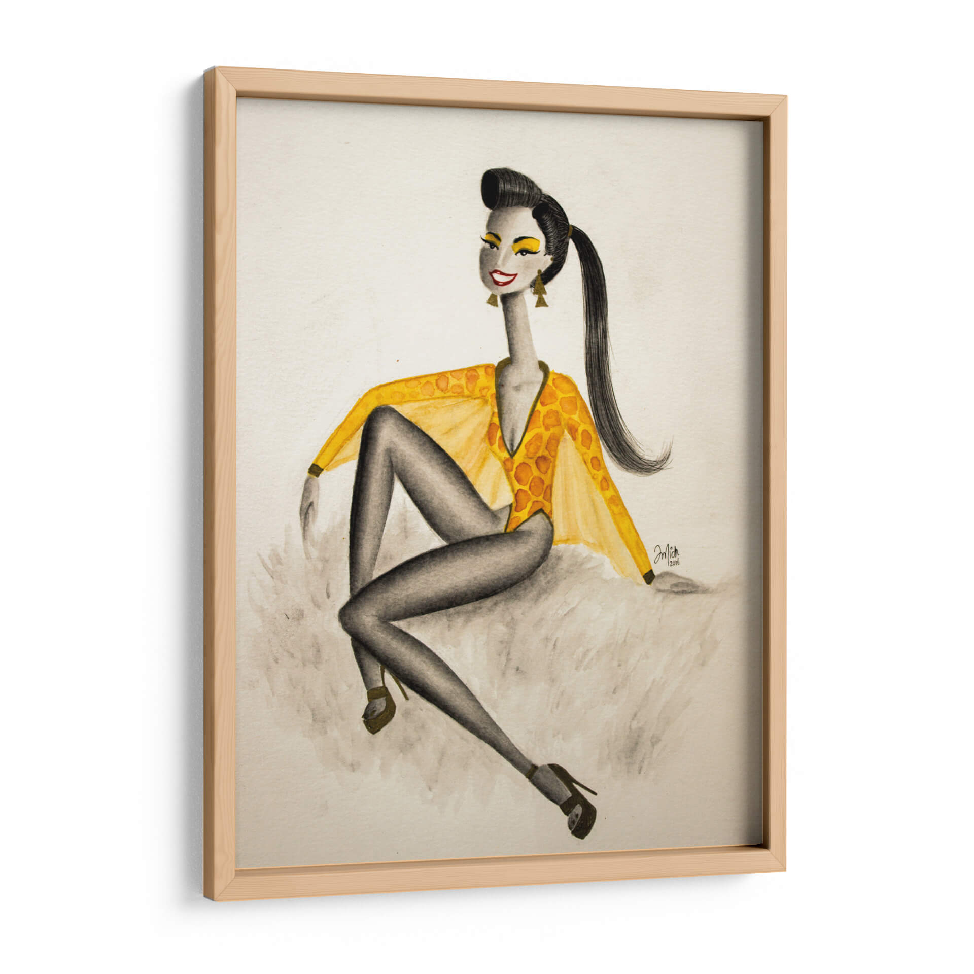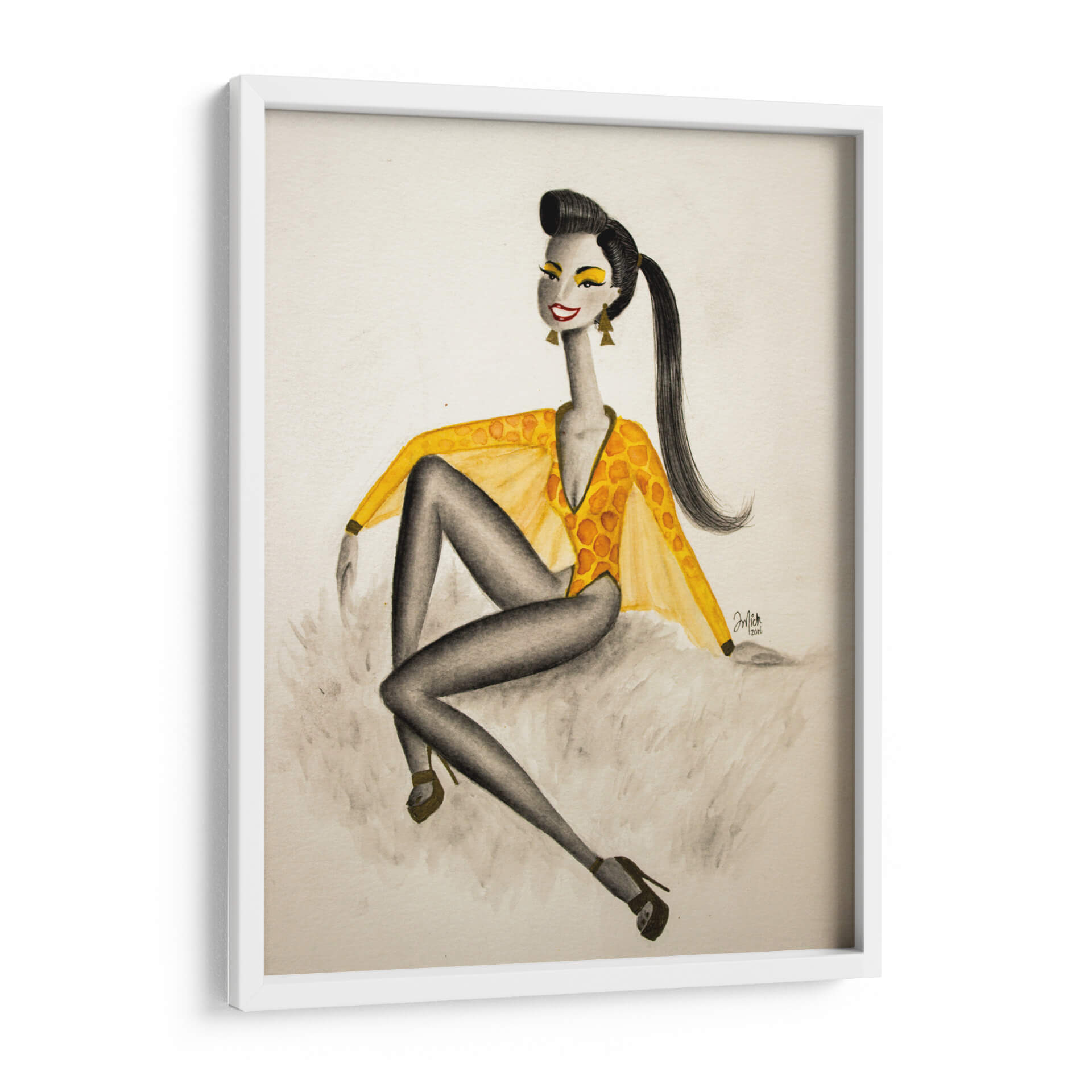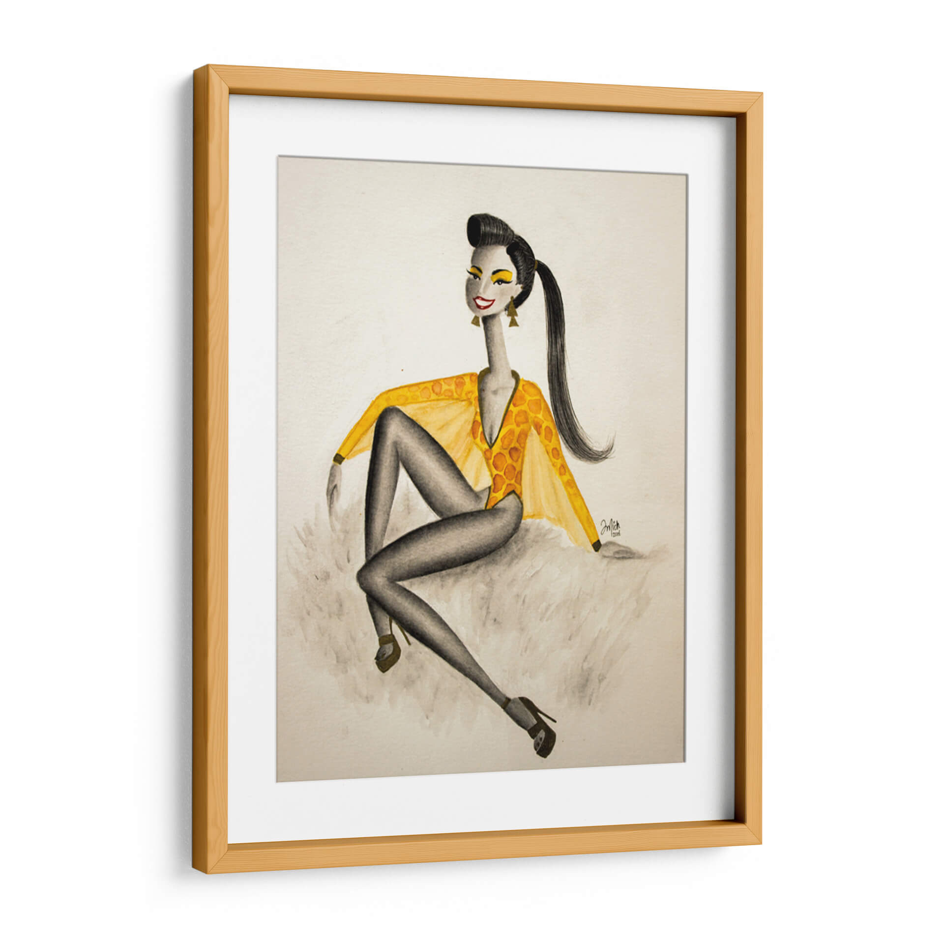 Descubre la cautivadora obra "POSE" de Marce Islas, una pieza que irradia estilo y elegancia. Esta ilustración de moda contemporánea presenta a una figura femenina estilizada con una pose dinámica, ataviada con un vibrante vestido amarillo con un patrón audaz. La paleta de colores se centra en contrastes llamativos, con el amarillo brillante del atuendo de la figura en marcado contraste con sus medias oscuras y el fondo neutro, creando un efecto visual potente. El estilo artístico combina trazos de lápiz con toques de color, evocando la atmósfera de las revistas de moda clásicas y el glamour de la alta costura. La expresión segura de la modelo y su postura sugerente invitan a la contemplación, transmitiendo una sensación de confianza y sofisticación. Este cuadro decorativo es perfecto para añadir un toque de personalidad y un acento de color a cualquier espacio moderno, ya sea una sala de estar, un dormitorio o un estudio de moda. Su diseño único y su carácter audaz la convierten en una elección excepcional para aquellos que buscan arte que hable por sí mismo y añada un toque de distinción a su decoración.