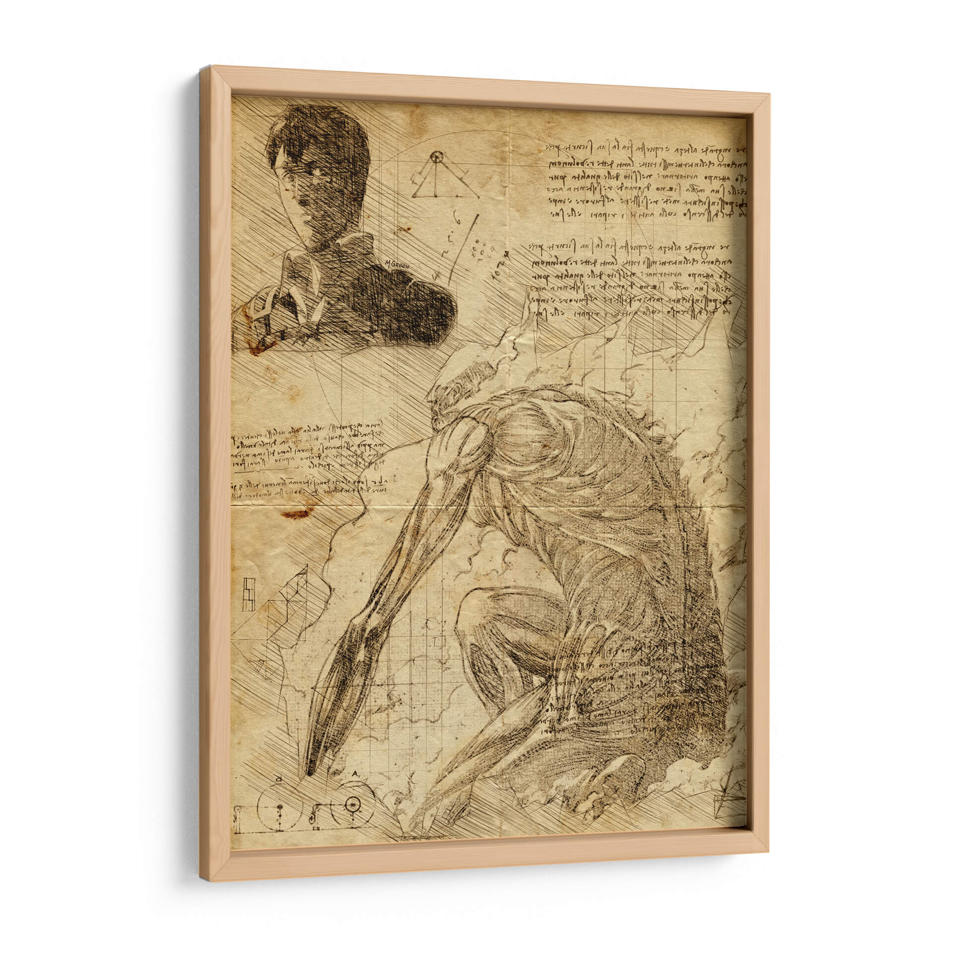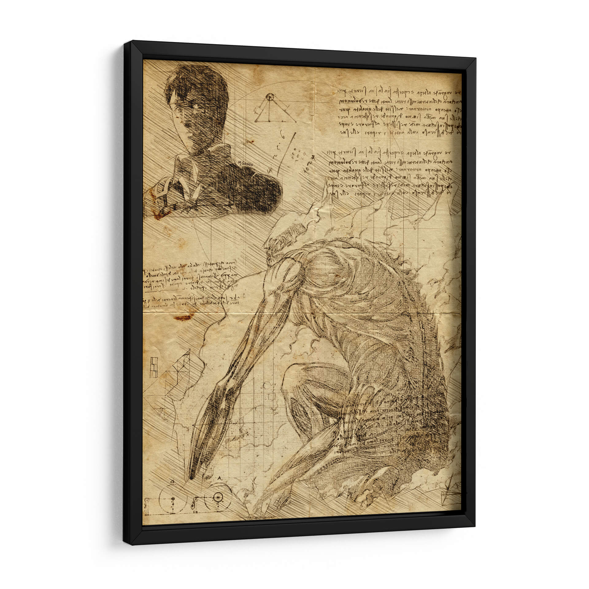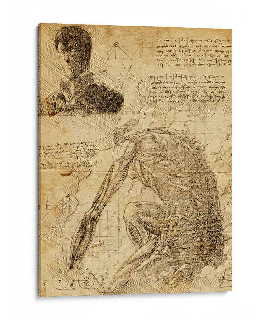 Sumérgete en el mundo de la anatomía y la fantasía con este cautivador cuadro decorativo "Descripción Titán Colosal - DaVinci Style" de Marco Green. Esta obra maestra evoca la fascinación por los estudios renacentistas, fusionando la precisión anatómica con una figura imponente que evoca fuerza y misterio. La detallada técnica de boceto, reminiscente de los cuadernos de Leonardo da Vinci, se manifiesta en cada trazo, creando una textura rica y una sensación de profundidad. La paleta de colores sepia y tonos tierra aporta una calidez atemporal y un aire de antigüedad, haciendo de esta pieza un punto focal intrigante para cualquier espacio. Ideal para estudios, oficinas o salas de estar con un gusto por lo histórico y lo dramático, este cuadro decorativo añade un toque de erudición y poder visual. Descubre la intersección entre la ciencia y el arte, y deja que la majestuosidad del "Titán Colosal" inspire tu entorno. Un testimonio de la habilidad artística y la exploración humana, esta obra es perfecta para quienes buscan una decoración de pared que sea tanto intelectualmente estimulante como estéticamente impactante.