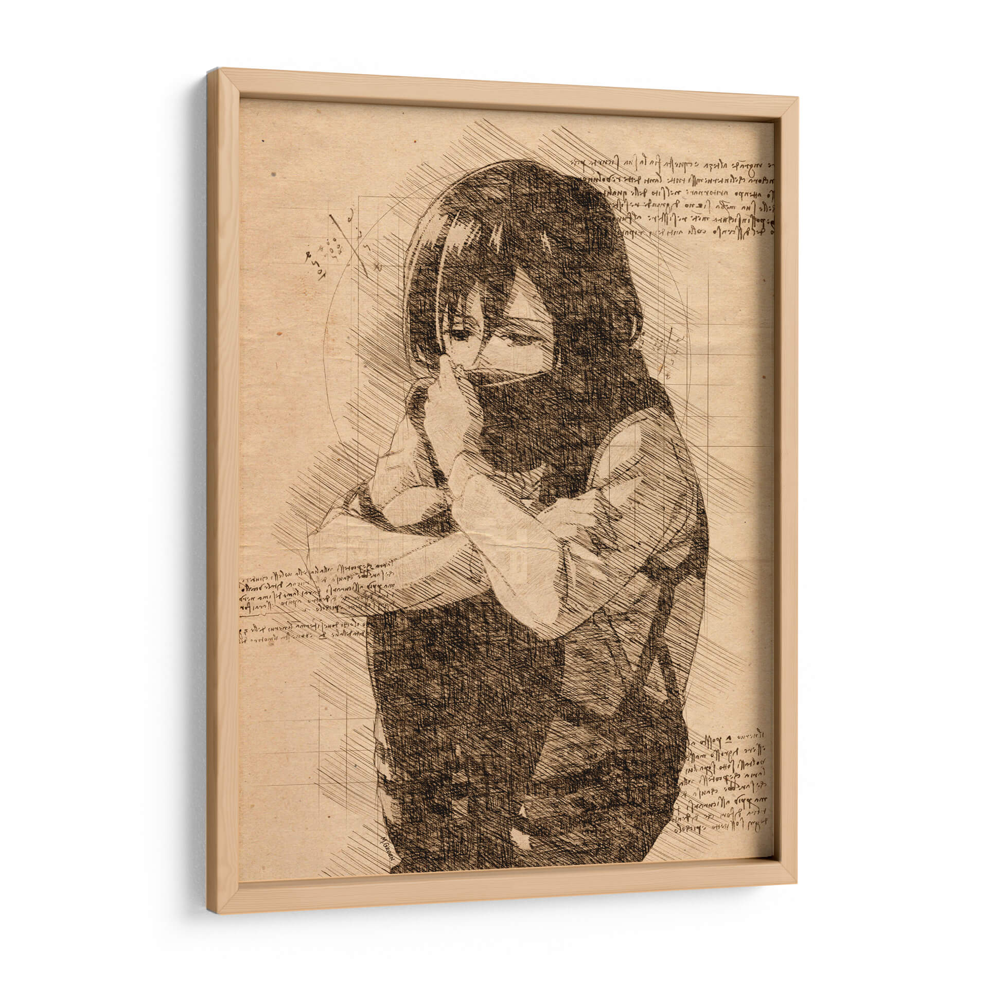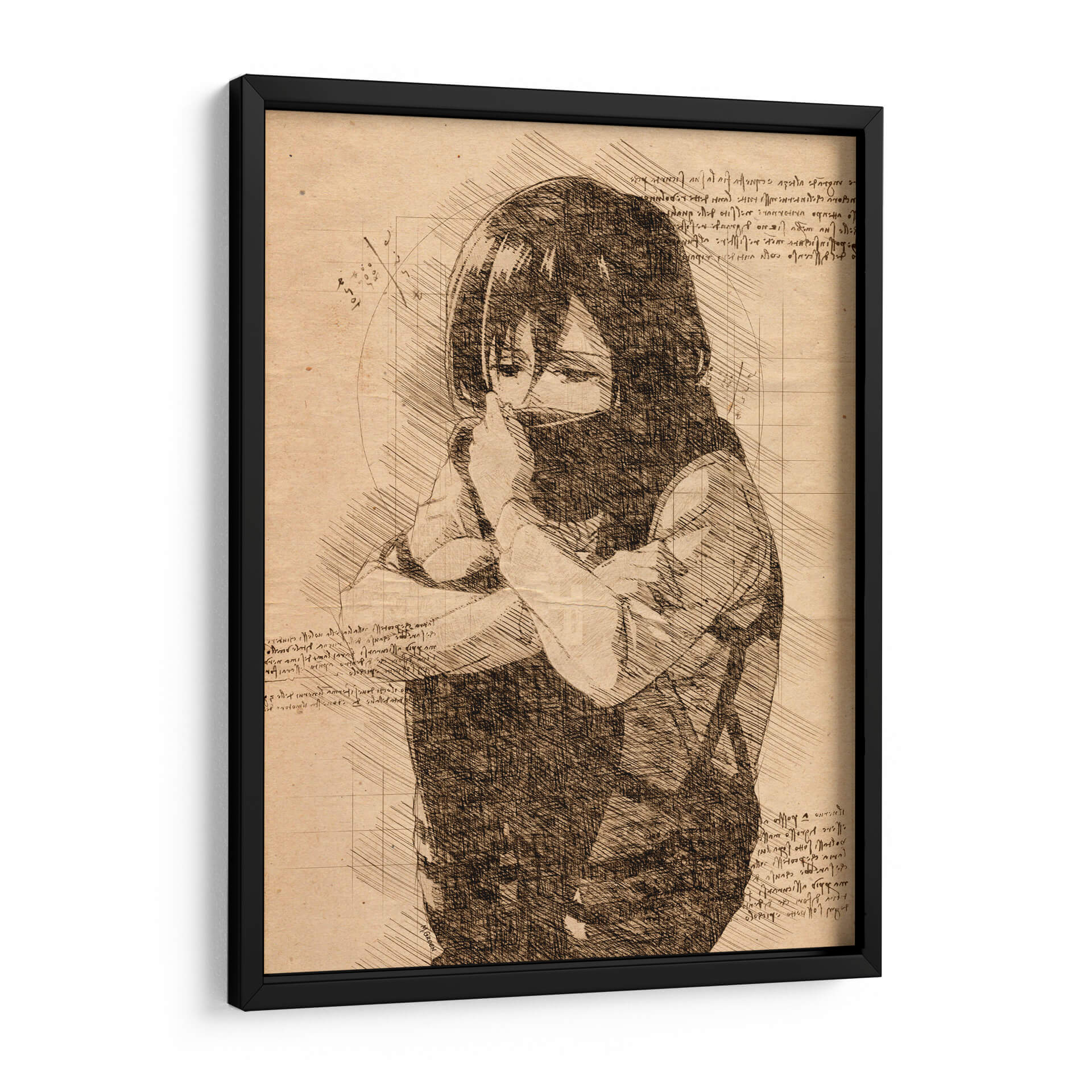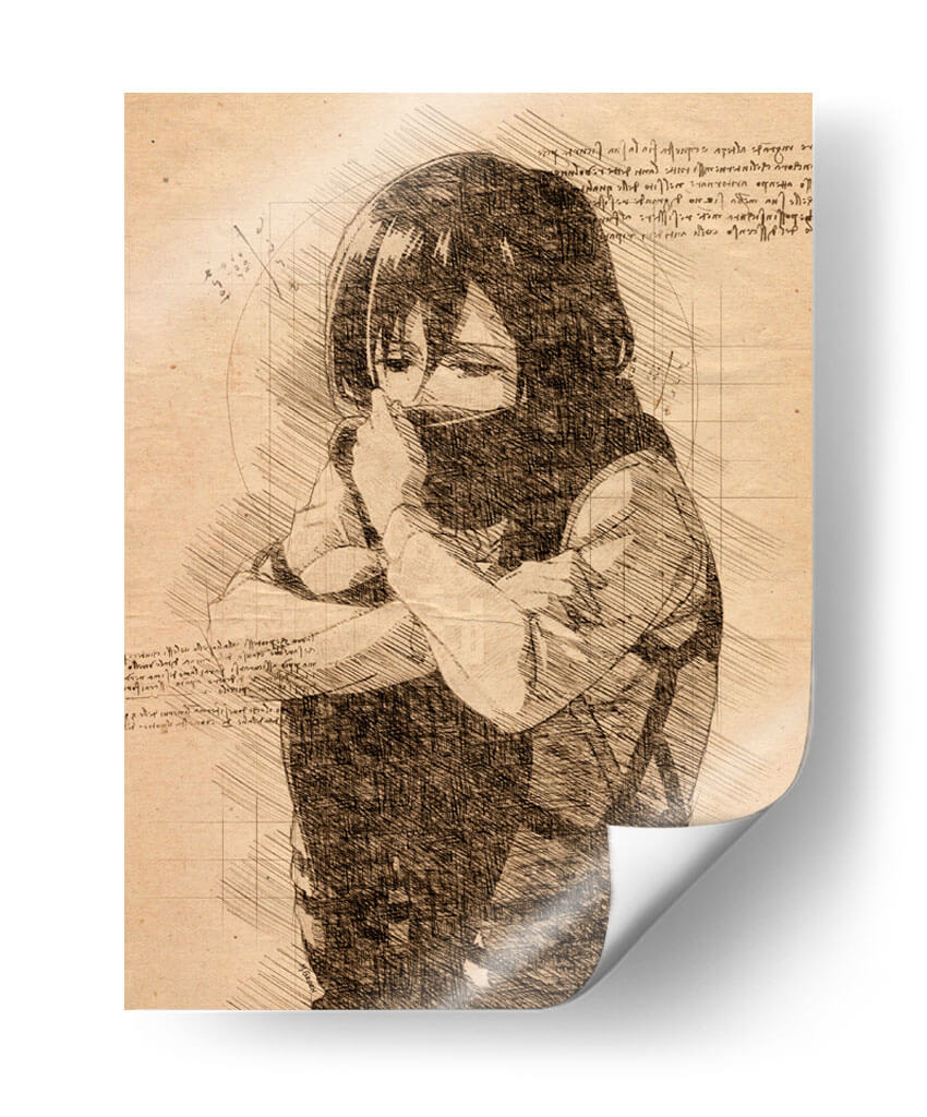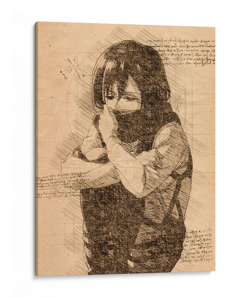 Sumérgete en la melancolía y la introspección con "La Bufanda de Mikasa", una obra inspirada en el estilo de Da Vinci por Marco Green. Este cuadro decorativo captura la esencia de un personaje sumido en sus pensamientos, envuelto en una bufanda que acentúa su misterio. La técnica de boceto a trazos, reminiscente de los estudios renacentistas, se combina con una paleta de sepia y tierra para crear una atmósfera atemporal y profundamente emotiva. Los detalles de la composición, con sutiles anotaciones y estudios geométricos en el fondo, añaden una capa de complejidad y erudición, evocando la genialidad del maestro italiano. La figura central, con su mirada introspectiva y pose recogida, transmite una sensación de calma reflexiva y una belleza sutilmente melancólica. Es una pieza ideal para añadir un toque de sofisticación intelectual y serenidad a cualquier espacio, ya sea una sala de estar, un estudio privado o una oficina. Este cuadro decorativo no es solo una imagen, sino una invitación a la contemplación y un homenaje a la profundidad del arte clásico, reinterpretado para el hogar moderno. Su estética única lo convierte en un punto focal que estimula la conversación y la admiración, aportando carácter y una conexión con la historia del arte a tu decoración.