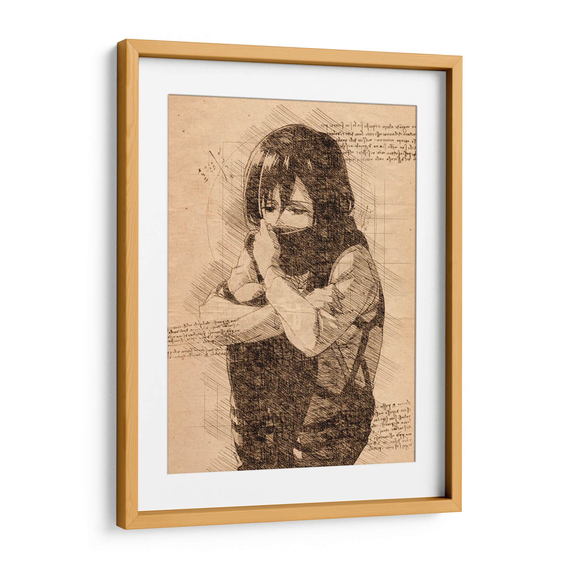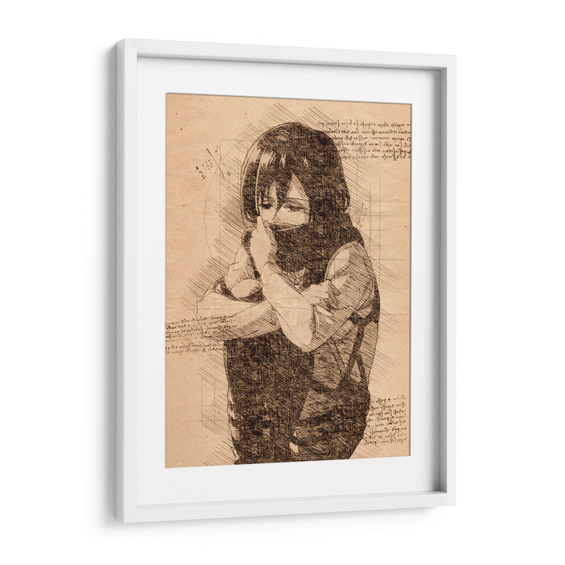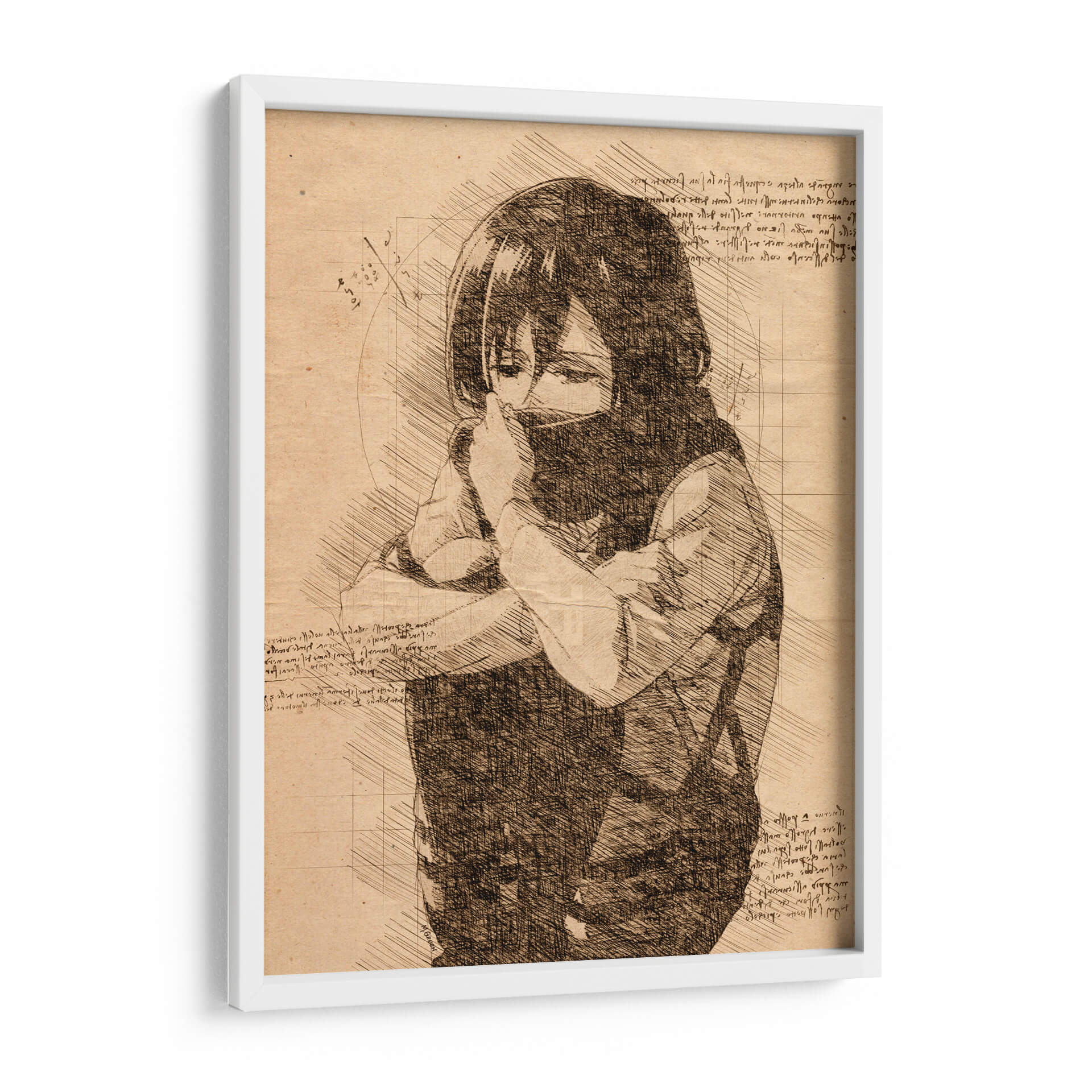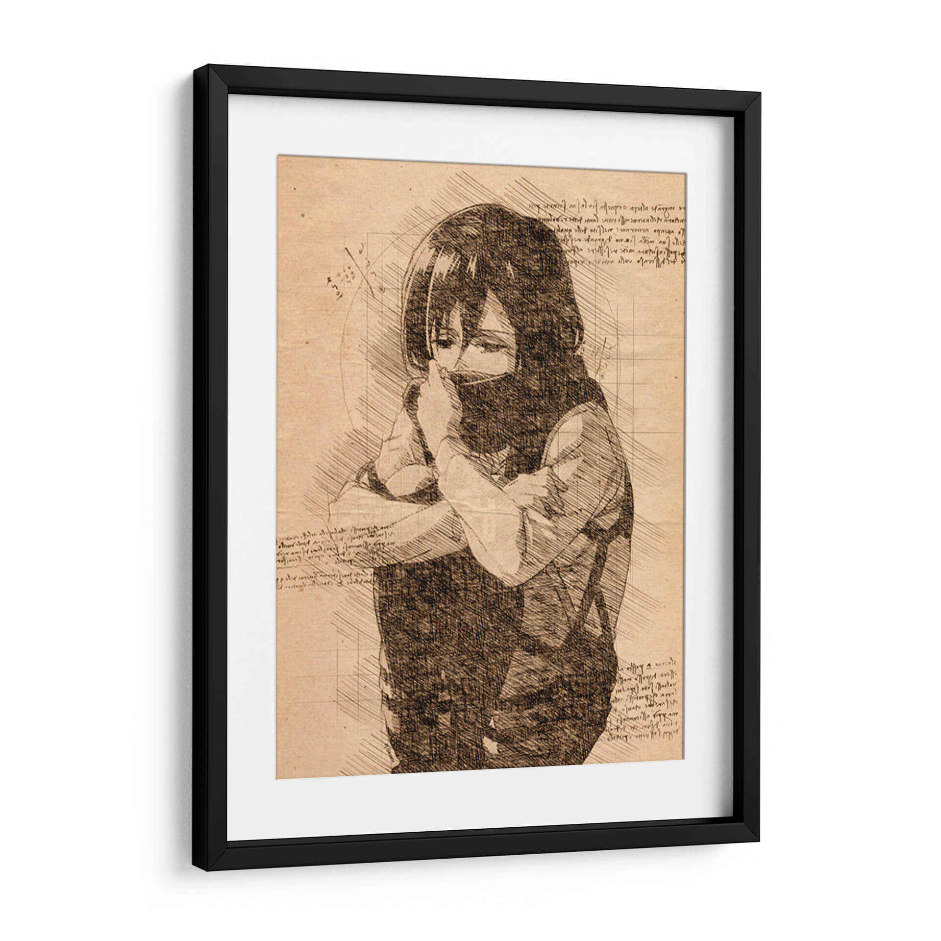 Sumérgete en la melancolía y la introspección con "La Bufanda de Mikasa", una obra inspirada en el estilo de Da Vinci por Marco Green. Este cuadro decorativo captura la esencia de un personaje sumido en sus pensamientos, envuelto en una bufanda que acentúa su misterio. La técnica de boceto a trazos, reminiscente de los estudios renacentistas, se combina con una paleta de sepia y tierra para crear una atmósfera atemporal y profundamente emotiva. Los detalles de la composición, con sutiles anotaciones y estudios geométricos en el fondo, añaden una capa de complejidad y erudición, evocando la genialidad del maestro italiano. La figura central, con su mirada introspectiva y pose recogida, transmite una sensación de calma reflexiva y una belleza sutilmente melancólica. Es una pieza ideal para añadir un toque de sofisticación intelectual y serenidad a cualquier espacio, ya sea una sala de estar, un estudio privado o una oficina. Este cuadro decorativo no es solo una imagen, sino una invitación a la contemplación y un homenaje a la profundidad del arte clásico, reinterpretado para el hogar moderno. Su estética única lo convierte en un punto focal que estimula la conversación y la admiración, aportando carácter y una conexión con la historia del arte a tu decoración.