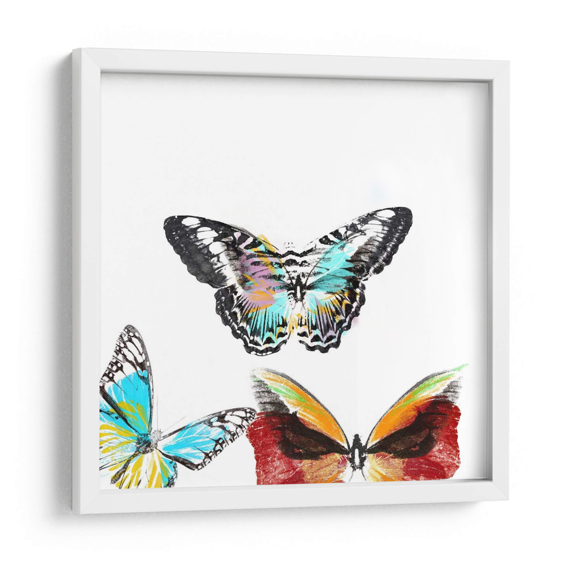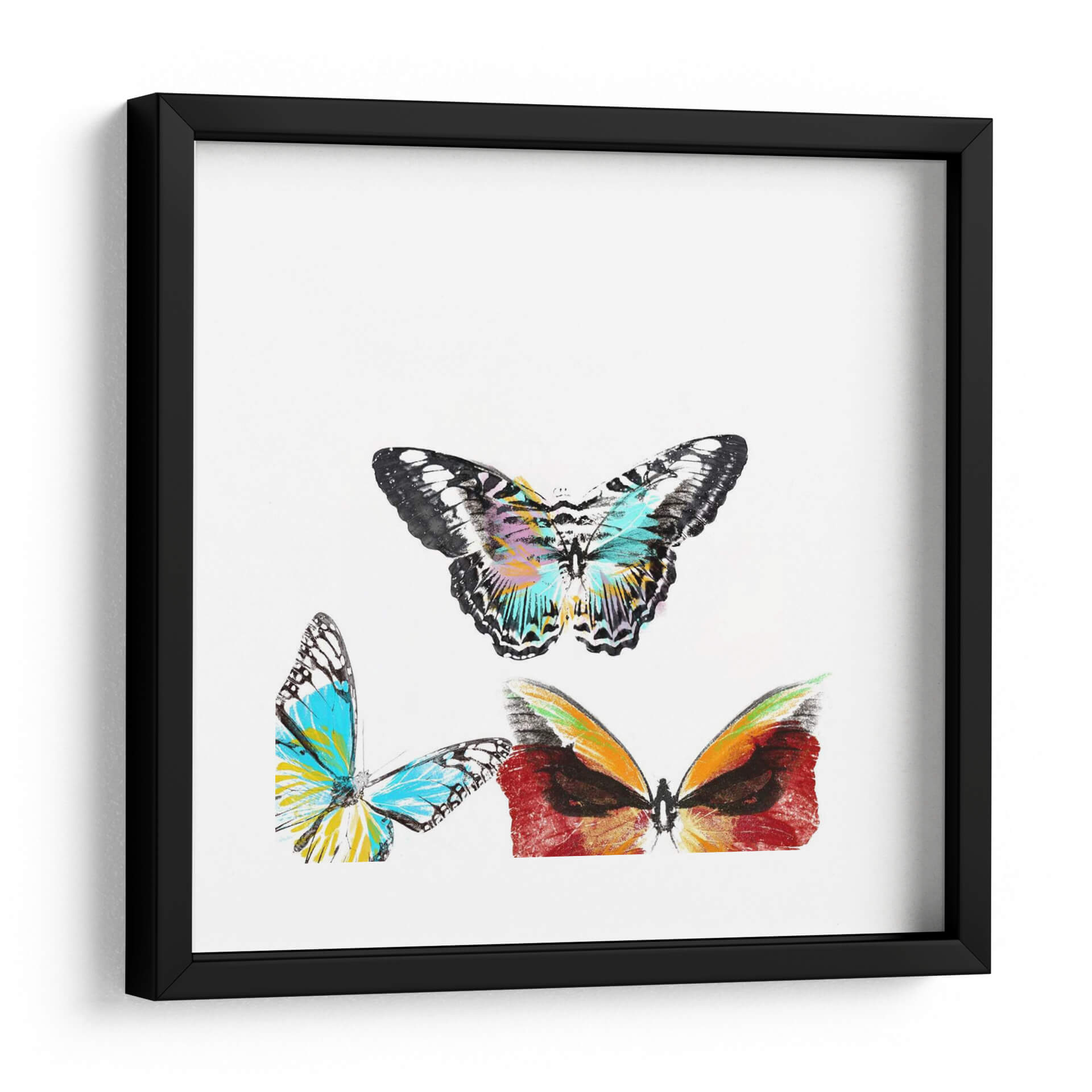 Embellece tu espacio con la cautivadora obra 'Butterflies Dance II', una explosión de color y vida que captura la delicadeza y la energía de la naturaleza. Este cuadro decorativo presenta un trío de mariposas, cada una con un diseño único y vibrante. La mariposa central destaca por sus alas detalladas en blanco y negro, con toques de turquesa, amarillo y fucsia que crean un efecto dinámico y alegre. A su lado, otras dos mariposas despliegan sus alas en tonos azules intensos, amarillos solares y cálidos rojizos, aportando profundidad y contraste a la composición. La paleta de colores, aunque variada, se mantiene armoniosa sobre un fondo blanco neutro, permitiendo que las mariposas sean las verdaderas protagonistas. El estilo artístico, una mezcla de realismo detallado con pinceladas expresivas, confiere a la pieza una sensación contemporánea y artística. Ideal para añadir un toque de sofisticación y vitalidad a cualquier habitación, desde salones modernos hasta dormitorios serenos u oficinas creativas, este cuadro decorativo invita a la contemplación y evoca sentimientos de transformación y belleza efímera. Es una elección perfecta para quienes buscan arte que inspire alegría y renueve la energía de su hogar.