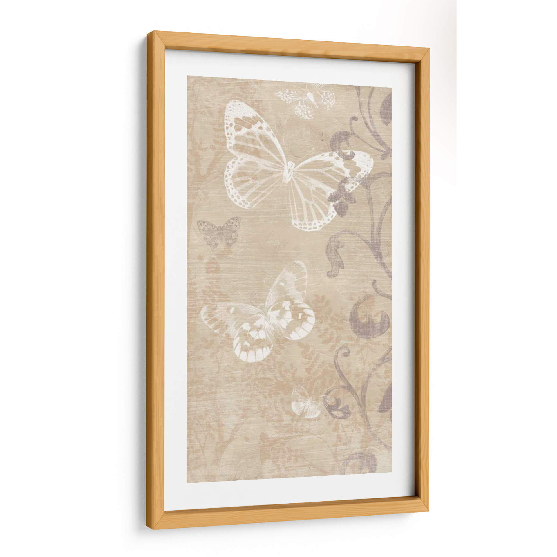 Adéntrate en un mundo de delicadeza y serenidad con "Butterfly Forest II", una obra de arte contemporáneo que evoca la belleza etérea de la naturaleza. Este cuadro decorativo presenta mariposas en tonos blancos y sepia, delicadamente posadas sobre un fondo texturizado que recuerda a la madera o al papel envejecido. La composición, con sus suaves curvas y patrones florales sutiles, crea una atmósfera de calma y elegancia atemporal. Los colores neutros, dominados por el beige, el crema y los toques de marrón oscuro, lo convierten en una pieza versátil, perfecta para añadir un toque de sofisticación natural a cualquier espacio. Imagina este cuadro embelleciendo tu sala de estar, aportando un aire de tranquilidad a tu dormitorio, o inspirando calma en tu oficina. "Butterfly Forest II" no es solo una decoración, es una invitación a la contemplación y a la conexión con la delicada magnificencia de las mariposas en un entorno boscoso, ideal para quienes buscan arte con un toque orgánico y refinado. Su estilo gráfico y texturizado añade profundidad visual sin abrumar, asegurando que se integre armoniosamente con diversas decoraciones, desde las más clásicas hasta las contemporáneas.