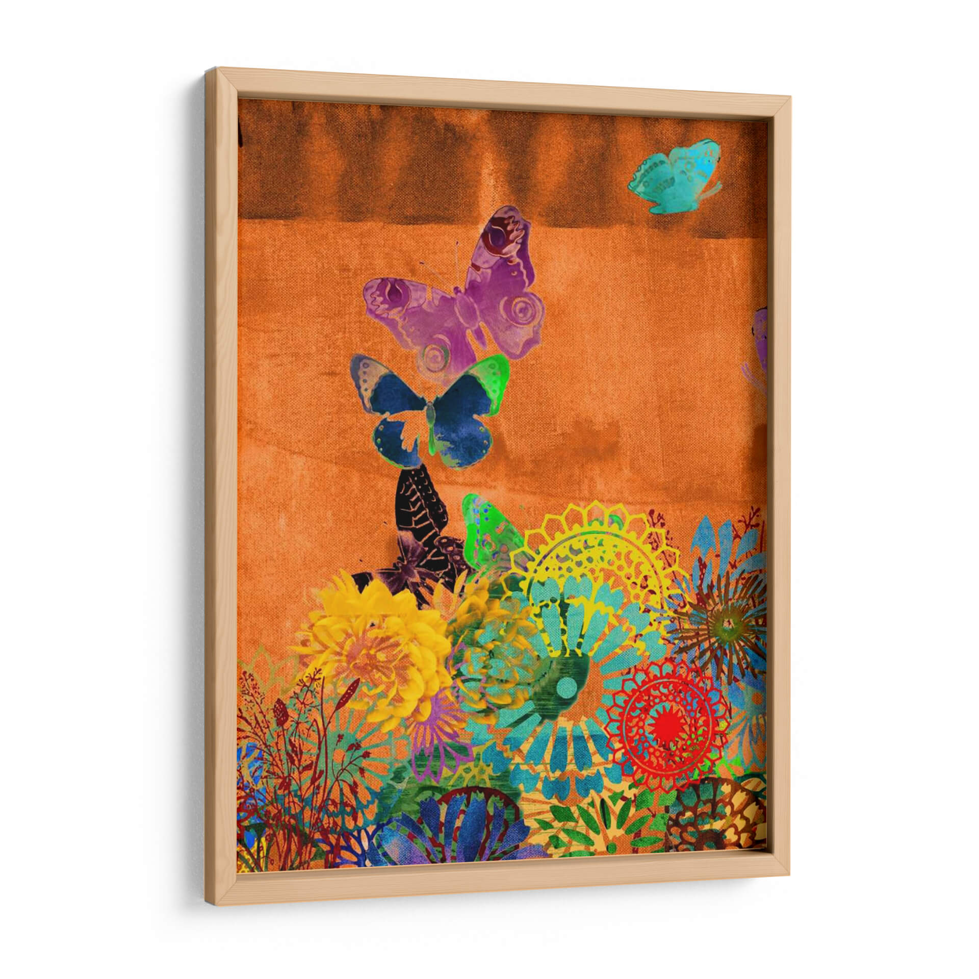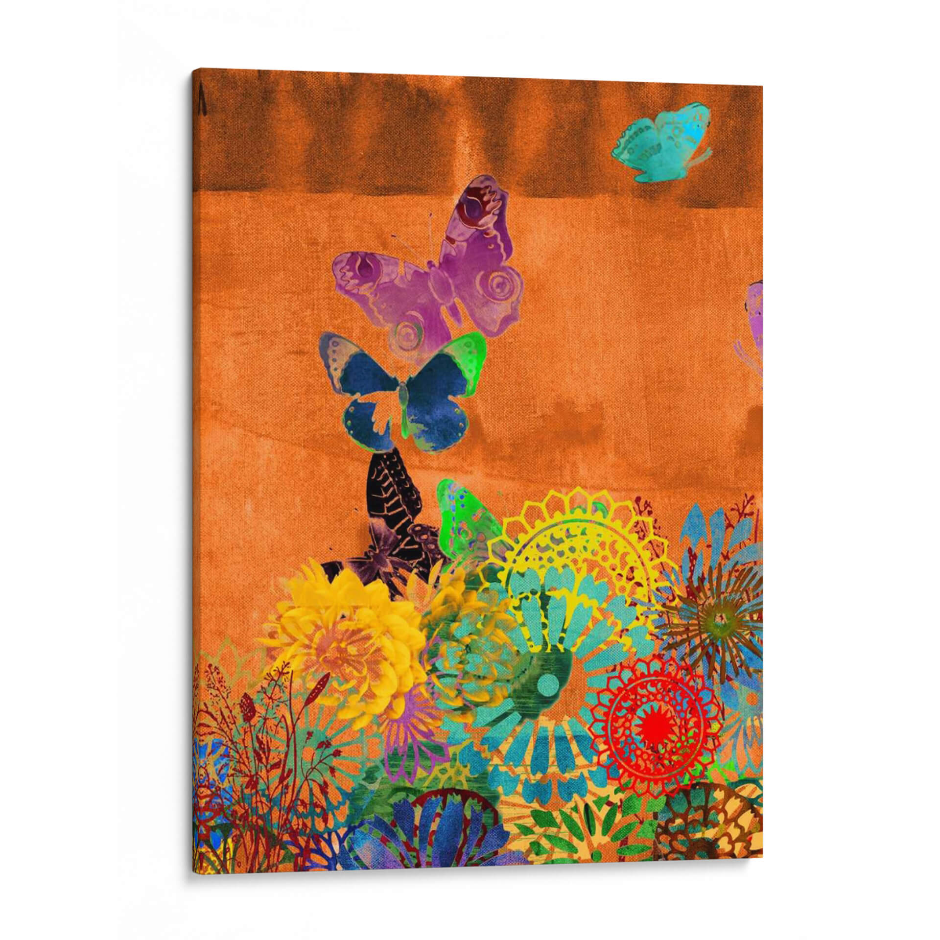 Transforma tu espacio con el vibrante cuadro decorativo 'Butterfly Panorama Triptych II' de Sisa Jasper. Esta obra de arte cautiva con un despliegue exuberante de mariposas en pleno vuelo sobre un fondo texturizado en tonos anaranjados. La paleta de colores es audaz y alegre, con mariposas en morados y azules intensos que contrastan con flores estilizadas en amarillos radiantes, turquesas vibrantes y rojos intensos, creando un efecto visual dinámico y lleno de vida. La composición, que evoca la sensación de un jardín encantado o un ecosistema floreciente, se presenta en un formato panorámico, ideal para capturar la mirada y añadir profundidad a cualquier pared. La técnica mixta y el estilo contemporáneo de Jasper fusionan elementos delicados y orgánicos con patrones geométricos inspirados en mandalas, dotando a la pieza de una riqueza textural y una energía contagiosa. Este cuadro es perfecto para inyectar un soplo de naturaleza, color y optimismo en salas de estar, dormitorios o estudios. Su atmósfera es de celebración y renovación, invitando a la contemplación de la belleza efímera. Añade un toque de arte único y moderno que inspirará alegría y vitalidad en tu hogar u oficina.