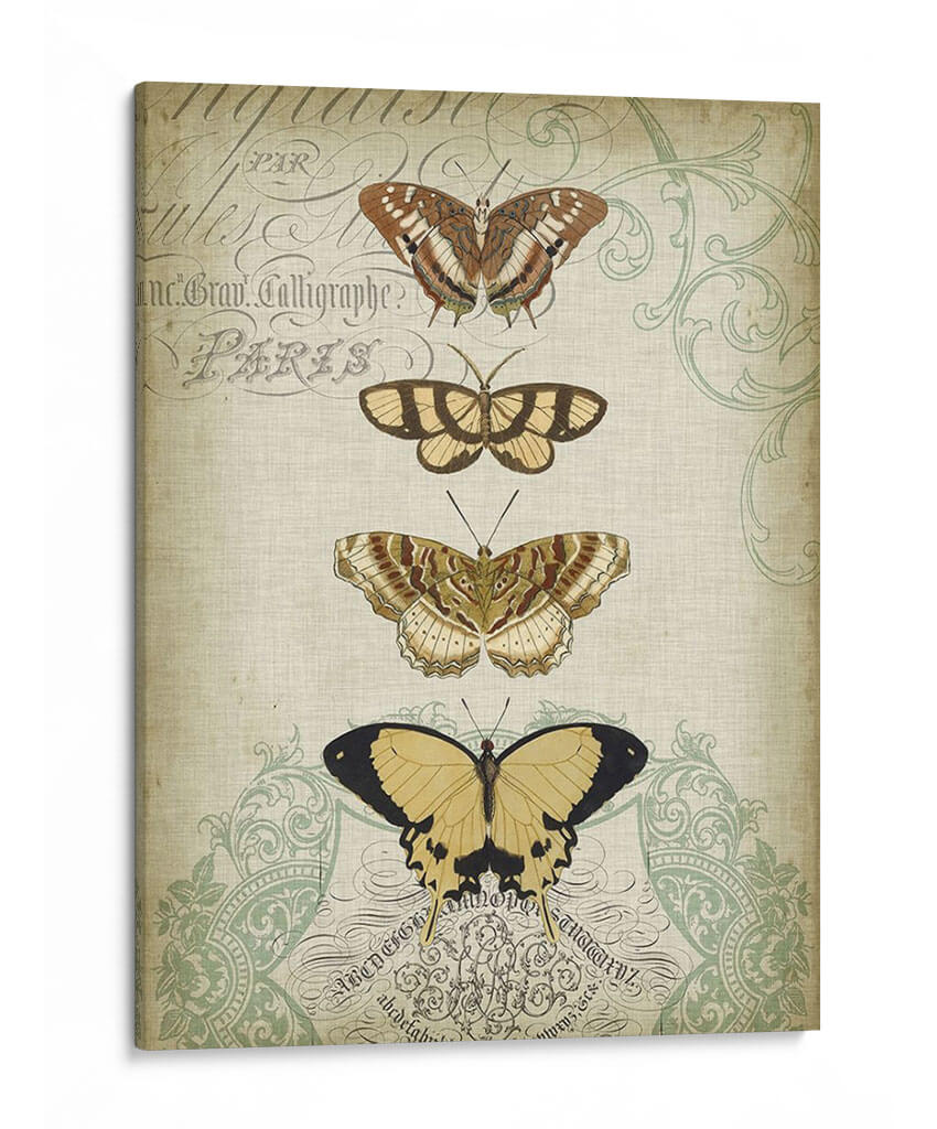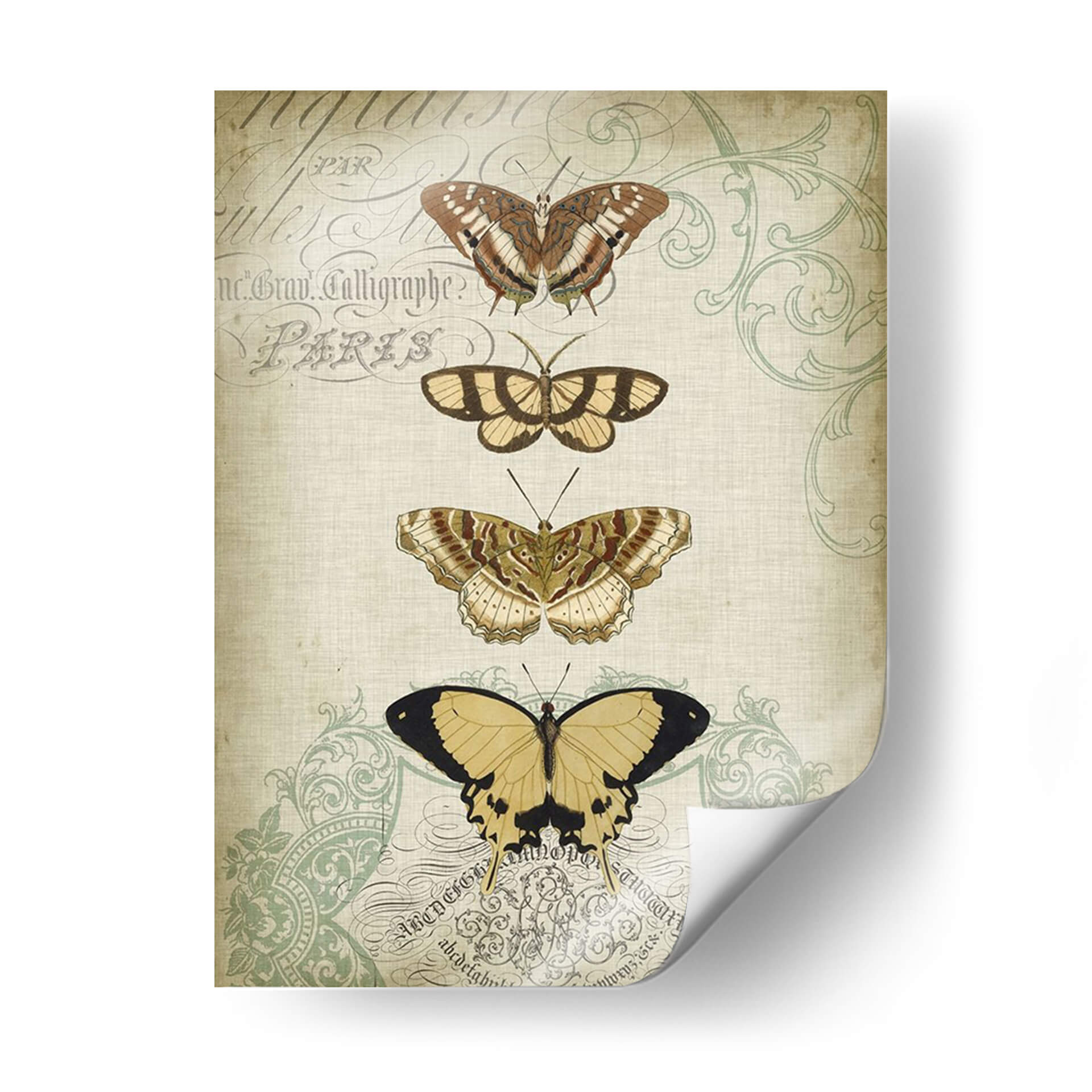 Añada un toque de elegancia vintage y encanto natural a su hogar con este cautivador cuadro decorativo, "Cartouche Y Mariposas II" de Jennifer Goldberger. La obra presenta una delicada disposición de cuatro mariposas, cada una con patrones intrincados y colores terrosos, que evocan la belleza de la naturaleza y la fascinación por la entomología. El fondo texturizado, reminiscentes de papeles antiguos y con sutiles toques de caligrafía francesa y ornamentación ornamental en tono verde menta, crea una atmósfera nostálgica y sofisticada. Las mariposas, representadas con un estilo realista pero con un toque artístico, parecen flotar en un espacio atemporal. Esta pieza es perfecta para quienes buscan añadir un elemento de serenidad y refinamiento a sus espacios, ya sea en una sala de estar, un estudio o un dormitorio. El cuadro decorativo "Cartouche Y Mariposas II" no solo embellece, sino que también cuenta una historia de belleza efímera y la elegancia de lo clásico, transformando cualquier pared en un punto focal de conversación.