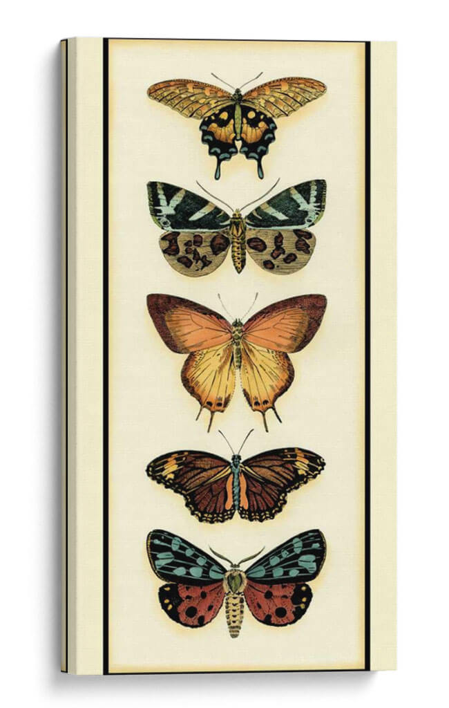 Embellece tu espacio con este cautivador cuadro decorativo 'Colector De Mariposa V' de Chariklia Zarris. Esta obra maestra presenta una elegante composición vertical de cinco mariposas detalladamente ilustradas, cada una con patrones y colores únicos que evocan la belleza de la naturaleza y el encanto de la entomología clásica. La paleta de colores cálidos, que abarca desde dorados y naranjas hasta tonos tierra y toques de azul, crea una atmósfera serena y a la vez vibrante, perfecta para añadir un toque de sofisticación a cualquier habitación. El estilo, que recuerda a las ilustraciones científicas vintage, aporta un aire de elegancia atemporal y un toque de nostalgia. Ideal para salones, dormitorios, estudios o incluso oficinas, este cuadro decorativo es un punto focal que inspira admiración y conversación. Su diseño vertical lo hace especialmente adecuado para espacios estrechos o para crear una línea visual interesante en una pared. Añade un toque de encanto natural y arte refinado a tu hogar u oficina con esta pieza excepcional que celebra la maravilla de las mariposas, transformando cualquier ambiente en una galería personal de buen gusto y estilo.