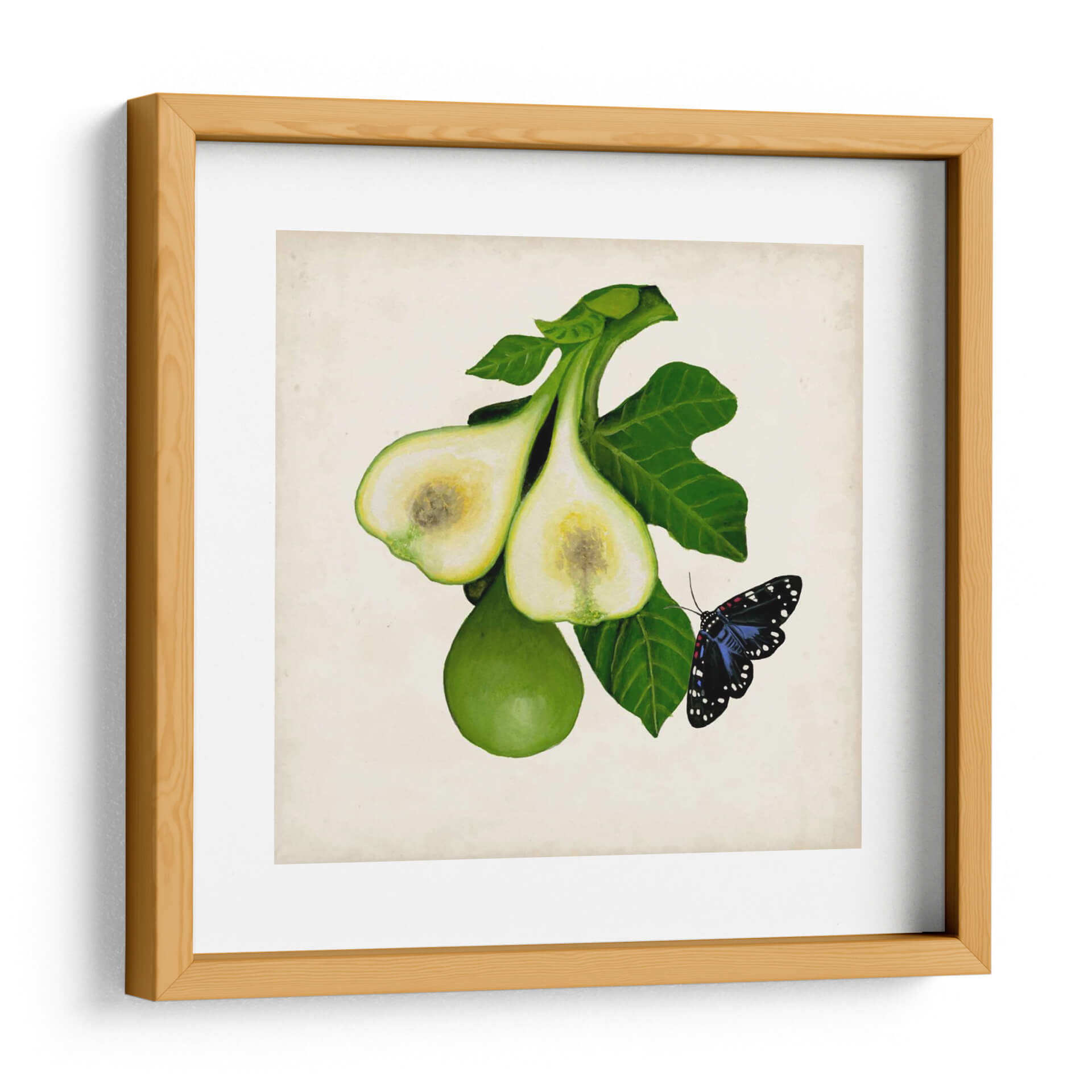 Captura la esencia de la naturaleza con este exquisito cuadro decorativo titulado 'Fruta Con Mariposas Iii', una obra de la talentosa Naomi McCavitt. La pieza presenta una delicada composición de higos verdes, uno entero y otro cortado para revelar su interior jugoso, adornados con exuberantes hojas y la presencia etérea de una mariposa azul y negra. La paleta de colores se centra en tonos tierra y verdes vibrantes, creando una atmósfera de serenidad y conexión con el mundo natural. El estilo realista, con toques de ilustración botánica, aporta una sensación de elegancia atemporal. Este cuadro es perfecto para añadir un toque de frescura y vitalidad a cualquier espacio, ya sea una sala de estar moderna, una cocina acogedora o un estudio inspirador. Su detallada representación y la armonía cromática invitan a la contemplación, convirtiéndose en un punto focal que evoca calma y aprecio por la belleza sutil de la flora y fauna. Ideal para quienes buscan arte que combine sofisticación y un guiño a la botánica, 'Fruta Con Mariposas Iii' es una adición encantadora a cualquier colección de decoración de pared.