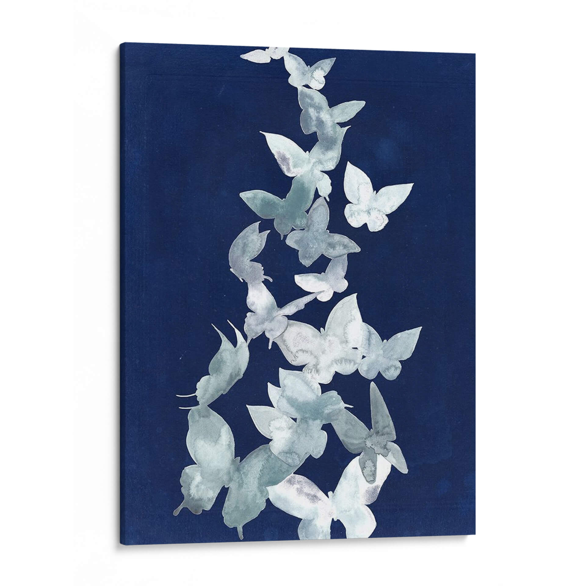 Sumérgete en la serena belleza de "Indigo Butterfly Falls Ii", una cautivadora obra de arte que captura la delicadeza y el movimiento etéreo de las mariposas en pleno vuelo. El artista Grace Popp ha creado una composición hipnotizante, donde un torrente de mariposas en tonos blancos y plateados desciende sobre un profundo y enigmático fondo azul índigo. La técnica utilizada evoca la sutileza de la acuarela, con bordes suaves y una transparencia que añade profundidad y ligereza a las figuras aladas. Cada mariposa parece flotar, transmitiendo una sensación de calma, transformación y libertad. Este cuadro decorativo es perfecto para añadir un toque de elegancia y serenidad a cualquier espacio. Imagina cómo sus vibrantes contrastes y su atmósfera soñadora podrían revitalizar tu sala de estar, aportar tranquilidad a tu dormitorio o inspirar creatividad en tu oficina. "Indigo Butterfly Falls Ii" no es solo una pieza de decoración, sino una invitación a contemplar la belleza efímera de la naturaleza, ideal para quienes buscan arte contemporáneo con un toque poético y sofisticado.