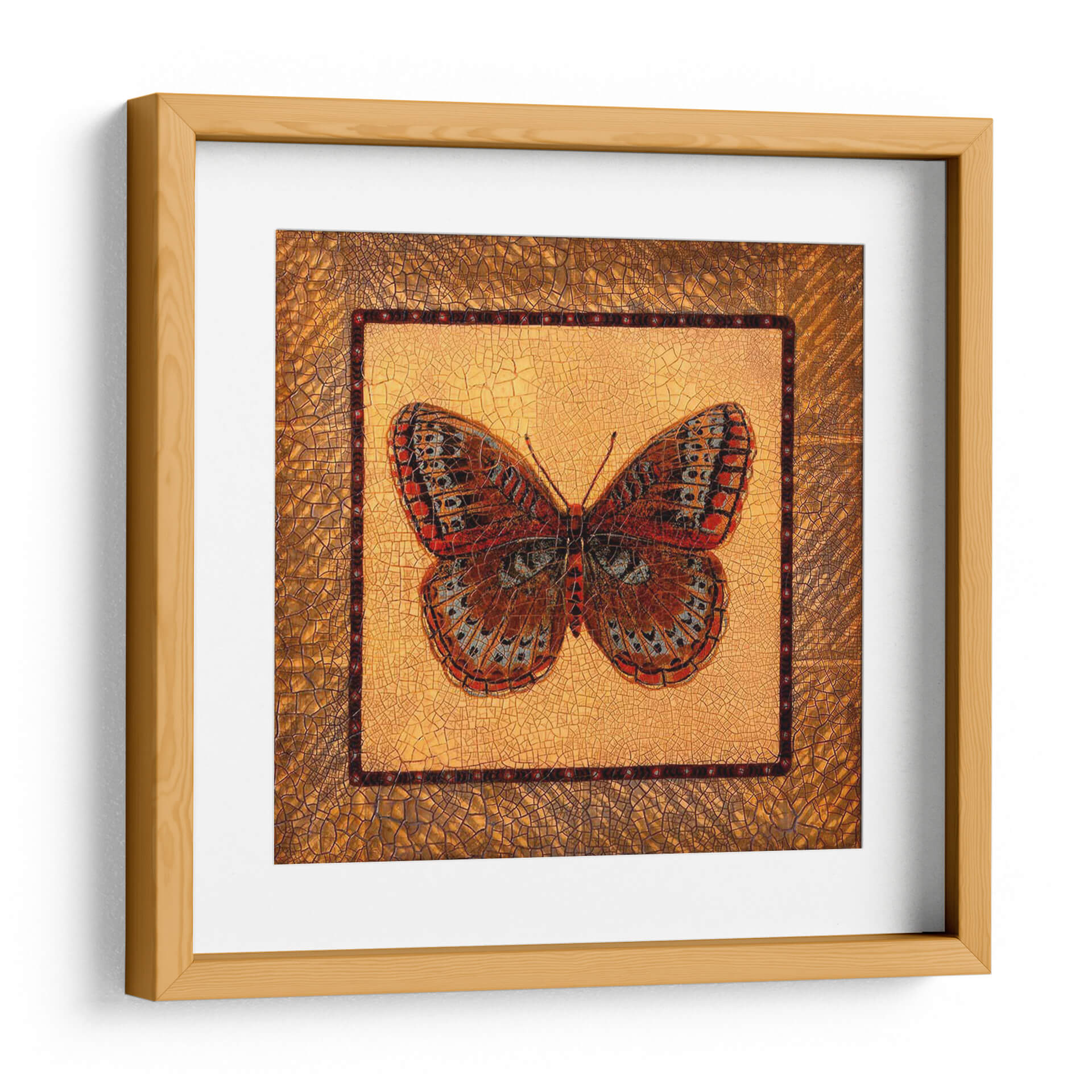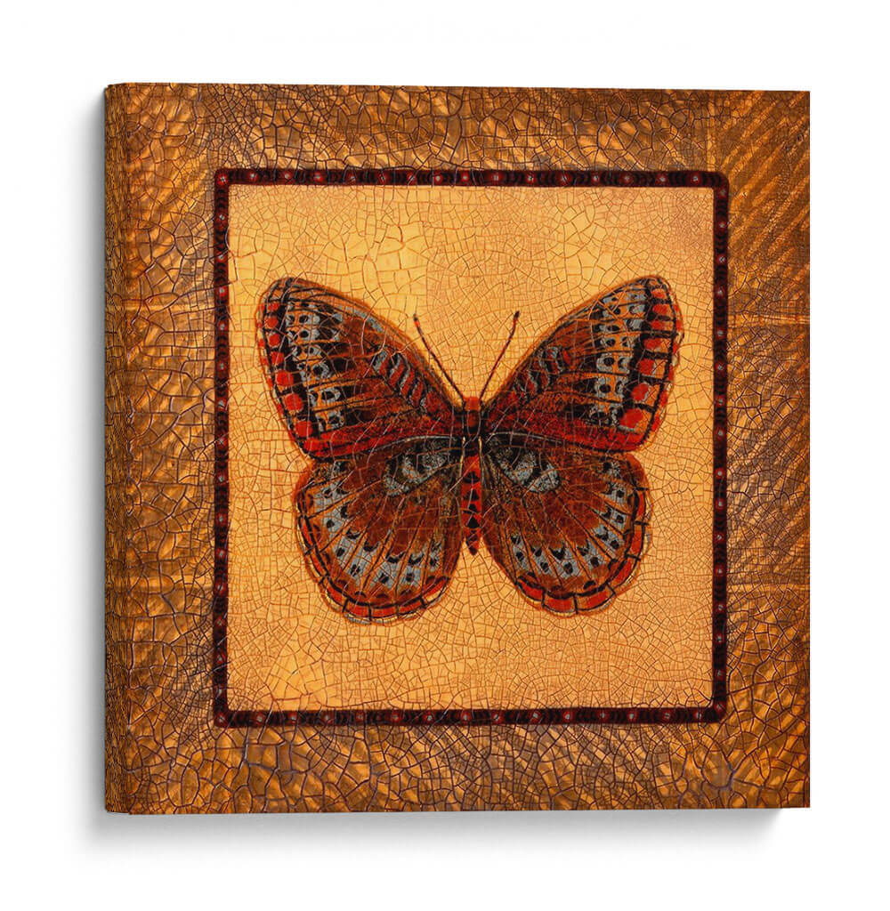 Embellece tu espacio con "Mariposa Crujífica - Fritillary", una obra de arte cautivadora de Wendy Russell que evoca la belleza intrincada de la naturaleza. Esta pieza central presenta una detallada mariposa en tonos tierra, rojos vibrantes y azules sutiles, posada sobre un fondo texturizado que imita el craquelado antiguo. La composición centrada y los colores ricos crean una sensación de elegancia atemporal y misterio. El detallado patrón de las alas de la mariposa, combinado con el marco decorativo que la rodea, añade profundidad y carácter. Ideal para salas de estar, dormitorios o estudios que buscan un toque de sofisticación orgánica y un punto de interés visual. Este cuadro decorativo no solo atrae la mirada, sino que también invita a la contemplación, fusionando la delicadeza de la entomología con una estética artística refinada. Añade un toque de clase natural a tu decoración con esta exquisita representación de la "Mariposa Crujífica - Fritillary".