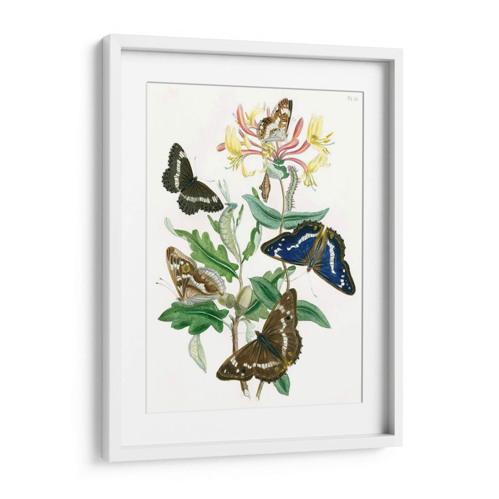 Emb p bele c nese en la belleza intrincada de 'Mariposas Británicas I', una obra de arte que captura la delicadeza y la vitalidad de la naturaleza. Esta pieza presenta un vibrante despliegue de mariposas en diversas etapas de su ciclo de vida, posadas sobre una rama de flores de madreselva y hojas de roble. La paleta de colores, dominada por tonos tierra, verdes profundos y acentos de amarillo y rosa en las flores, crea una atmósfera serena y a la vez llena de vida. El estilo, reminiscent e d e ilustraciones botánicas clásicas, destaca por su realismo detallado y precisión en la representación de cada criatura y elemento vegetal. Las mariposas, con sus alas desplegadas en patrones fascinantes, añaden un toque de elegancia y movimiento a la composición. Este cuadro decorativo es perfecto para infundir un aire de sofisticación natural y tranquilidad en cualquier espacio, ya sea una sala de estar, un estudio o un dormitorio. Imagine este lienzo como un punto focal que invita a la contemplación y celebra la maravilla del mundo natural, aportando una conexión tangible con la botánica y la entomología a su decoración.