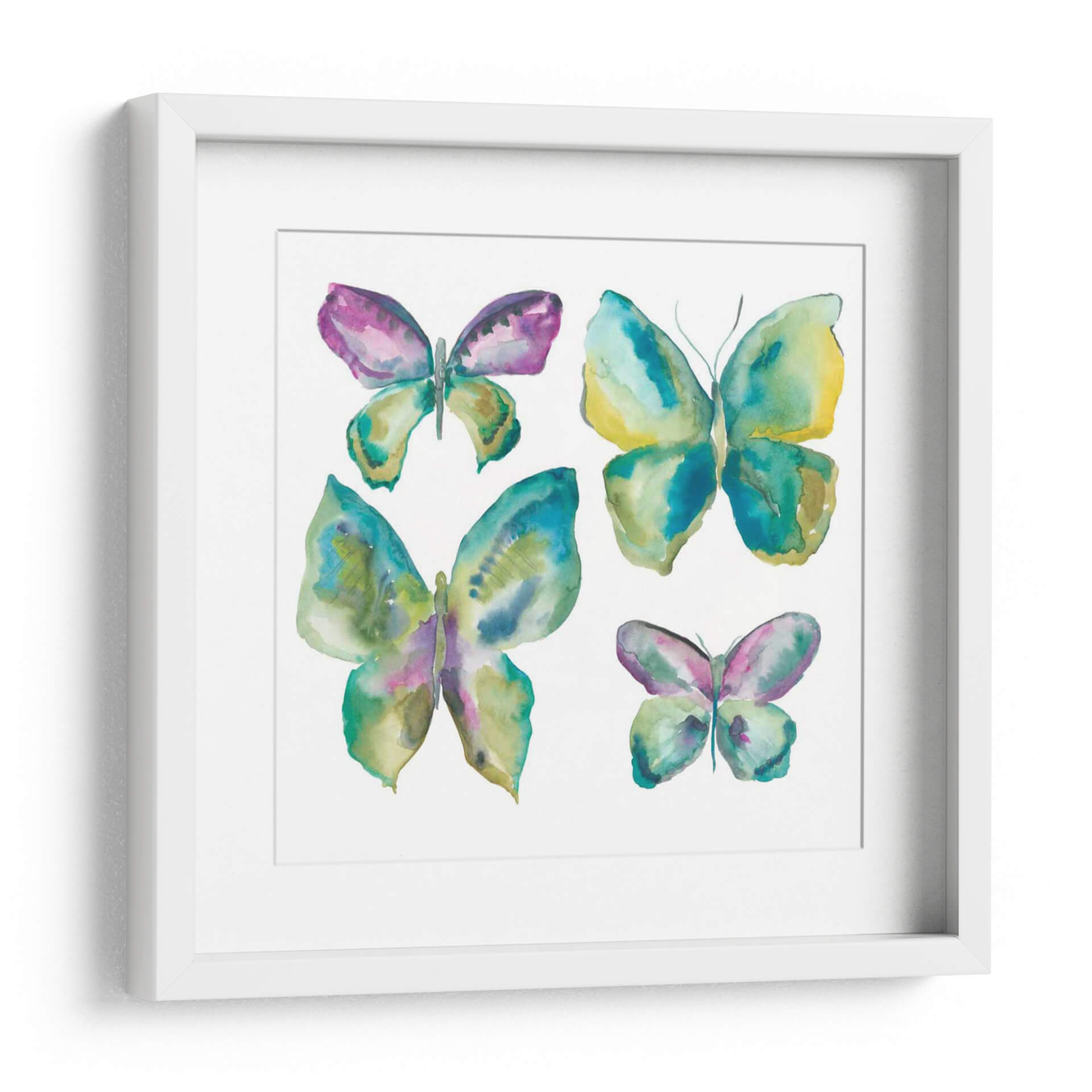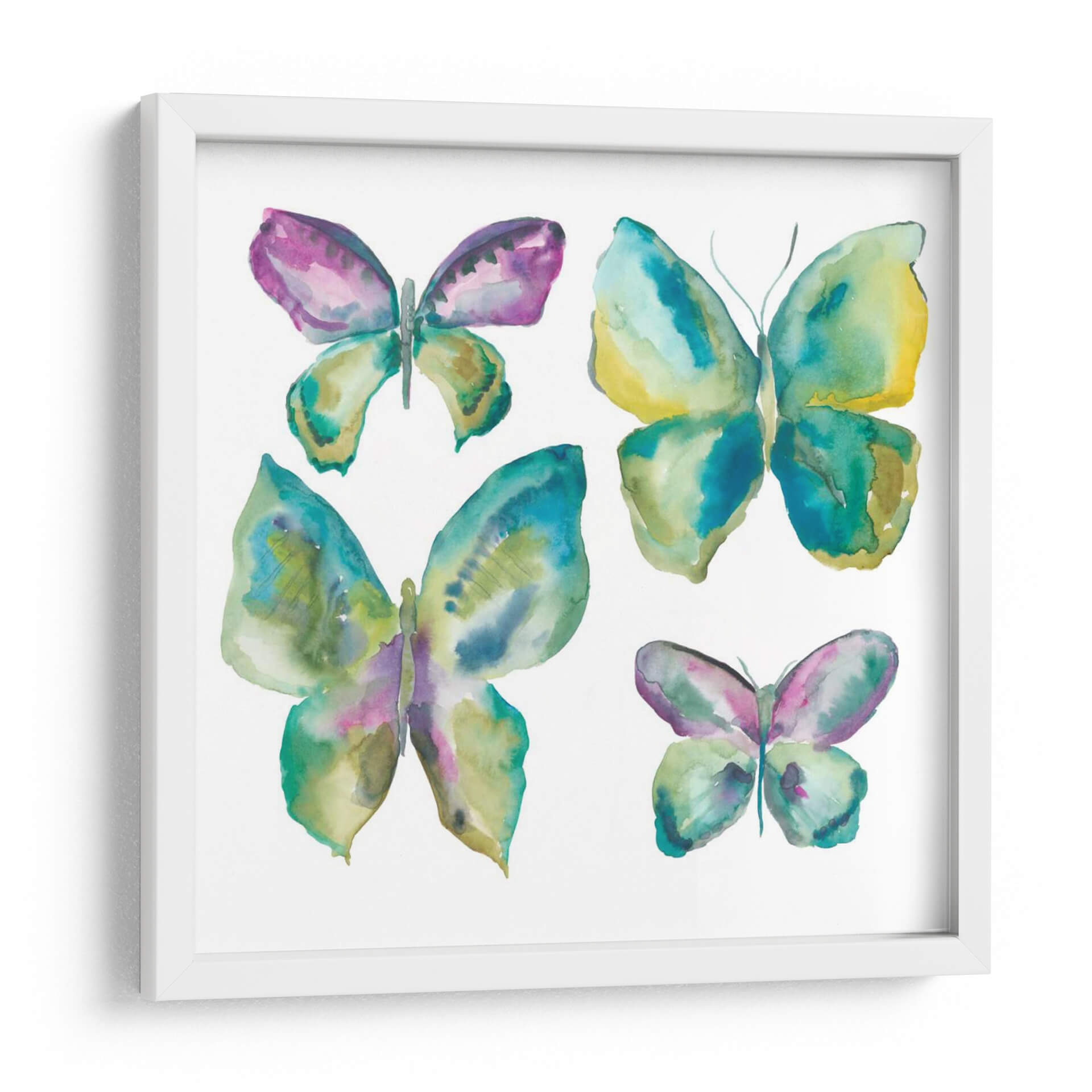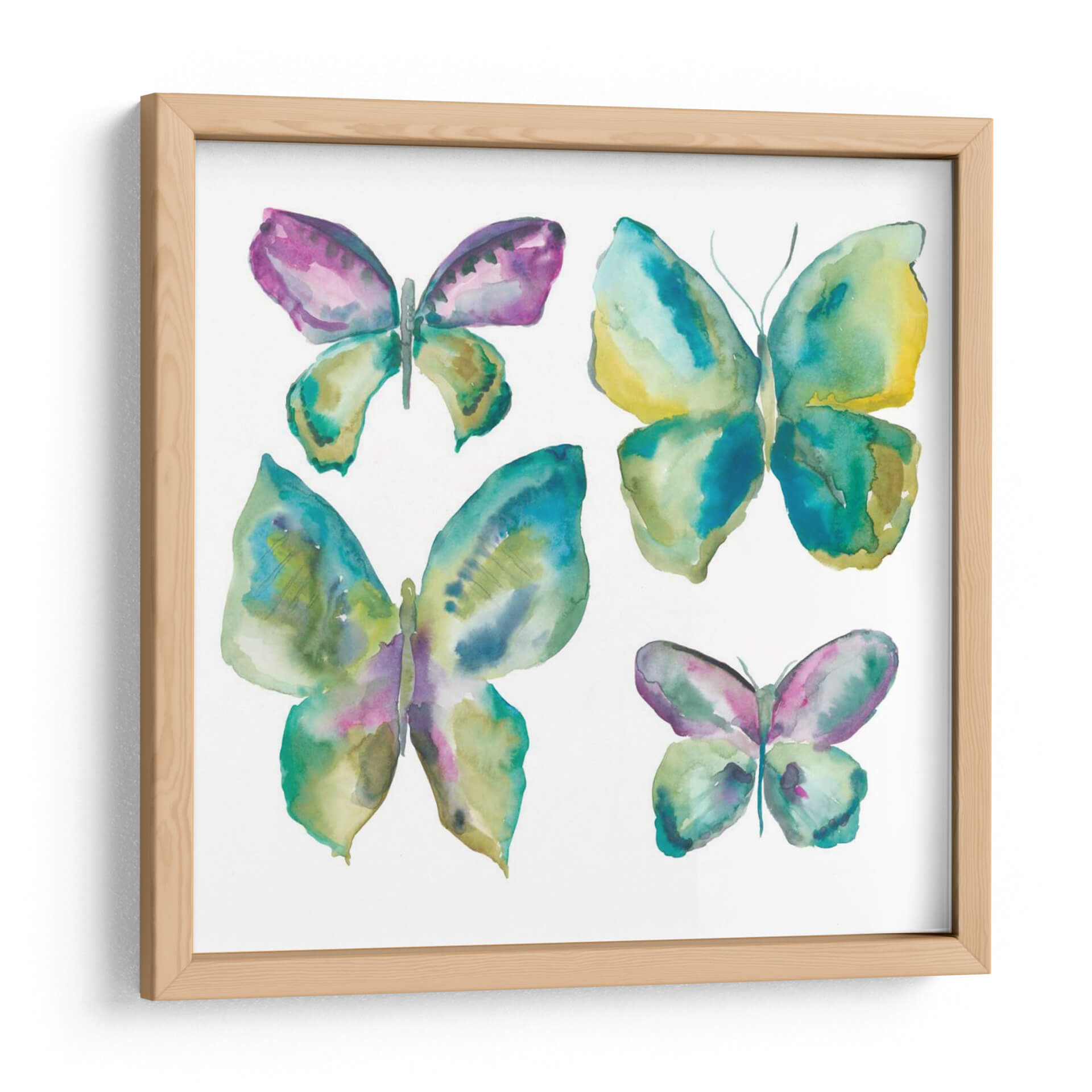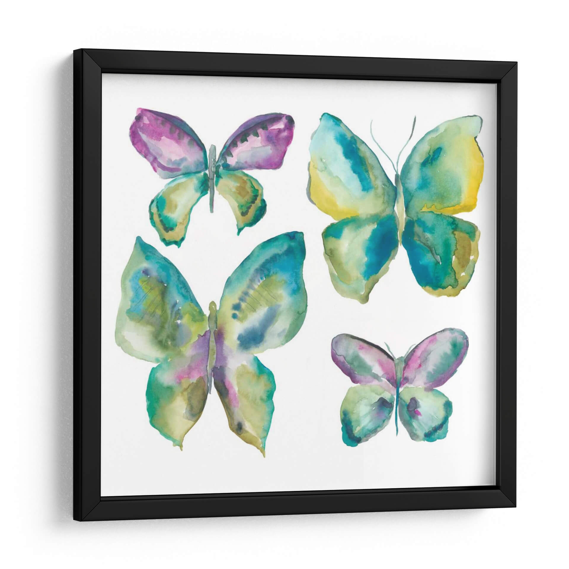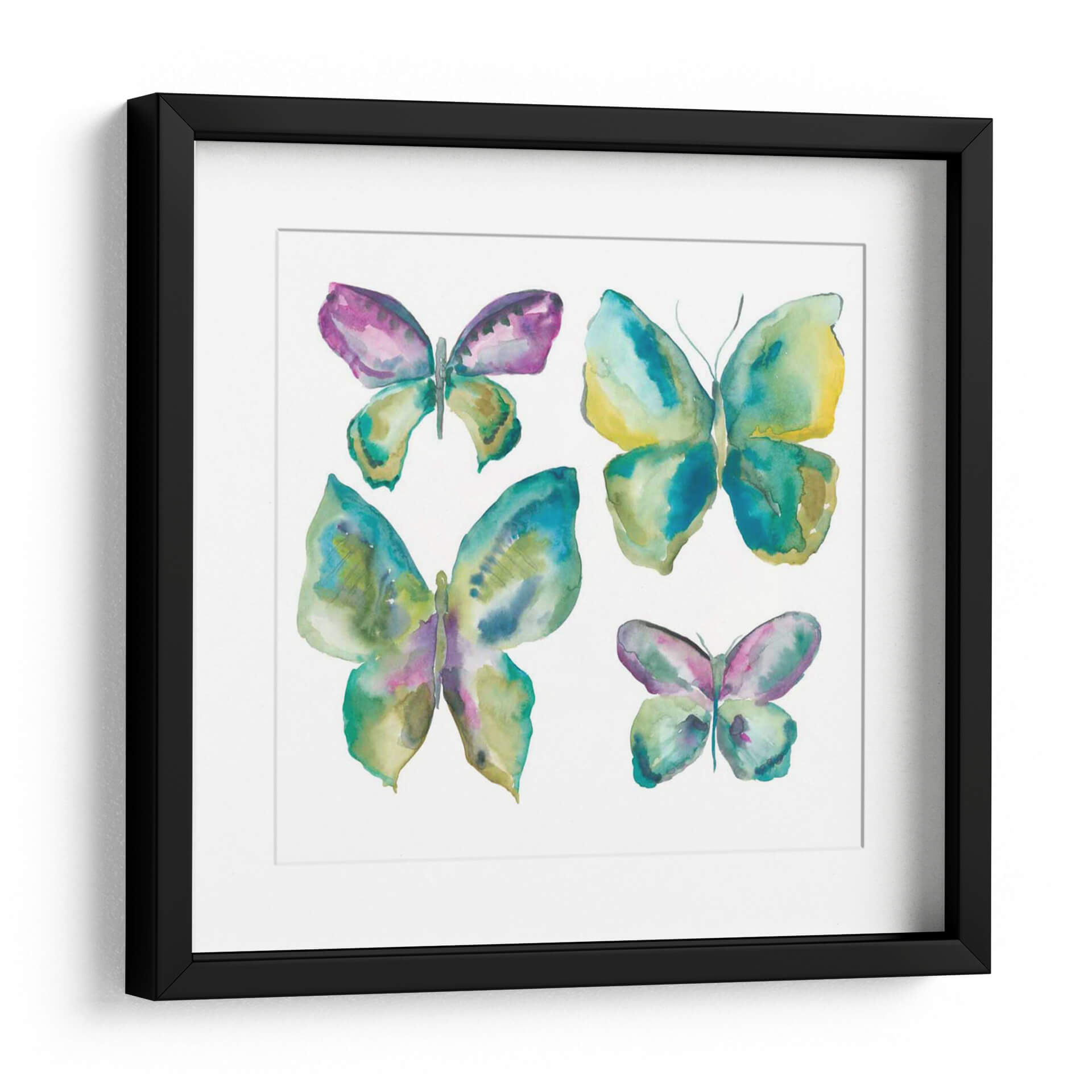 Embellece tu hogar con el cuadro decorativo "Mariposas Enjoyadas I" de Chariklia Zarris, una obra de arte que captura la delicadeza y la transformación de estos icónicos insectos. Esta pieza, realizada en un estilo acuarela etéreo, presenta cuatro mariposas en distintas etapas de vuelo, cada una representada con pinceladas sueltas y vibrantes que evocan una sensación de movimiento y ligereza. La paleta de colores es un festín para la vista, fusionando tonos turquesa, verde esmeralda, amatista y toques de amarillo sol, creando una armonía cromática que aporta vitalidad y frescura a cualquier espacio. La composición, con las mariposas distribuidas de manera armoniosa sobre un fondo blanco, permite que cada detalle resalte, invitando a la contemplación. "Mariposas Enjoyadas I" es más que una simple decoración de pared; es una invitación a la alegría, la esperanza y la belleza efímera de la naturaleza. Su estilo contemporáneo y su temática universal la convierten en una adición perfecta para salones modernos, dormitorios serenos, o incluso oficinas que buscan un toque de inspiración y color. Transforma tus paredes en un lienzo de emociones y descubre cómo esta obra puede infundir paz y vitalidad en tu día a día.