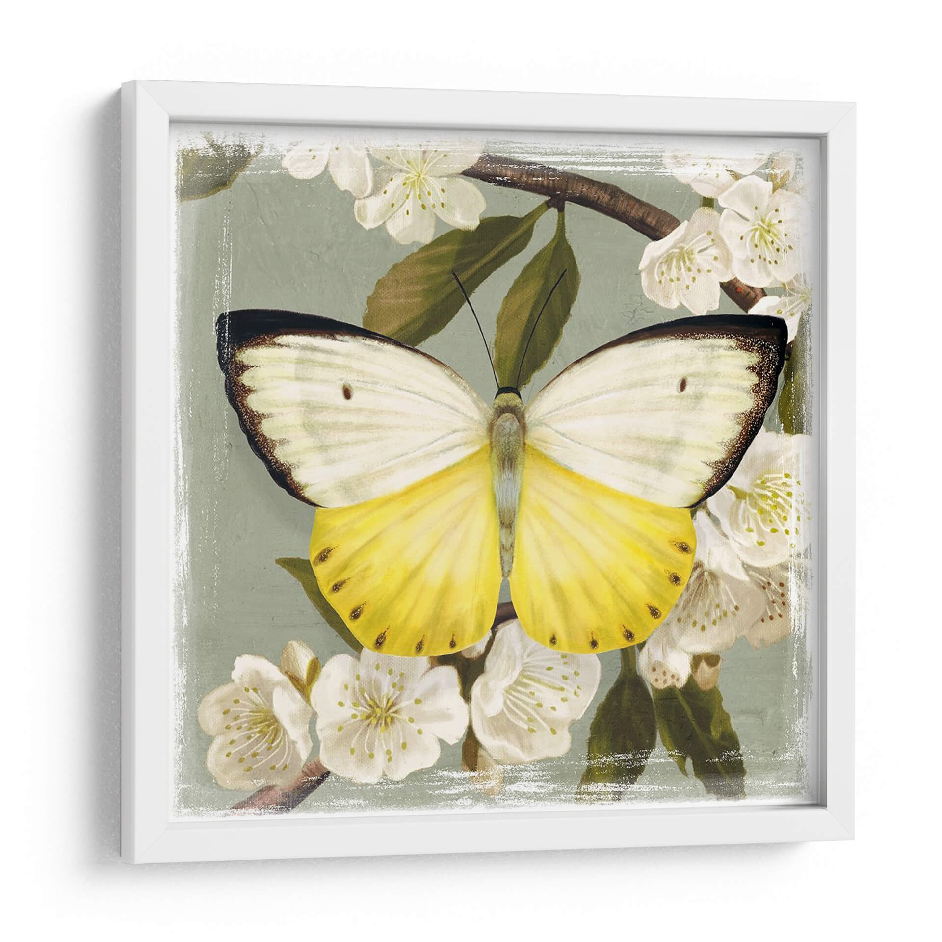 Captura la delicadeza de la naturaleza con "Rama De Mariposa I", una obra de arte exquisita de Victoria Borges. Este cuadro decorativo presenta una mariposa vibrante en tonos amarillos y blancos, posada sobre una rama florida en un entorno de sutiles tonos verdosos. La composición detallada y la paleta de colores serena evocan una sensación de tranquilidad y belleza natural. Los delicados pétalos de las flores blancas contrastan armoniosamente con el plumaje de la mariposa, creando una escena visualmente cautivadora. El estilo, que recuerda a las ilustraciones botánicas clásicas pero con un toque contemporáneo, hace que esta pieza sea ideal para cualquier espacio que busque un aire de frescura y elegancia. Es perfecta para añadir un toque de color y vida a tu sala de estar, dormitorio o incluso a un espacio de trabajo, aportando una conexión con la serenidad del mundo natural. "Rama De Mariposa I" es más que una simple decoración; es una ventana a la belleza efímera de la naturaleza, un recordatorio de la delicadeza y la transformación.