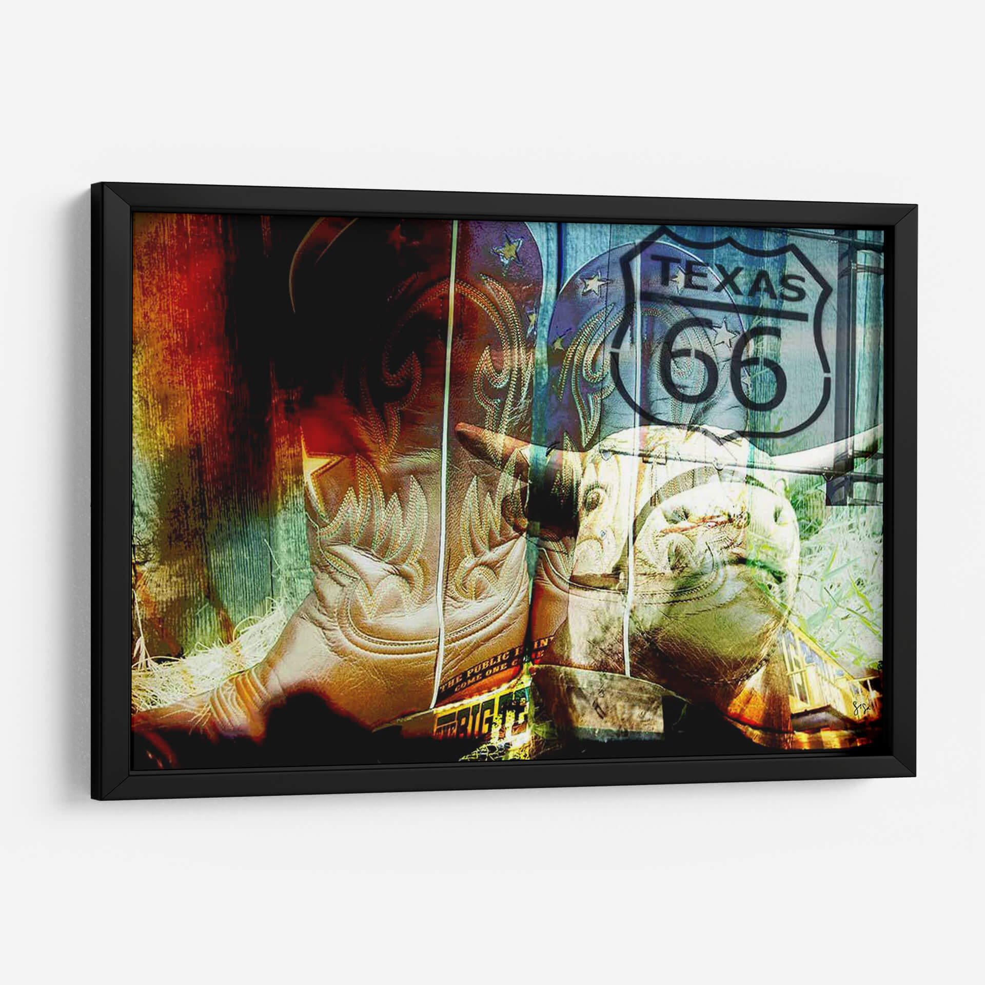 Sumérgete en la icónica esencia del suroeste americano con este cautivador cuadro decorativo, "36X56 Botas Y Ruta (Ceniza)" de Sisa Jasper. Esta obra maestra visual entrelaza elementos icónicos de la cultura del desierto y el camino, presentando unas botas de vaquero detalladas superpuestas sobre un fondo rústico de madera azul y el famoso letrero de la Ruta 66 de Texas. La paleta de colores vibrantes, que va desde cálidos tonos ocres y rojos hasta fríos azules y verdes, crea una atmósfera de nostalgia y aventura. La composición, rica en texturas y capas, invita a la contemplación de un estilo de vida libre y audaz. Es la pieza perfecta para infundir carácter y una narrativa visual única a cualquier sala de estar, estudio u oficina, atrayendo a aquellos que buscan evocar un sentido de viaje, historia y la indomable espíritu del oeste. Este cuadro no es solo decoración, es una declaración de intenciones para los amantes de las historias que se despliegan en cada kilómetro.