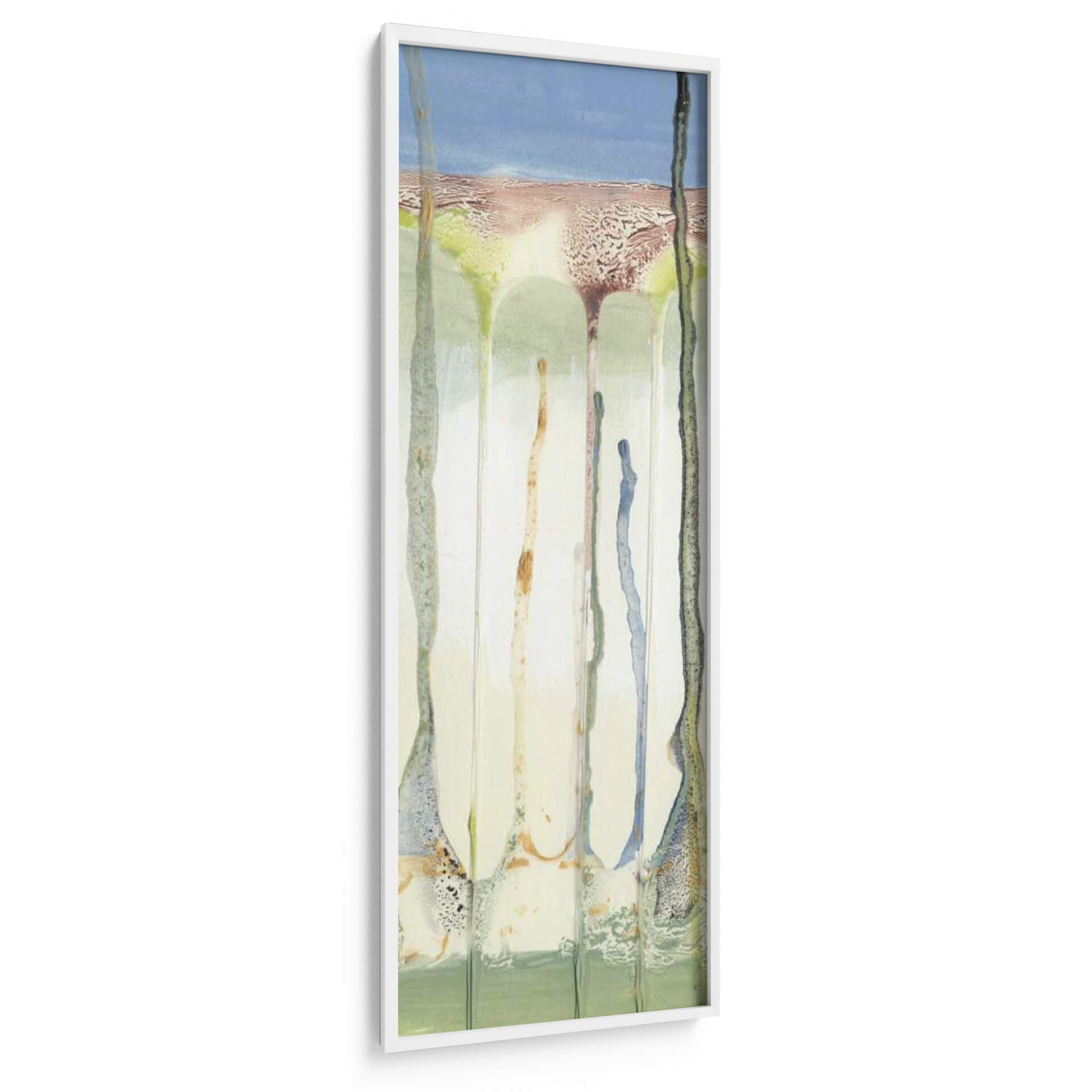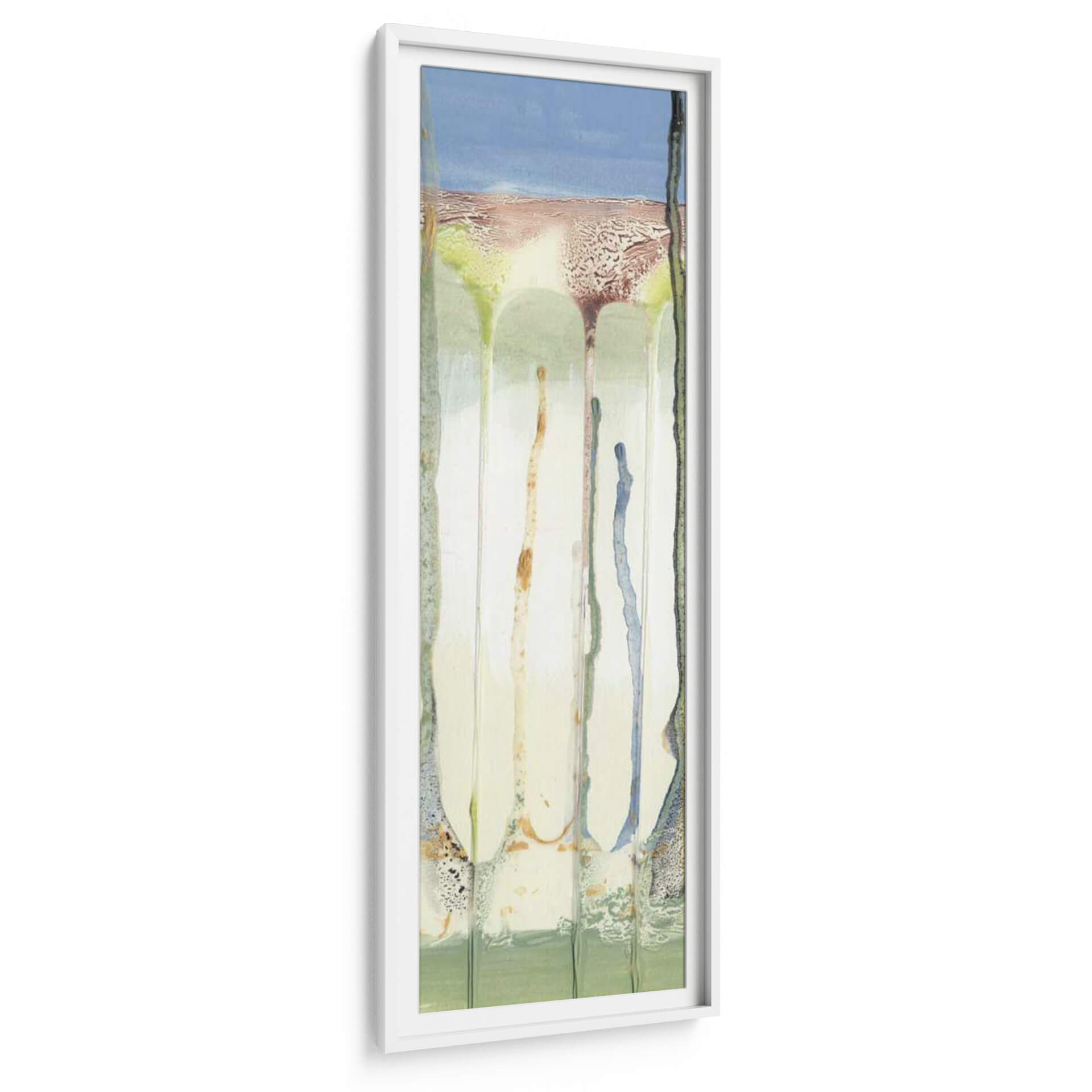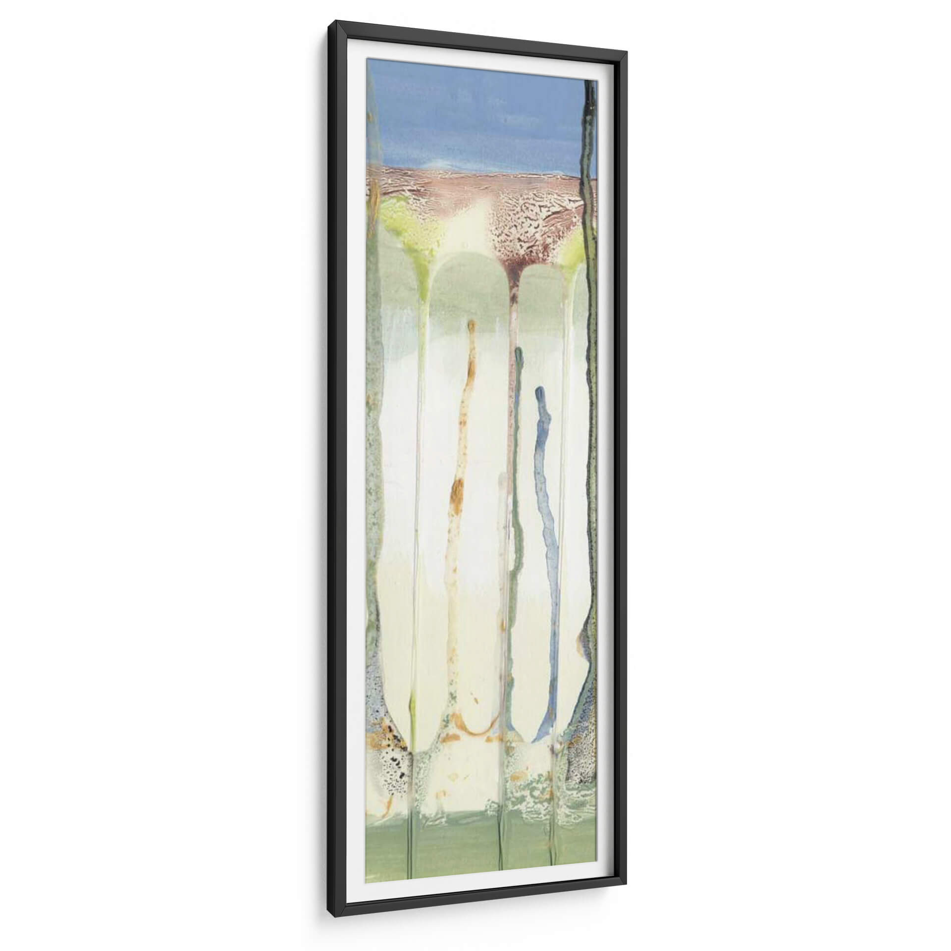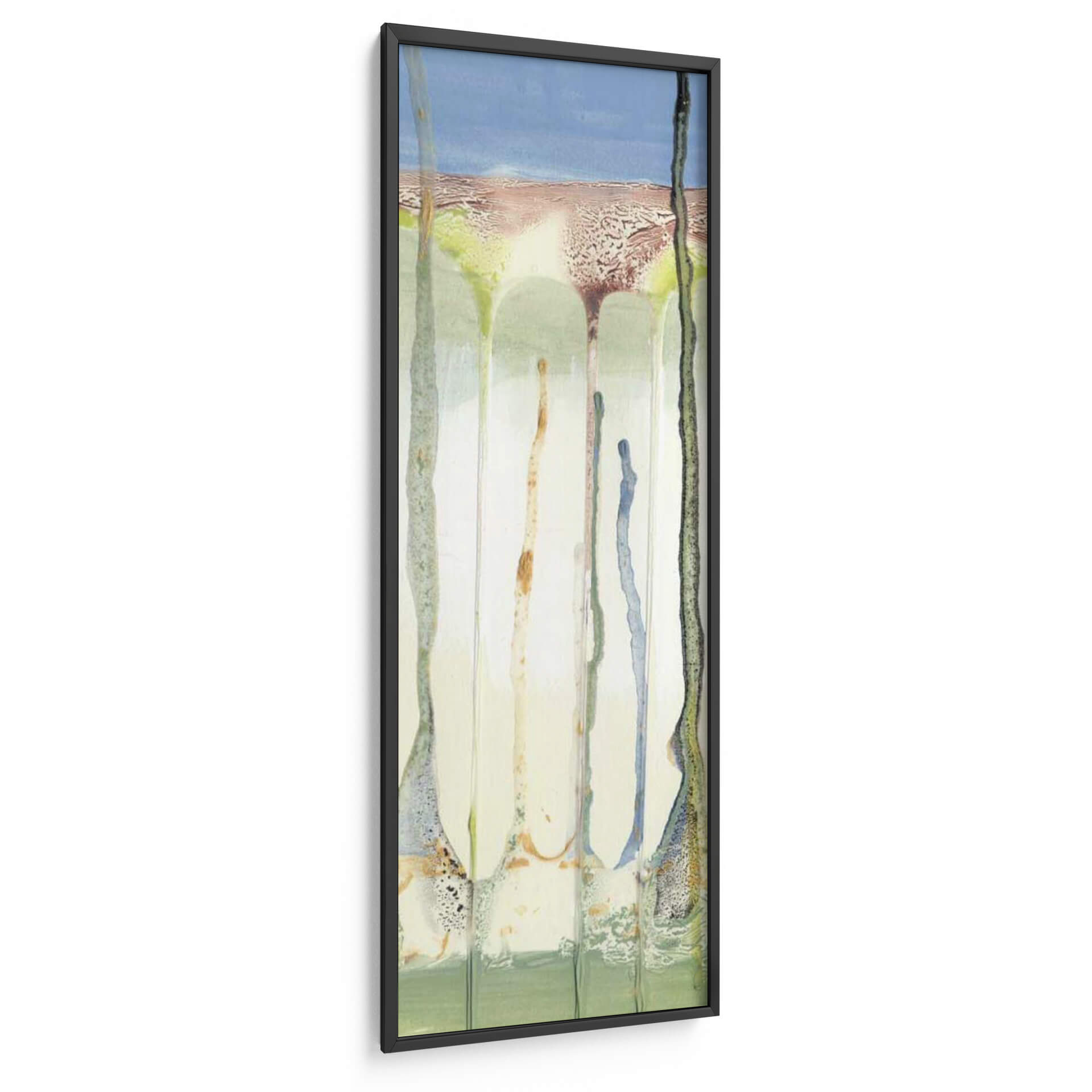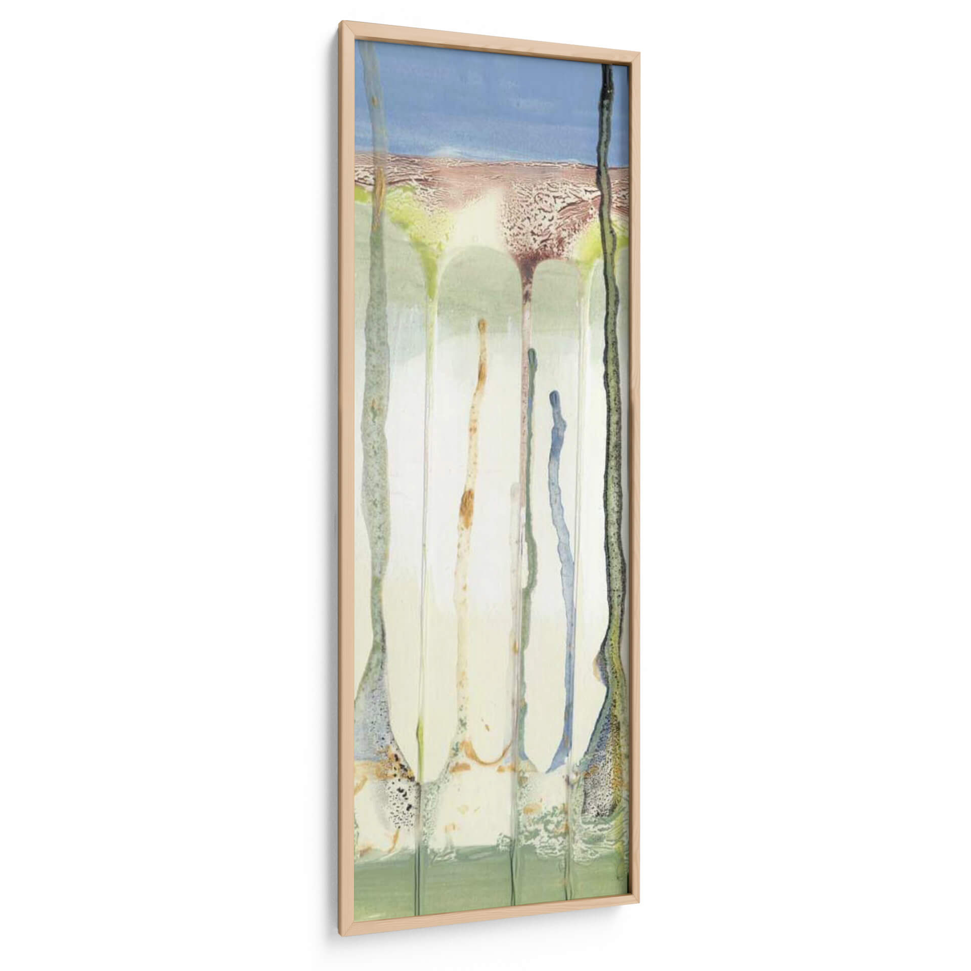 Adéntrate en la serenidad y el movimiento orgánico con 'Afluente II', una obra abstracta de Alicia Ludwig que captura la esencia fluida de la naturaleza. Este cuadro decorativo presenta una paleta de colores suaves y terrosos, dominada por tonos verdes, ocres y azules tenues, que crean una atmósfera de calma y reflexión. Las formas alargadas y verticales, reminiscentes de corrientes de agua o el crecimiento vertical de la flora, fluyen suavemente sobre un fondo luminoso, invitando a la contemplación. La composición, de formato alargado, añade una sensación de altura y elegancia, perfecta para espacios que buscan verticalidad y un toque de naturaleza estilizada. 'Afluente II' es ideal para añadir un punto de interés visual y una dosis de tranquilidad a salones modernos, dormitorios serenos u oficinas que buscan inspiración. Su estilo abstracto contemporáneo permite que se integre armoniosamente en diversas decoraciones, desde lo minimalista hasta lo bohemio, siempre aportando una sensación de conexión con el mundo natural y la expresión artística pura. Descubre cómo esta pieza puede transformar tu ambiente, aportando paz y sofisticación a tu hogar u oficina, y convirtiéndose en un foco de conversación y admiración.