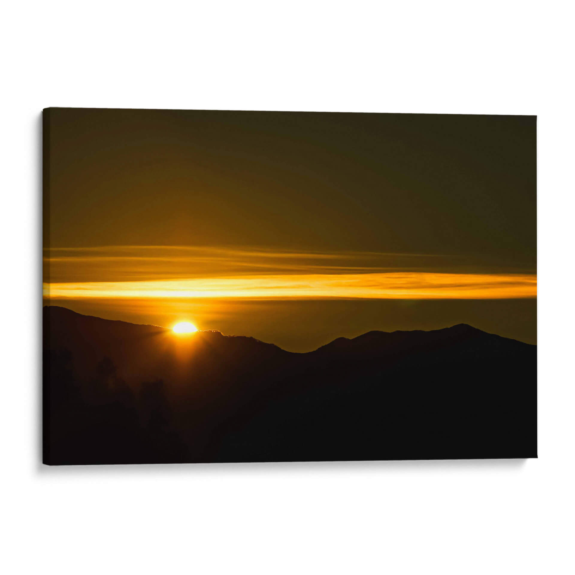 Captura la serenidad y la majestuosidad del comienzo de un nuevo día con "Amanecer", una obra de arte que evoca la calma y la belleza de la naturaleza. El cuadro decorativo presenta un paisaje montañoso silueteado contra un cielo vibrante, donde el sol asoma tímidamente por el horizonte, tiñendo las nubes de tonos dorados y anaranjados intensos. La paleta de colores, dominada por cálidos amarillos y naranjas que contrastan con las sombras oscuras de las montañas, crea una atmósfera de profunda paz y esperanza. El estilo de Lalo Martínez, con su habilidad para capturar la luz y la atmósfera, dota a esta pieza de una calidad casi tangible, invitando a la contemplación. Es una elección perfecta para quienes buscan infundir a sus espacios un sentido de tranquilidad y renovación. Este cuadro decorativo es ideal para añadir un toque de inspiración a tu sala de estar, dormitorio o estudio, transformando cualquier habitación en un refugio de paz y belleza natural. La composición panorámica y el juego de luces y sombras hacen de "Amanecer" un punto focal cautivador que resonará con tu espíritu.