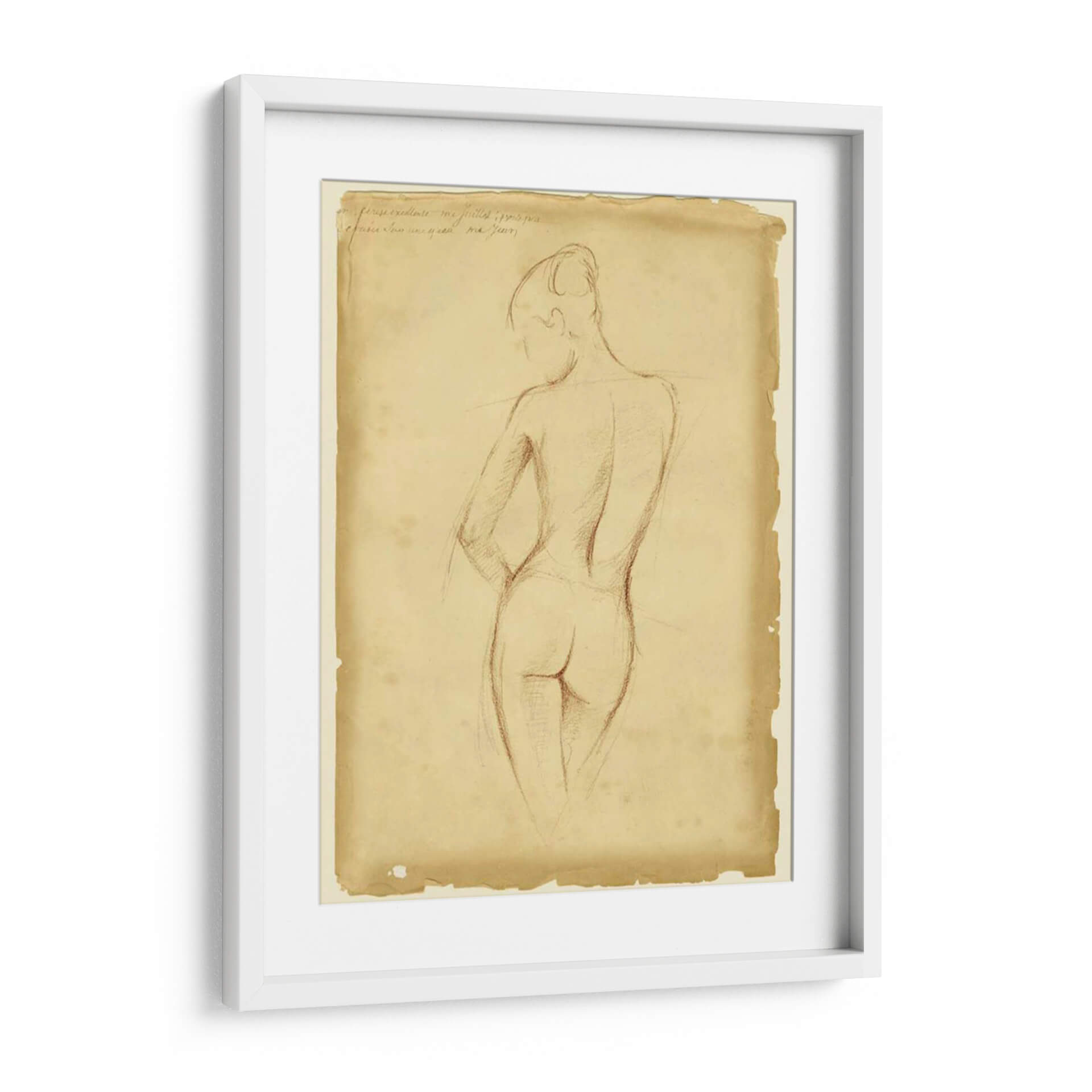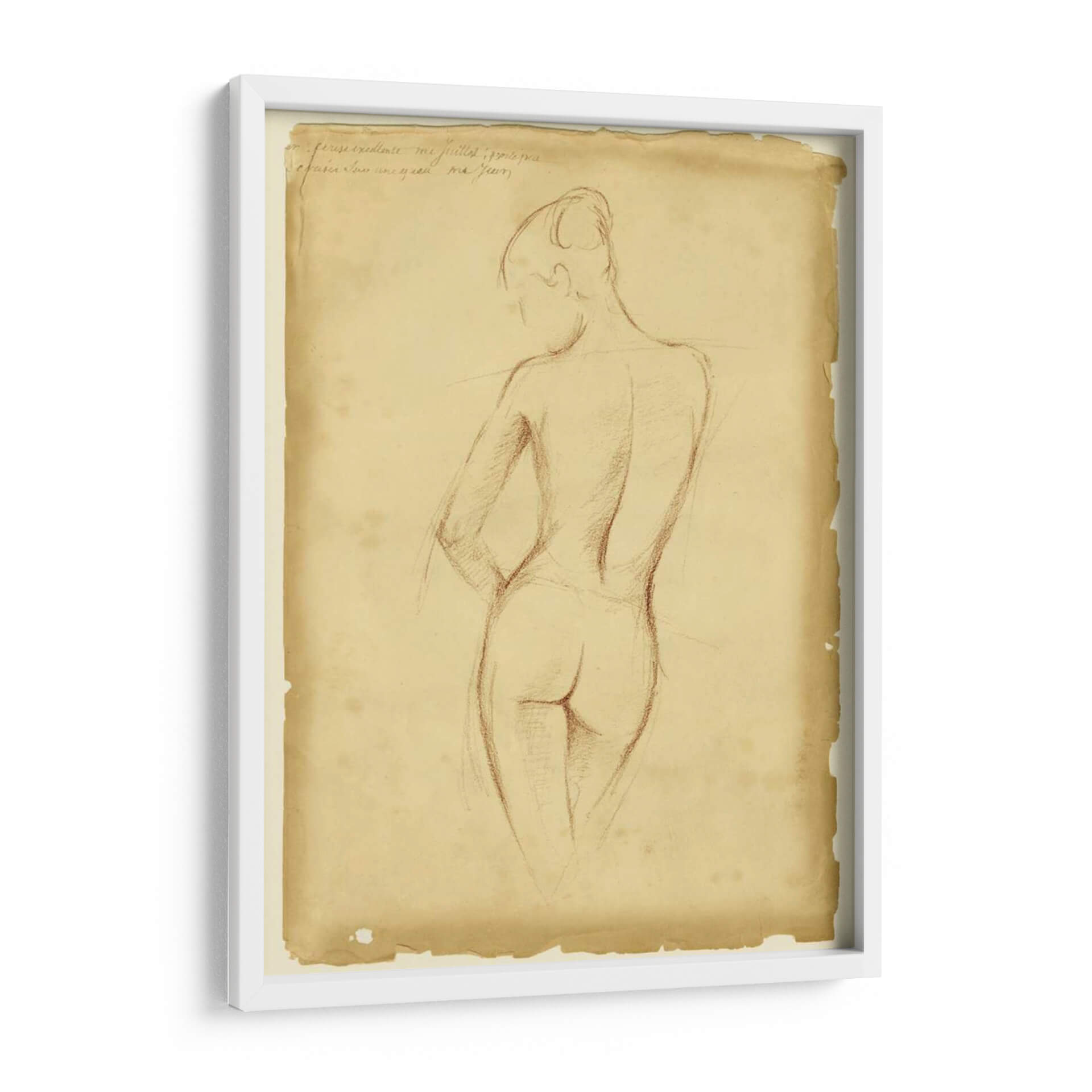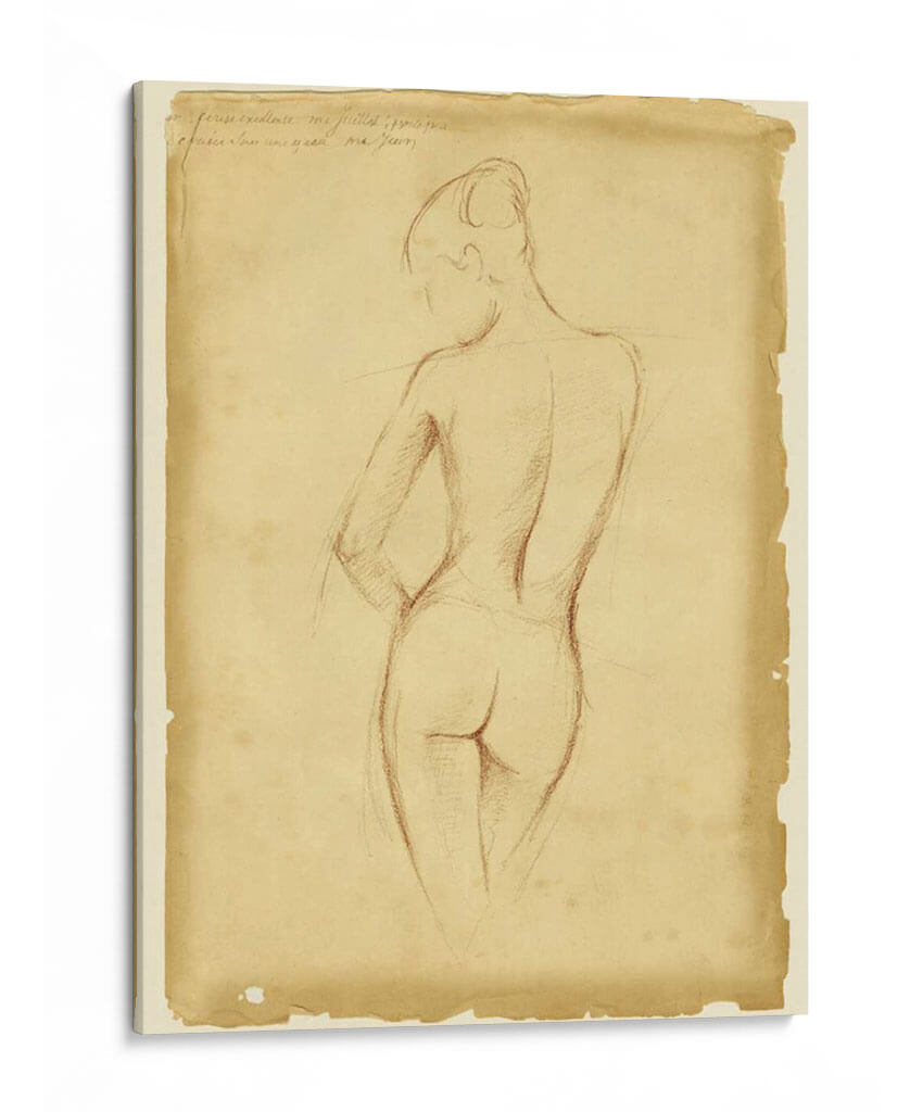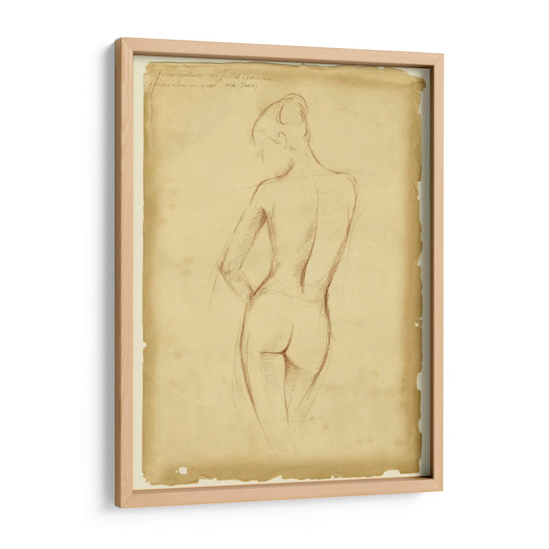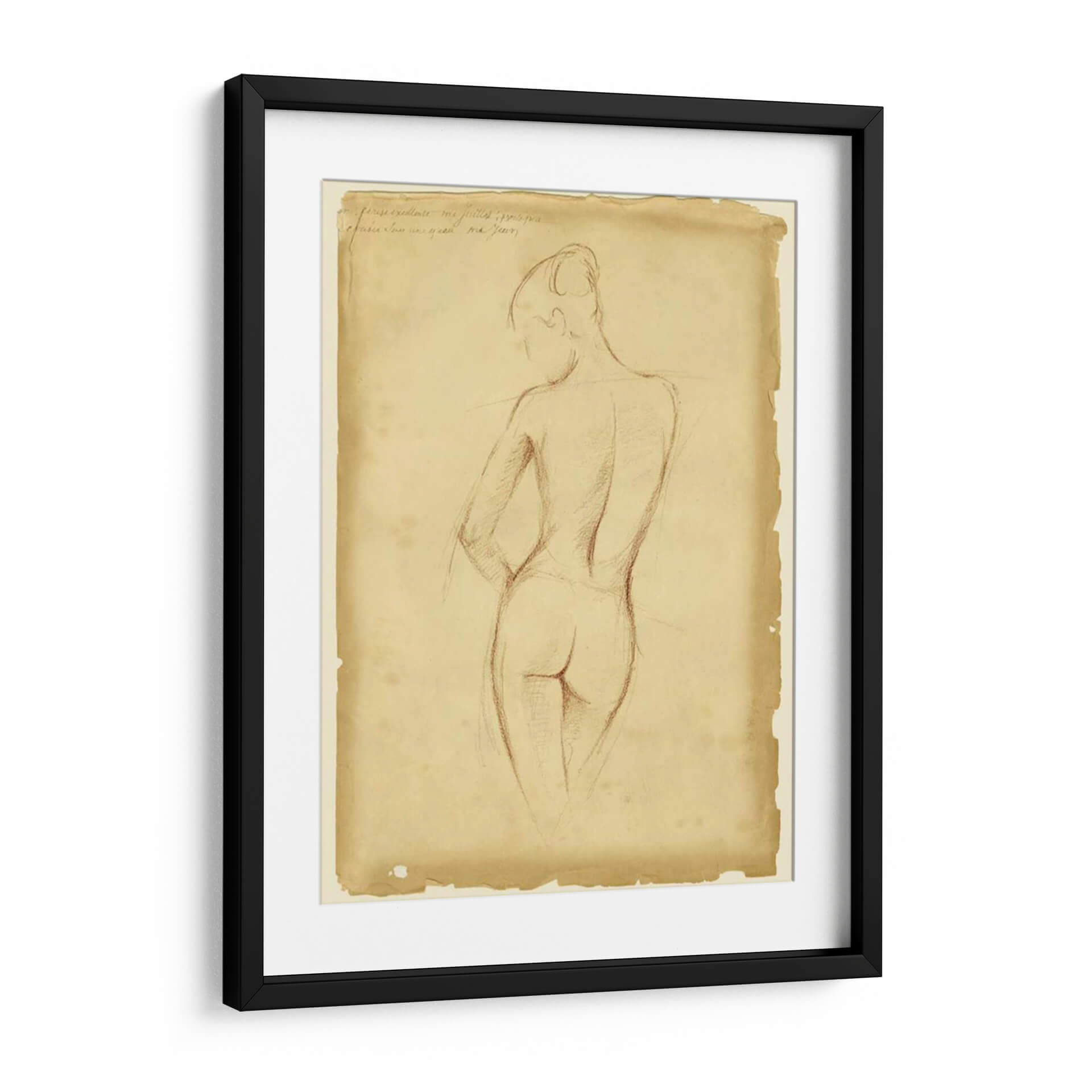 Sumérgete en la elegancia atemporal con "Antiguo Figura Estudio II", una obra maestra del artista contemporáneo Ethan Harper. Este cuadro decorativo captura la delicadeza de la figura humana a través de trazos sueltos y expresivos en un tono sepia sobre un fondo que evoca la calidez del papel antiguo. La composición se centra en la espalda de una figura femenina, delineando sutilmente sus contornos con una sensualidad clásica. La paleta de colores cálidos y terrosos aporta una atmósfera de serenidad y contemplación, ideal para espacios que buscan un toque de sofisticación discreta. La técnica de boceto, con sus líneas fluidas y espontáneas, confiere a la pieza una sensación de intimidad y estudio artístico, como si el espectador fuera testigo de un momento creativo. "Antiguo Figura Estudio II" es una pieza versátil que puede complementar a la perfección una sala de estar moderna, un estudio personal o un dormitorio tranquilo, añadiendo profundidad y carácter a cualquier decoración. Su estilo, que bebe de la tradición académica pero con una sensibilidad moderna, lo convierte en una adición valiosa para coleccionistas y amantes del arte que aprecian la belleza de la forma humana y la maestría del dibujo.