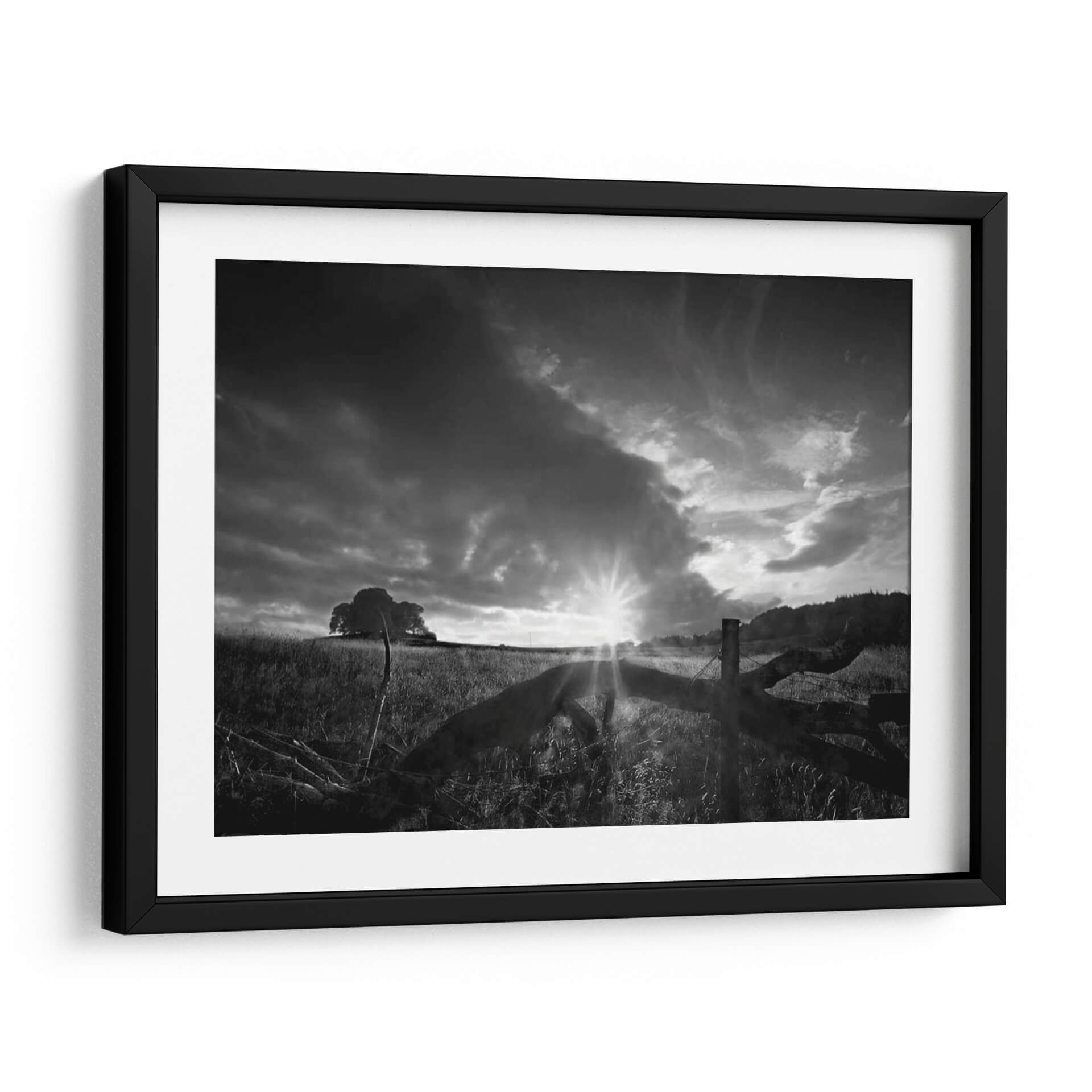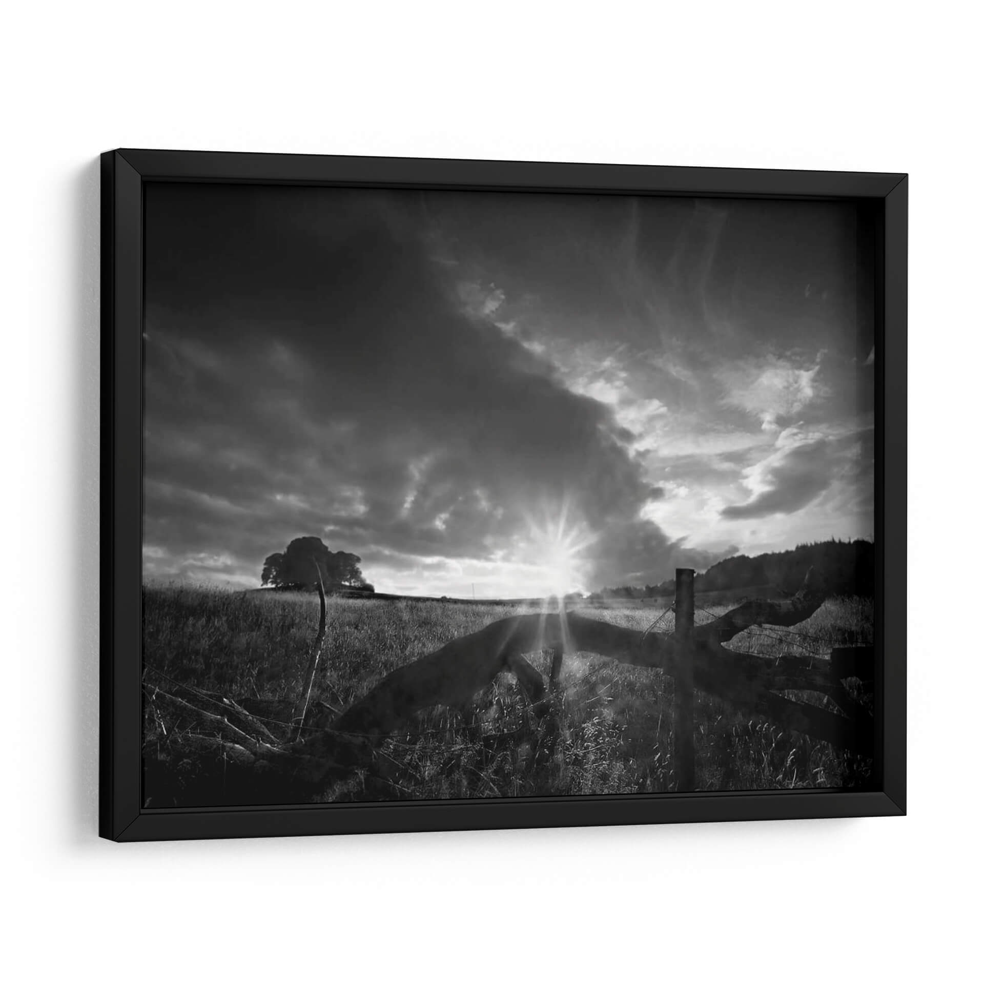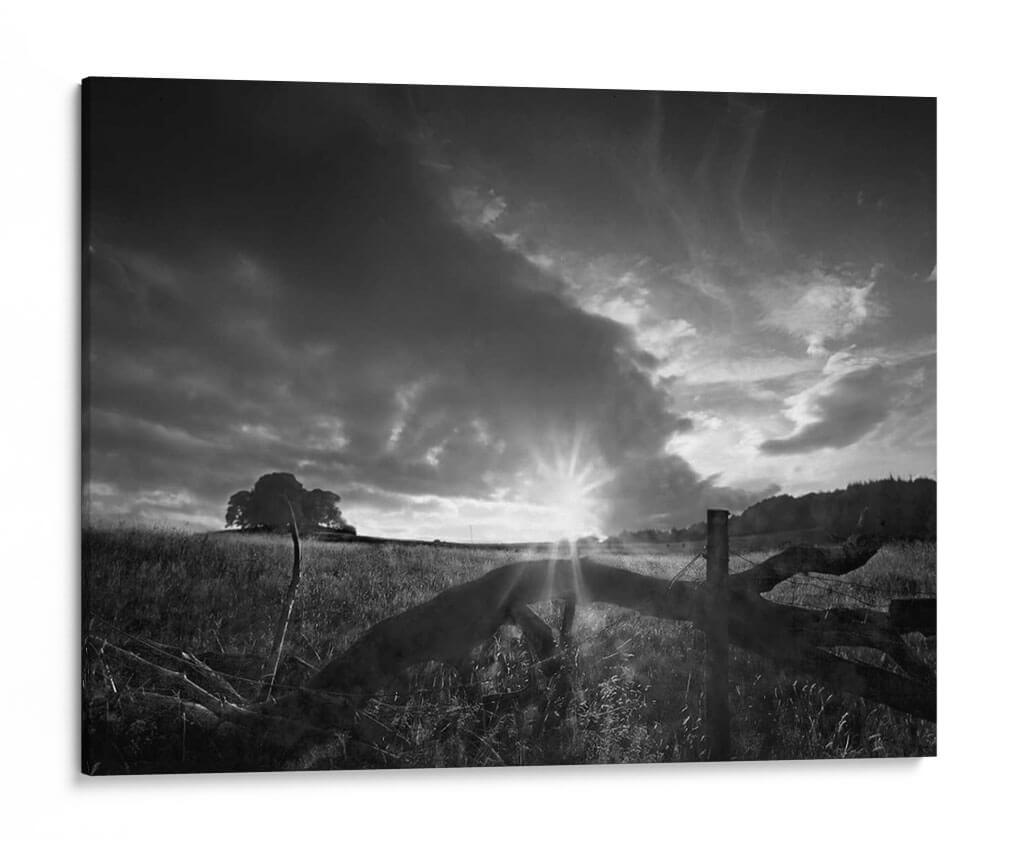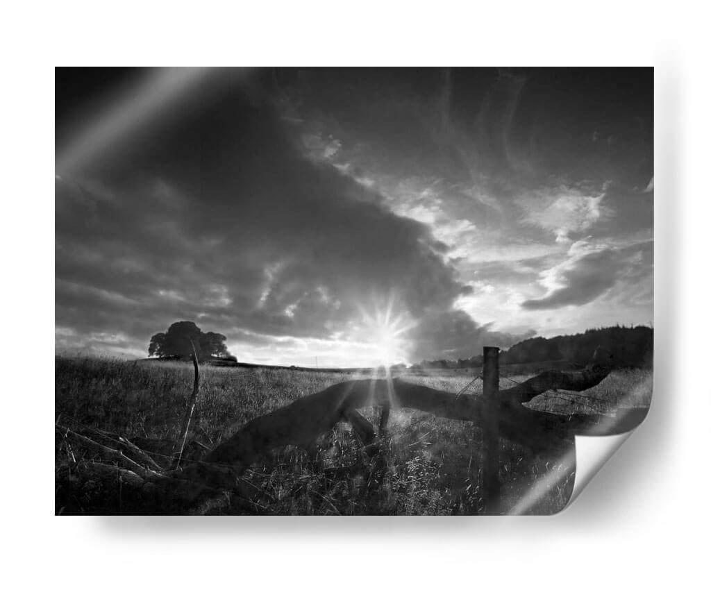 Sumérgete en la atmósfera melancólica y serena de "Árbol Caído", una obra maestra fotográfica en blanco y negro de Martin Henson. Esta pieza captura un paisaje rural al amanecer o atardecer, donde un solitario árbol se alza majestuosamente sobre una colina, enmarcado por un cielo dramático lleno de nubes y la luz penetrante del sol. El primer plano muestra un elemento rústico, posiblemente una valla de madera o restos de un árbol, que añade profundidad y textura a la composición. La ausencia de color realza la crudeza de la naturaleza y la fuerza emocional de la escena, invitando a la contemplación. "Árbol Caído" es ideal para quienes buscan infundir calma y reflexión en sus espacios, siendo una adición perfecta para salas de estar, estudios o dormitorios. Su estética atemporal y su poderosa narrativa visual lo convierten en un punto focal cautivador, capaz de transformar cualquier ambiente en un santuario de paz y belleza natural. Esta obra evoca una sensación de resistencia y la belleza efímera del mundo natural, conectando al espectador con la esencia de la tierra.