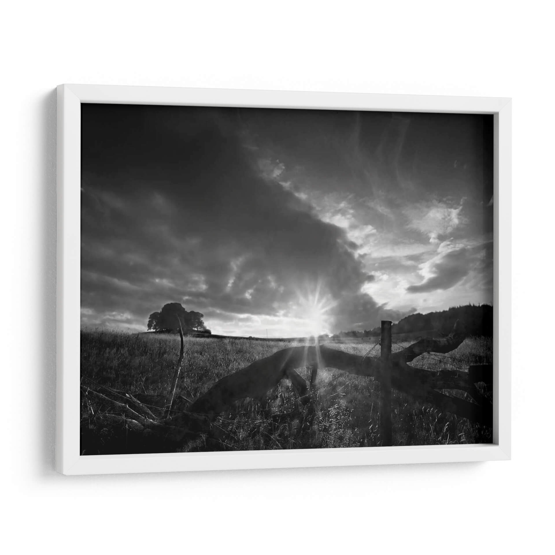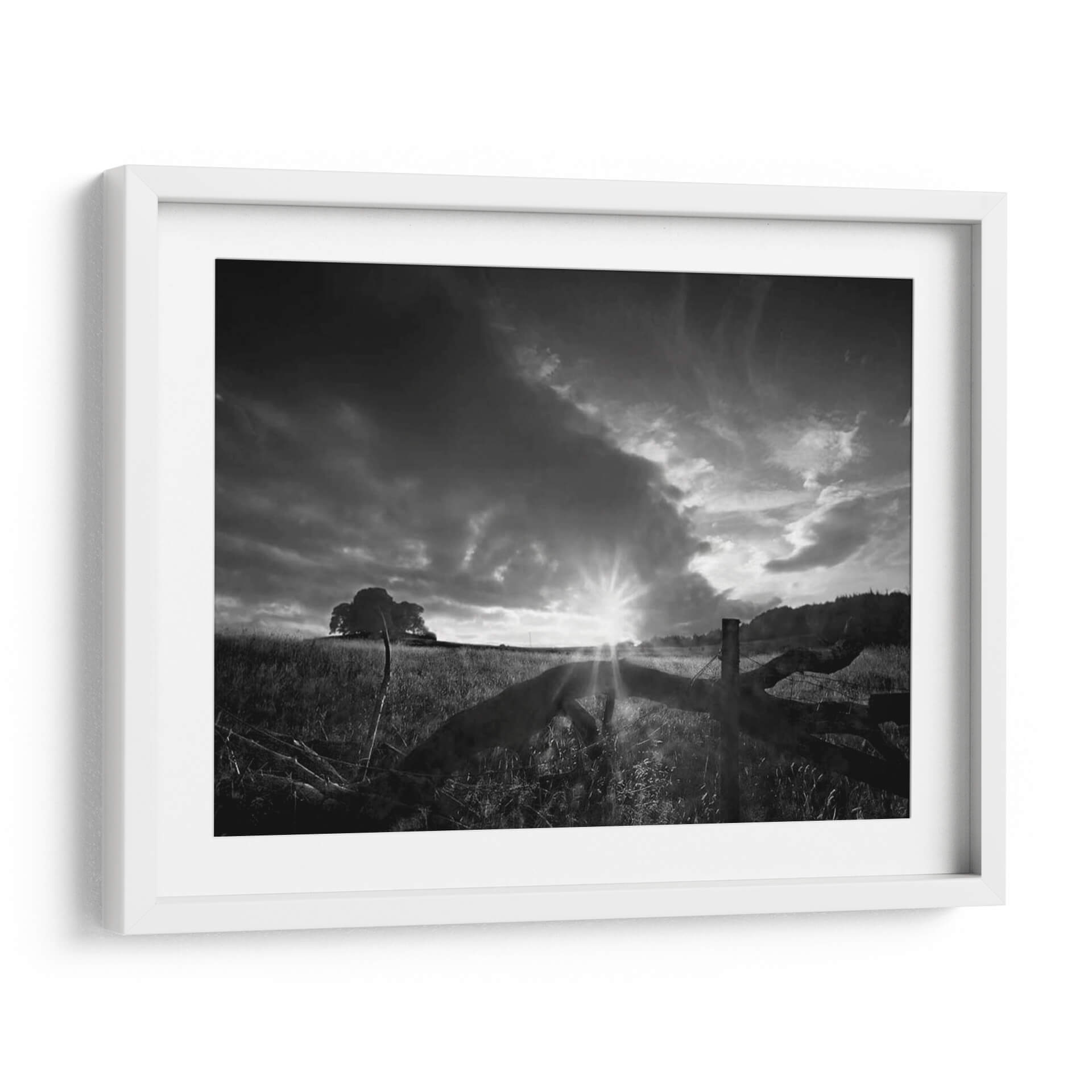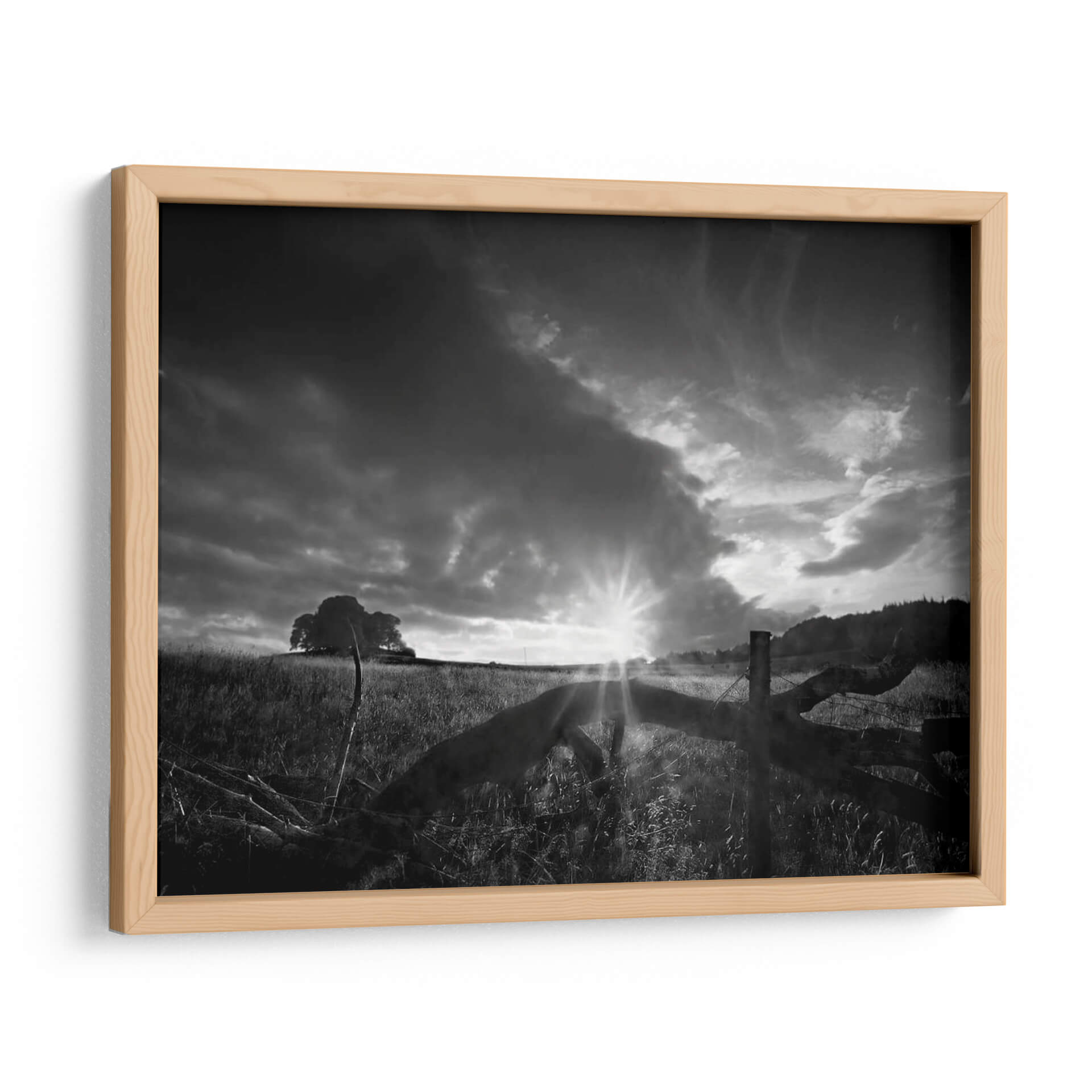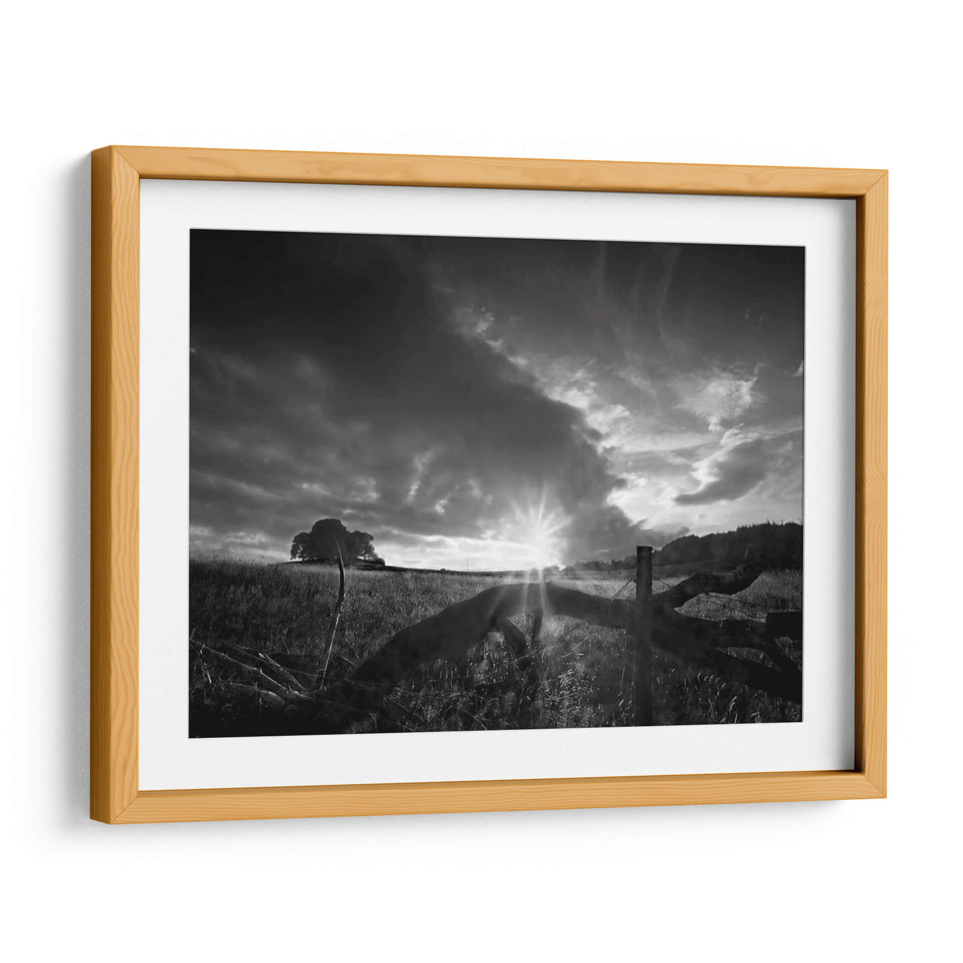 Sumérgete en la atmósfera melancólica y serena de "Árbol Caído", una obra maestra fotográfica en blanco y negro de Martin Henson. Esta pieza captura un paisaje rural al amanecer o atardecer, donde un solitario árbol se alza majestuosamente sobre una colina, enmarcado por un cielo dramático lleno de nubes y la luz penetrante del sol. El primer plano muestra un elemento rústico, posiblemente una valla de madera o restos de un árbol, que añade profundidad y textura a la composición. La ausencia de color realza la crudeza de la naturaleza y la fuerza emocional de la escena, invitando a la contemplación. "Árbol Caído" es ideal para quienes buscan infundir calma y reflexión en sus espacios, siendo una adición perfecta para salas de estar, estudios o dormitorios. Su estética atemporal y su poderosa narrativa visual lo convierten en un punto focal cautivador, capaz de transformar cualquier ambiente en un santuario de paz y belleza natural. Esta obra evoca una sensación de resistencia y la belleza efímera del mundo natural, conectando al espectador con la esencia de la tierra.