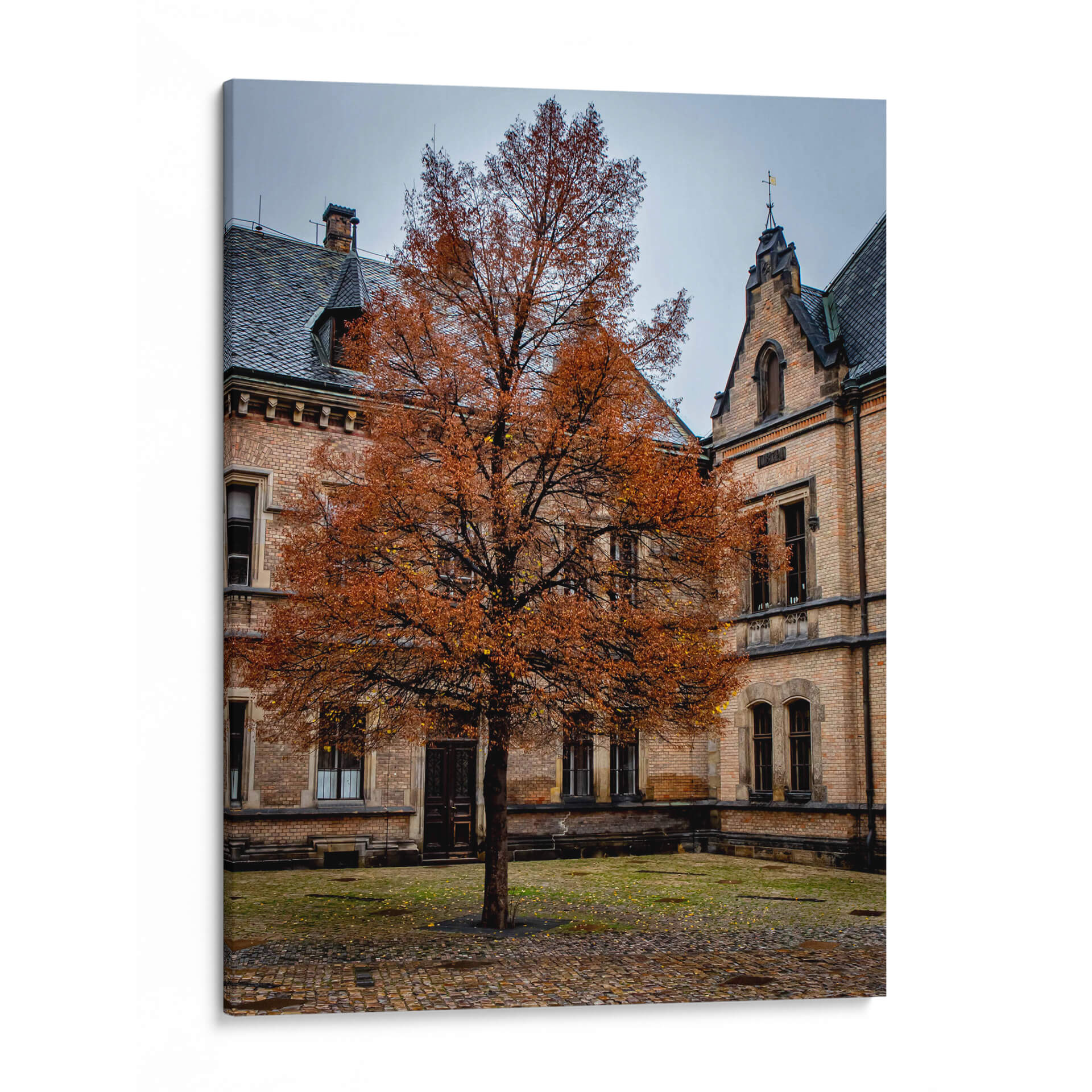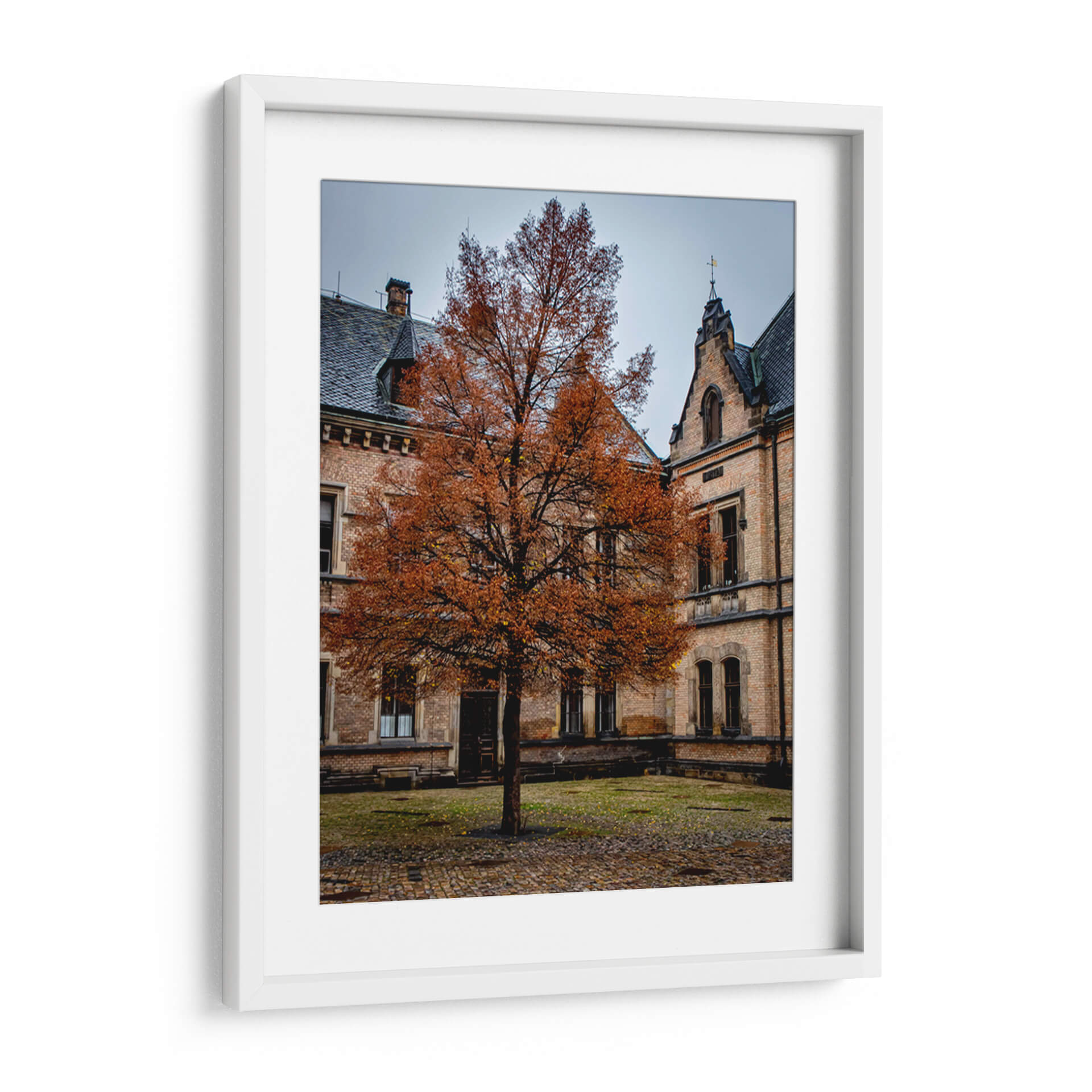 Sumérgete en la melancolía y la belleza serena del otoño con este cautivador cuadro decorativo "Árbol Otoño" del artista Gustavo Cohen. La obra captura la esencia efímera de la temporada, presentando un árbol frondoso de vibrantes tonos ocres y rojizos, cuyas hojas parecen danzar en el aire fresco de una tarde otoñal. Detrás, se alza una arquitectura imponente de ladrillo visto, con tejados a dos aguas y ventanas que sugieren historias pasadas y un ambiente de tranquilidad académica o histórica. La composición, con el árbol como protagonista central y el edificio como telón de fondo, crea una perspectiva armoniosa que invita a la contemplación. La paleta de colores cálidos del follaje contrasta sutilmente con los tonos más fríos del cielo y la piedra, generando una atmósfera evocadora y nostálgica. Este cuadro es ideal para añadir un toque de calidez, reflexión y sofisticación a cualquier espacio, ya sea una sala de estar, un estudio o un pasillo. "Árbol Otoño" no es solo una pieza decorativa, sino una ventana a un momento de introspección y a la magnificencia de los ciclos naturales, perfecta para quienes buscan arte que inspire paz y conecte con la naturaleza y la arquitectura.