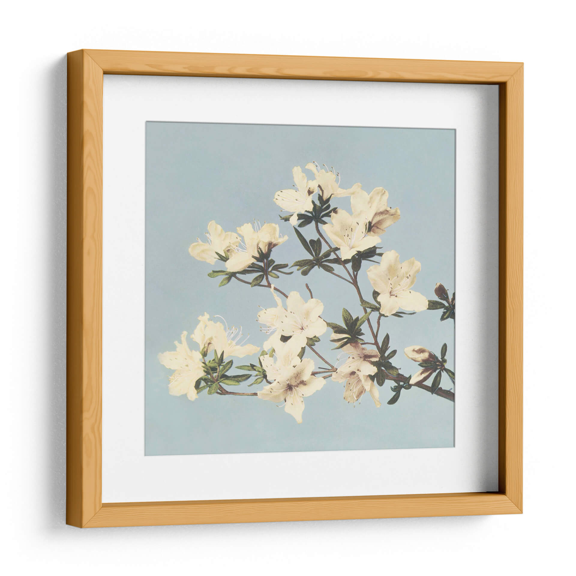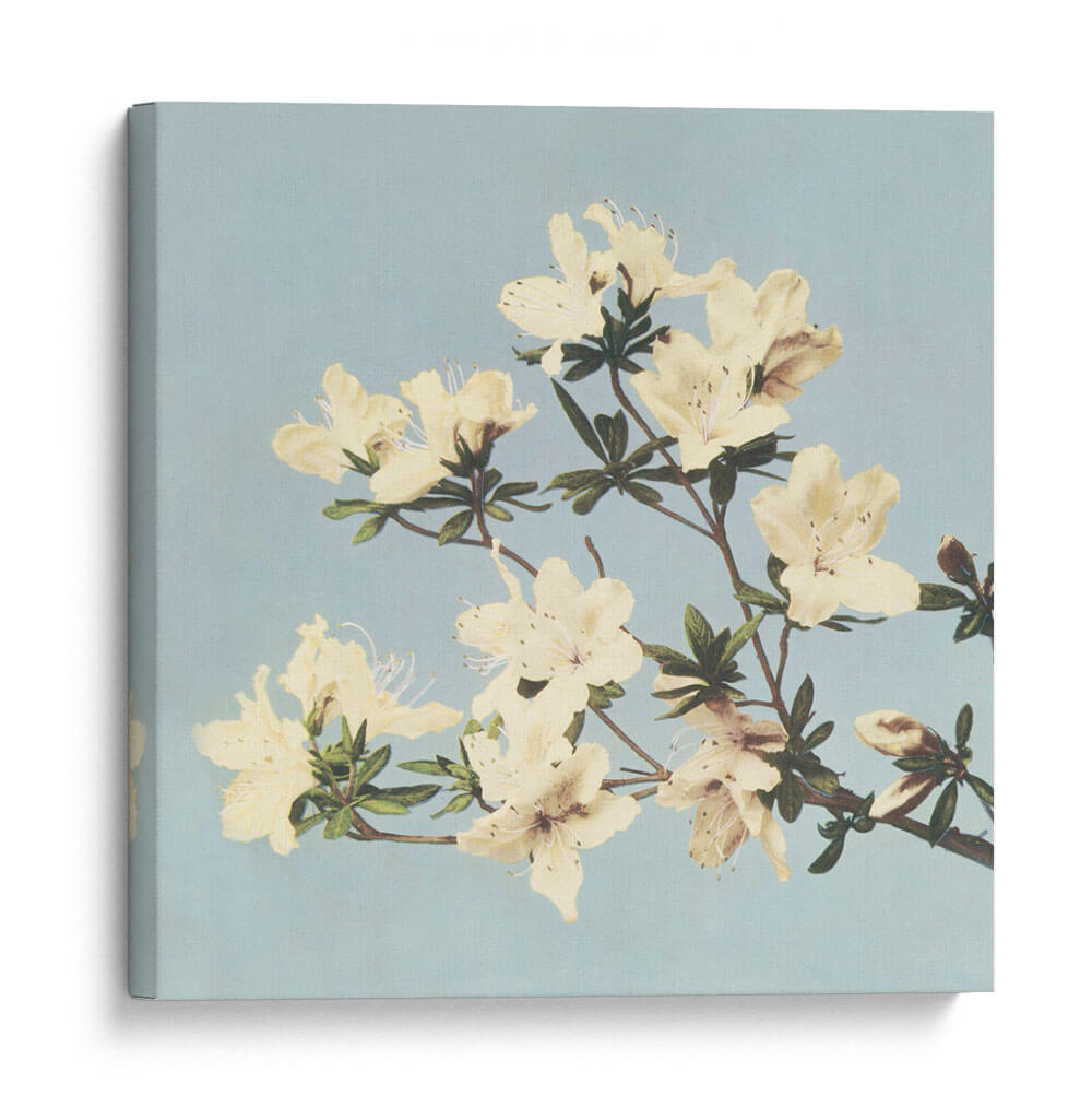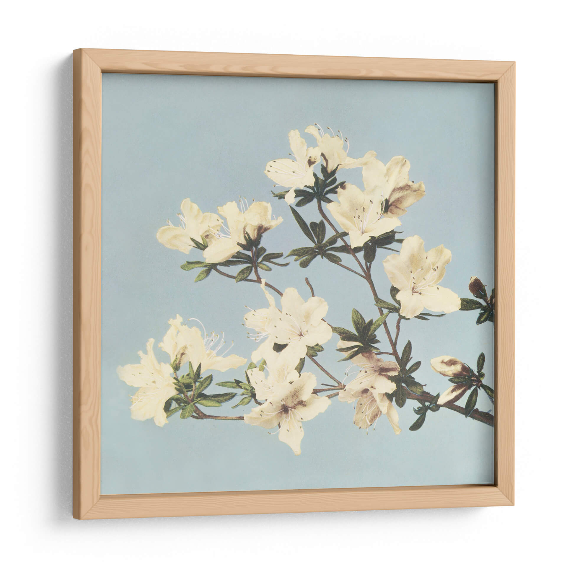Embellece tu espacio con la delicadeza atemporal de nuestro cuadro decorativo 'Azaleas japonesas vintage', una obra maestra inspirada en la sensibilidad artística de Ogawa Kazumasa. Esta pieza captura la efervescencia de las azaleas en plena floración, presentando pétalos de un suave color crema y amarillo pálido que contrastan elegantemente con el fondo de un sereno azul cielo. Las sutiles variaciones de tono y las delicadas venas de los pétalos añaden una profundidad visual que invita a la contemplación. La composición, centrada en una rama extendida, evoca una sensación de calma y serenidad, perfecta para infundir paz en cualquier ambiente. Ideal para salones, dormitorios o estudios, este cuadro decorativo aporta un toque de naturaleza y sofisticación, conectando tu hogar con la belleza efímera de la primavera. Su estilo, que recuerda a la ilustración botánica clásica con un aire vintage, lo convierte en un punto focal encantador, capaz de complementar tanto decoraciones tradicionales como contemporáneas, añadiendo un matiz de elegancia natural y tranquilidad. Un lienzo que no solo decora, sino que también inspira y eleva el espíritu.