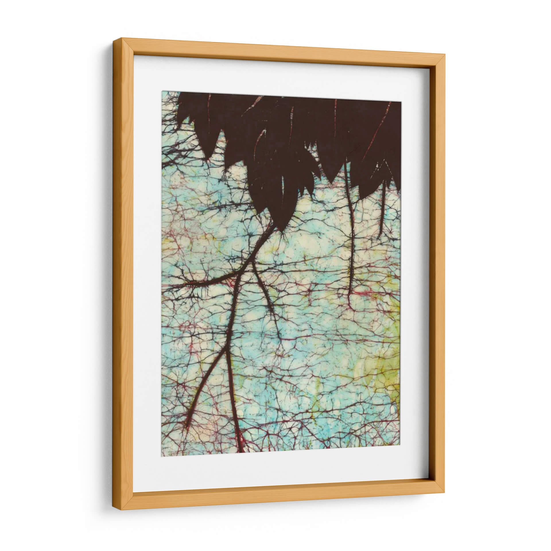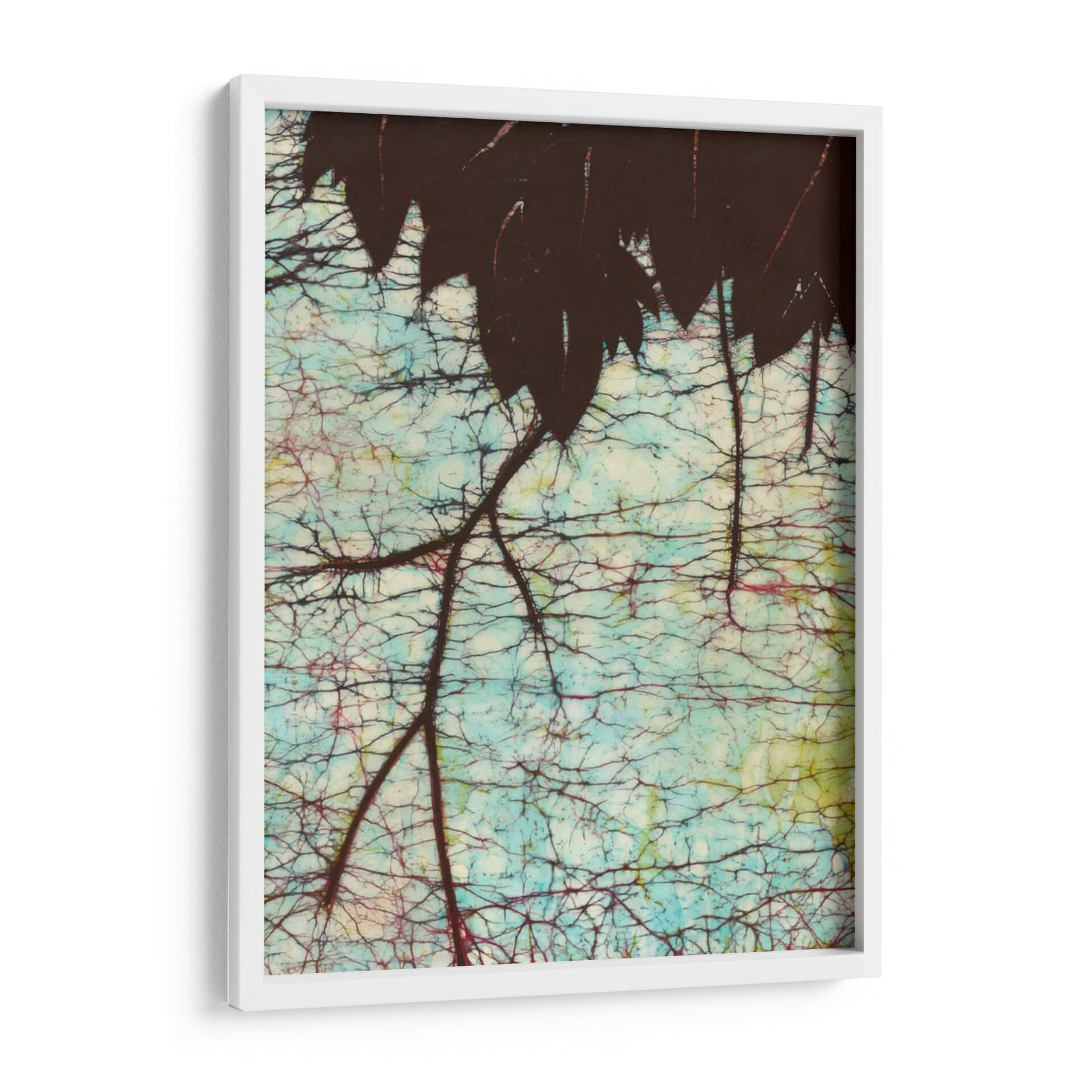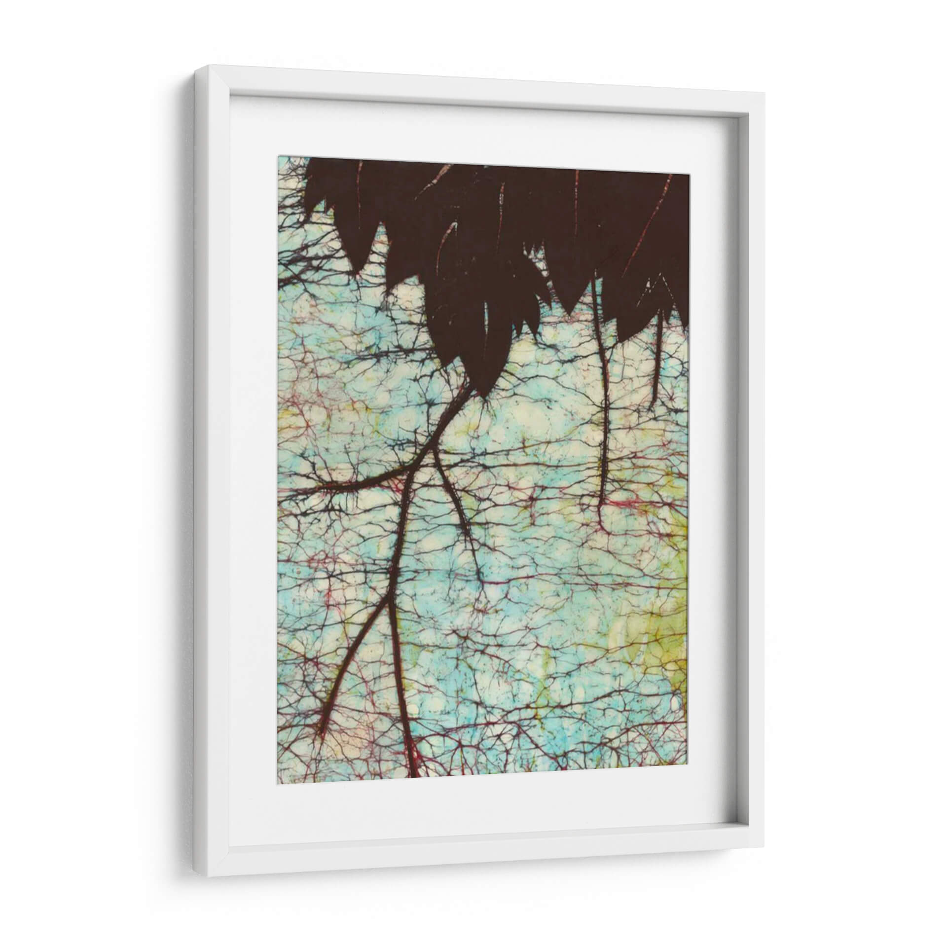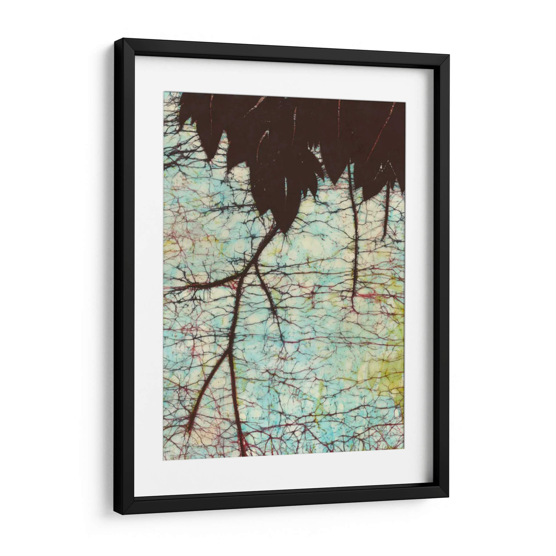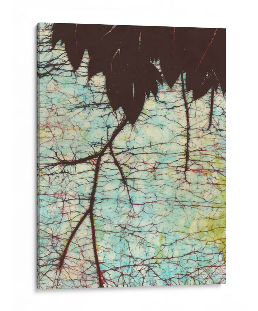 Sumérgete en la serenidad de "Batik Hanging Hojas II", una obra de arte contemporáneo de Andrea Davis que captura la intrincada belleza de la naturaleza. Este cuadro decorativo presenta una silueta oscura de hojas colgantes, contrastando con un fondo vibrante y texturizado que evoca la técnica del batik. Los tonos azulados, combinados con sutiles toques de rojo y amarillo, crean una atmósfera etérea y relajante, perfecta para añadir un toque de sofisticación orgánica a cualquier espacio. La compleja red de ramas y la delicada craqueladura del fondo invitan a la contemplación, ofreciendo una pieza de pared que es tanto un punto focal como un refugio visual. Ideal para salones modernos, dormitorios tranquilos u oficinas que buscan una conexión con la naturaleza, "Batik Hanging Hojas II" es una elección exquisita para quienes aprecian el arte detallado y evocador. Esta pieza transformará tu hogar en un santuario de estilo y calma.