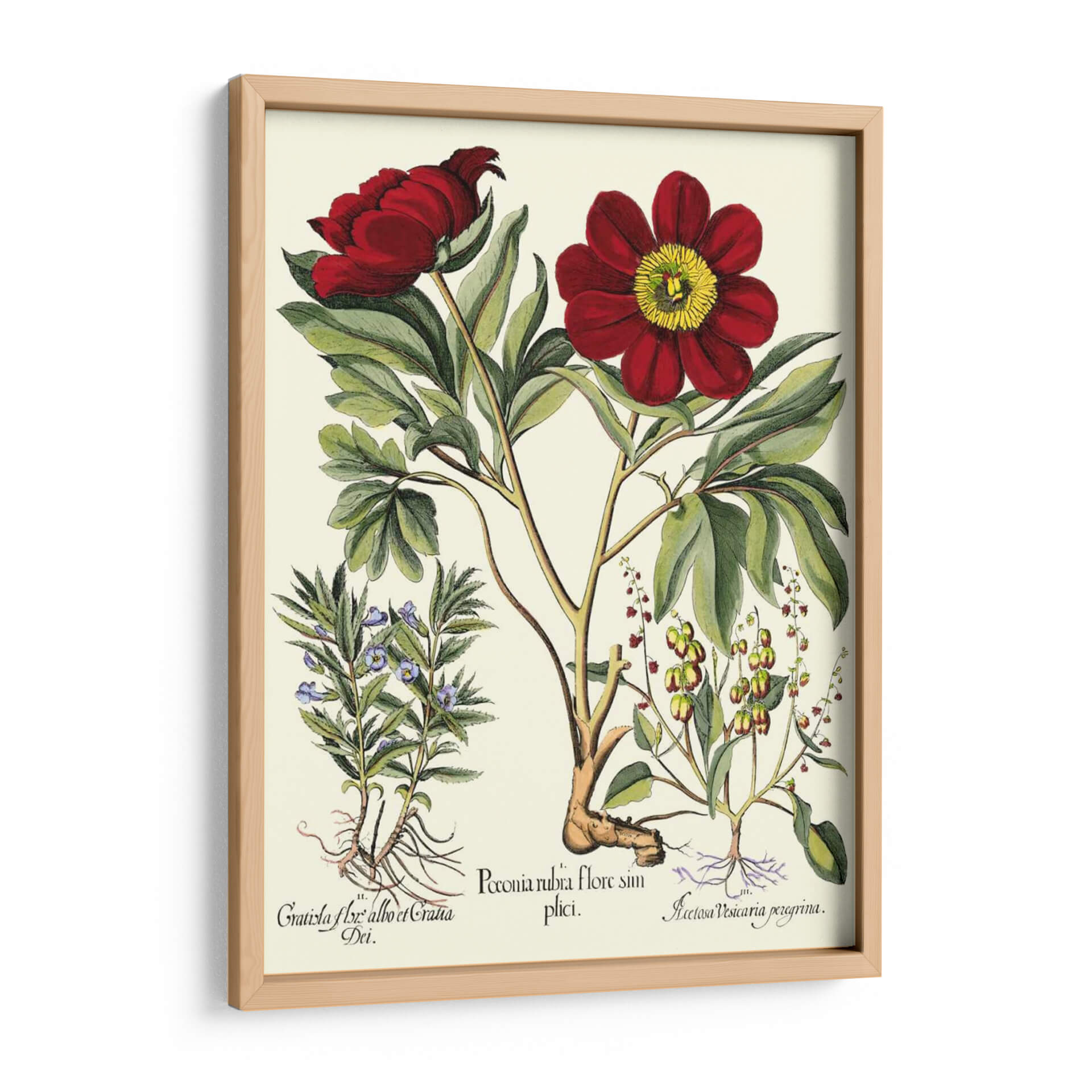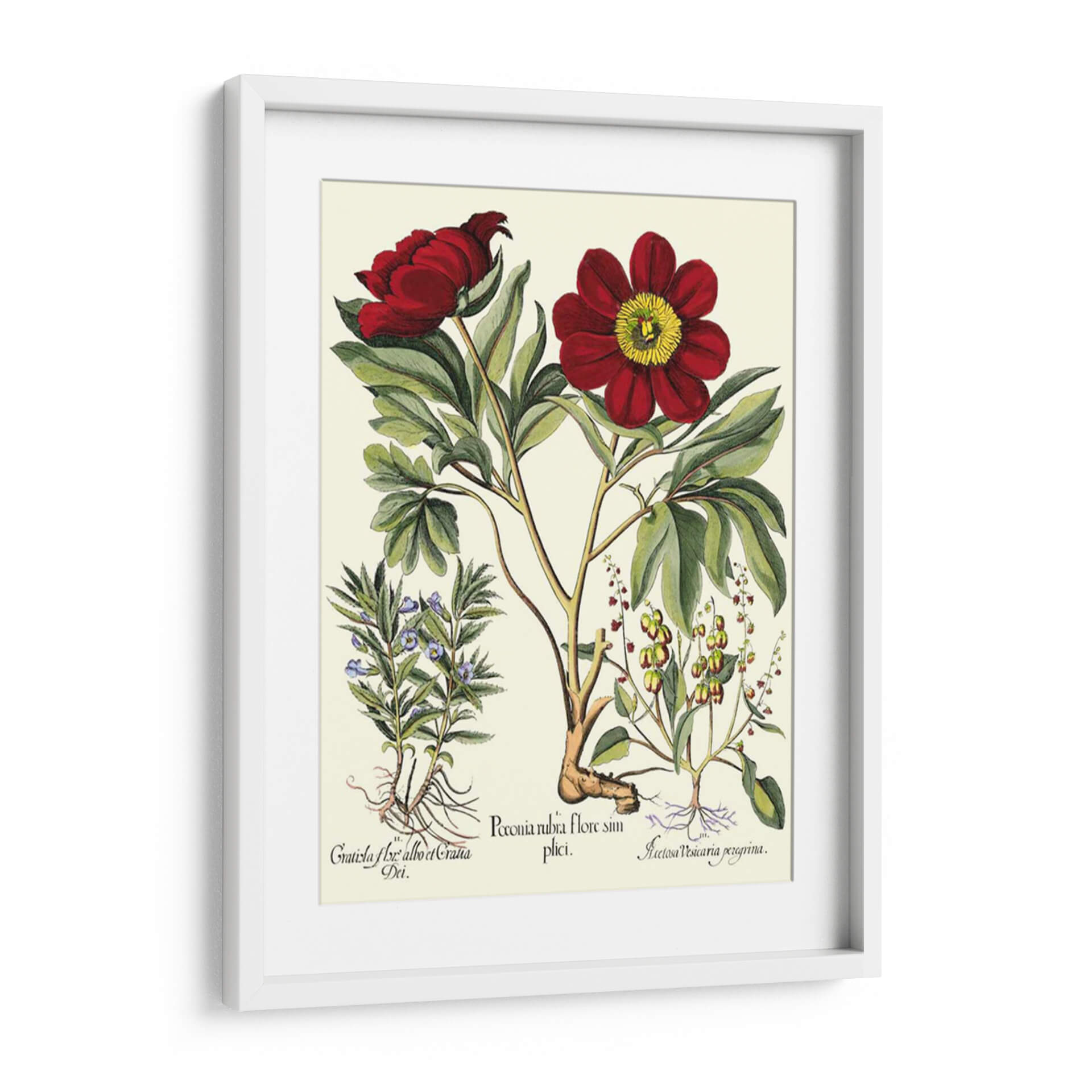 Descubre la belleza botánica con este exquisito cuadro decorativo "Besler Peonie IV" del artista Basilius Besler. Esta obra, inspirada en ilustraciones científicas históricas, presenta detallados estudios de peonías rojas vibrantes y otras plantas con esmero realismo. La paleta de colores, centrada en tonos rojos profundos, verdes frondosos y un delicado fondo crema, evoca una sensación de elegancia clásica y serenidad natural. La composición, que muestra las flores en diferentes etapas de floración y sus sistemas radiculares, ofrece una perspectiva única y educativa sobre el mundo botánico. Este cuadro decorativo es ideal para añadir un toque de sofisticación y conexión con la naturaleza a cualquier espacio, desde salas de estar modernas hasta estudios y oficinas con un estilo más tradicional. Su detallada ejecución y temática clásica lo convierten en una pieza de arte de pared que inspira contemplación y aprecio por la botánica. Perfecto para amantes de las flores, la historia del arte o para quienes buscan una decoración de pared distinguida y atemporal que aporte vida y color a su hogar u oficina, transformando cualquier ambiente en una galería personal.