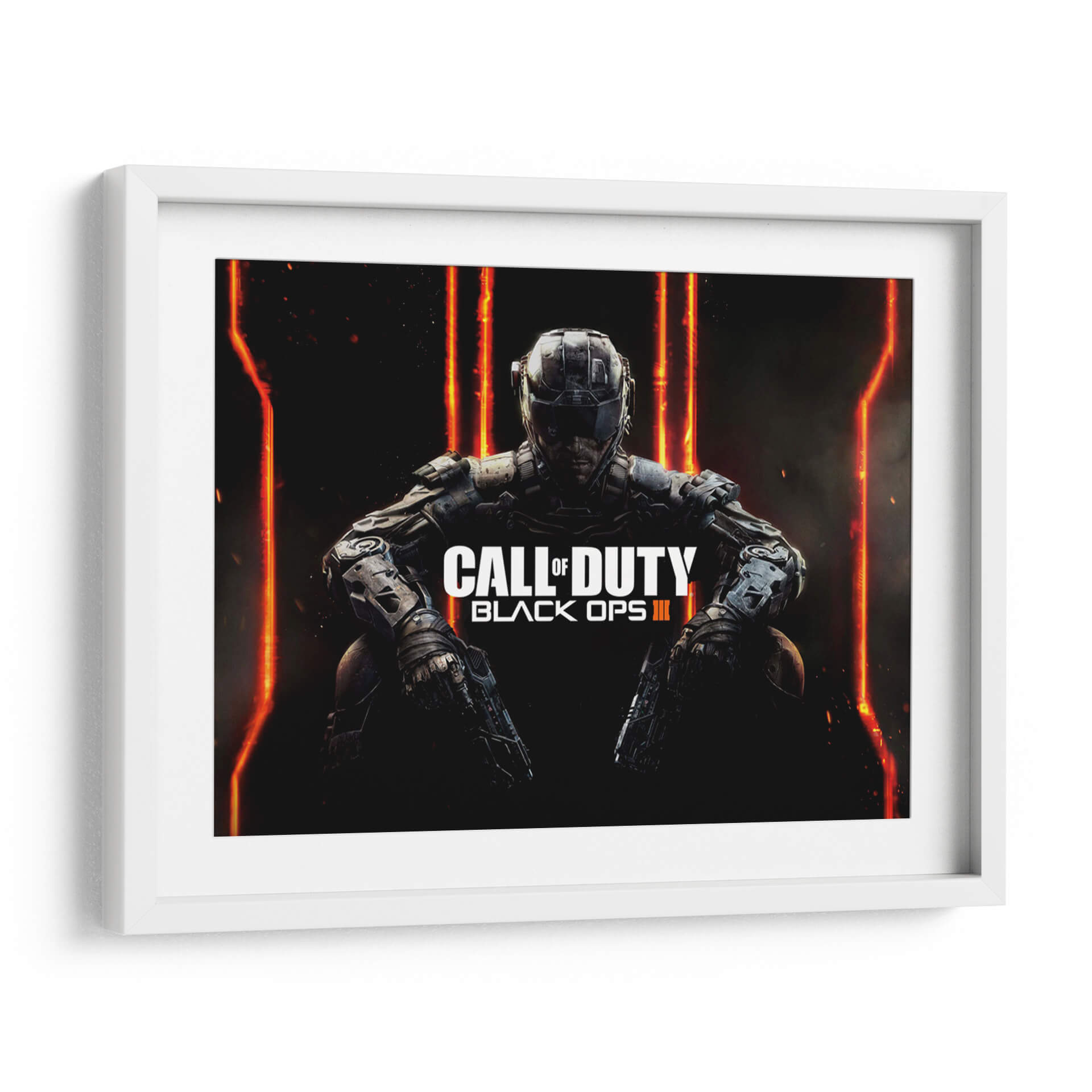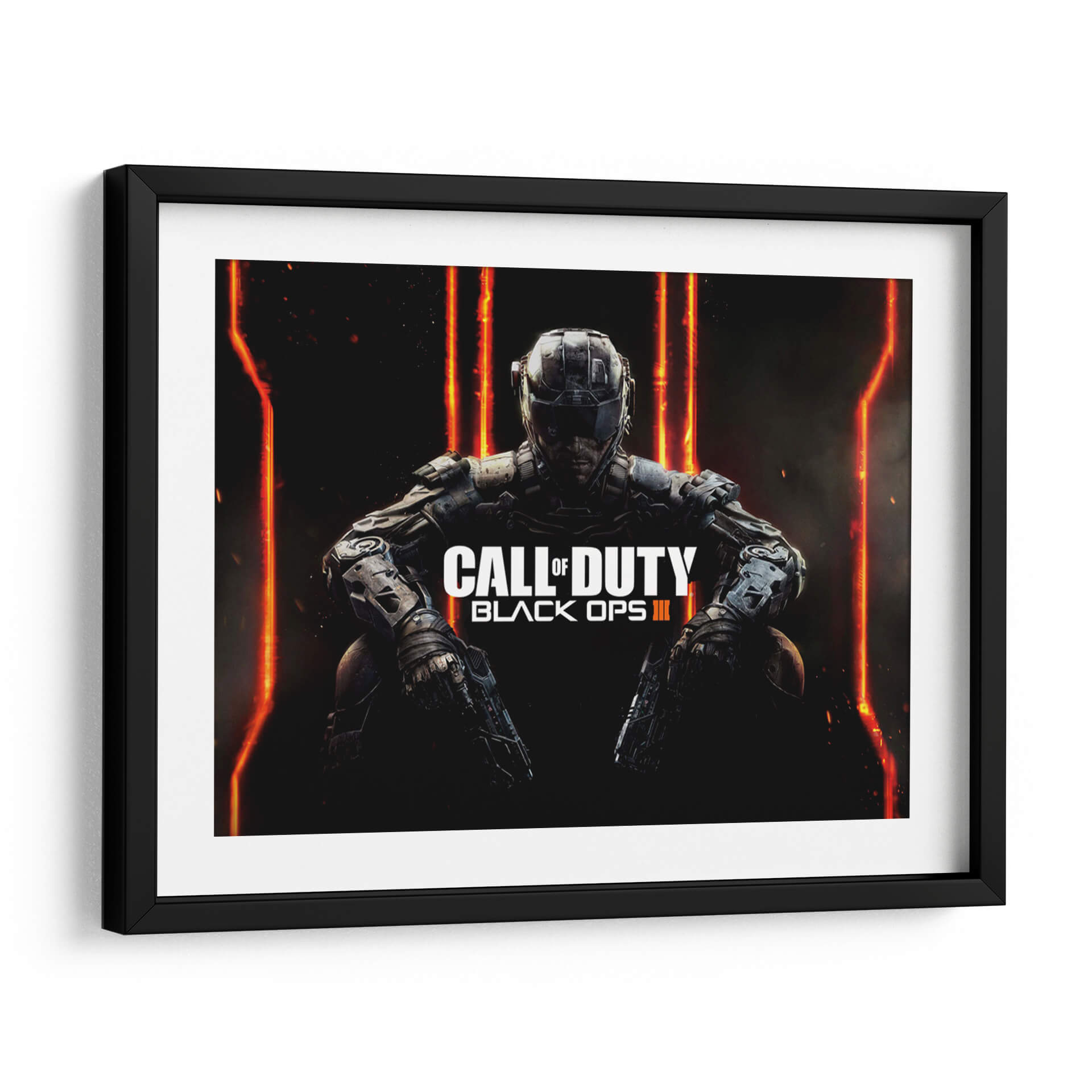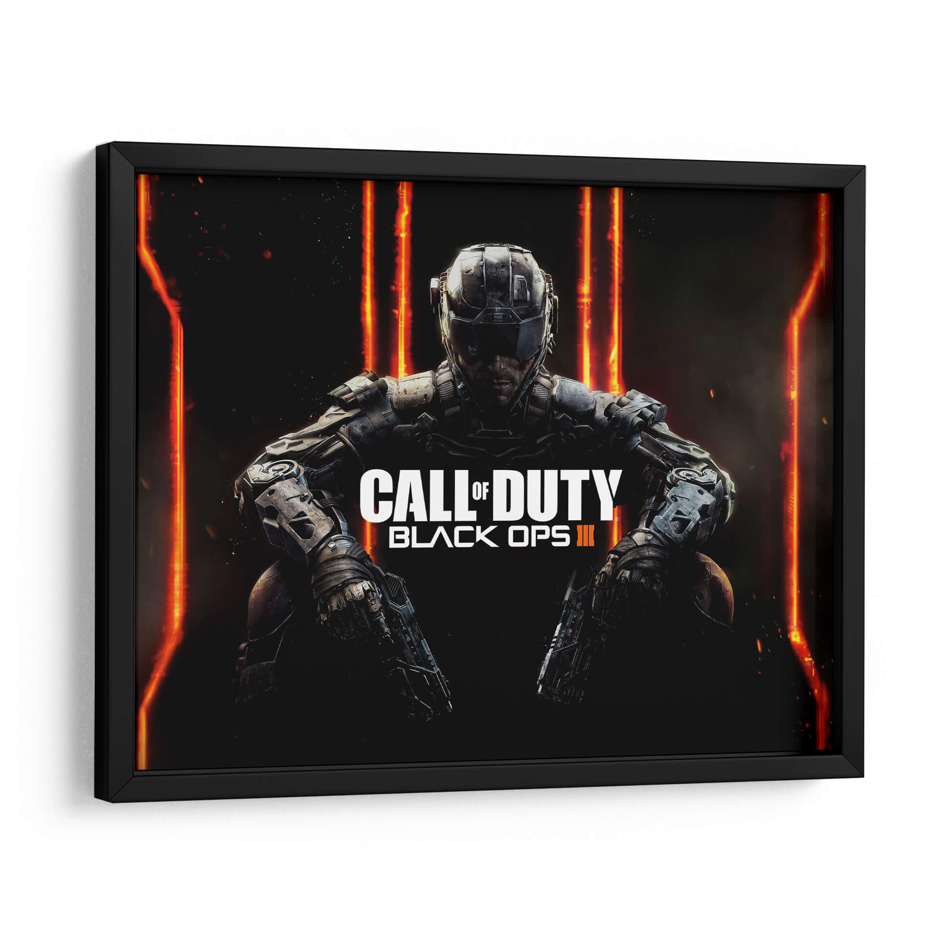 Sumérgete en el mundo de la acción táctica con este impactante cuadro decorativo inspirado en "Black OPS III". La obra presenta a un soldado futurista, enfundado en una armadura detallada, agachado en una pose de preparación, listo para la batalla. El fondo oscuro se ilumina con vibrantes destellos de luz anaranjada y roja, creando una atmósfera de alta tensión y misterio. La composición central y el uso de colores intensos y contrastantes hacen de esta pieza un punto focal ineludible para cualquier espacio. Ideal para los amantes de los videojuegos de disparos y la estética cyberpunk, este cuadro decorativo aportará una dosis de adrenalina y modernidad a tu sala de estar, oficina o habitación. Su estilo realista y detallado captura la esencia de la guerra moderna y la tecnología avanzada, invitando a la reflexión sobre el futuro y el conflicto. Añade un toque audaz y contemporáneo a tu decoración con esta representación dinámica y llena de energía.